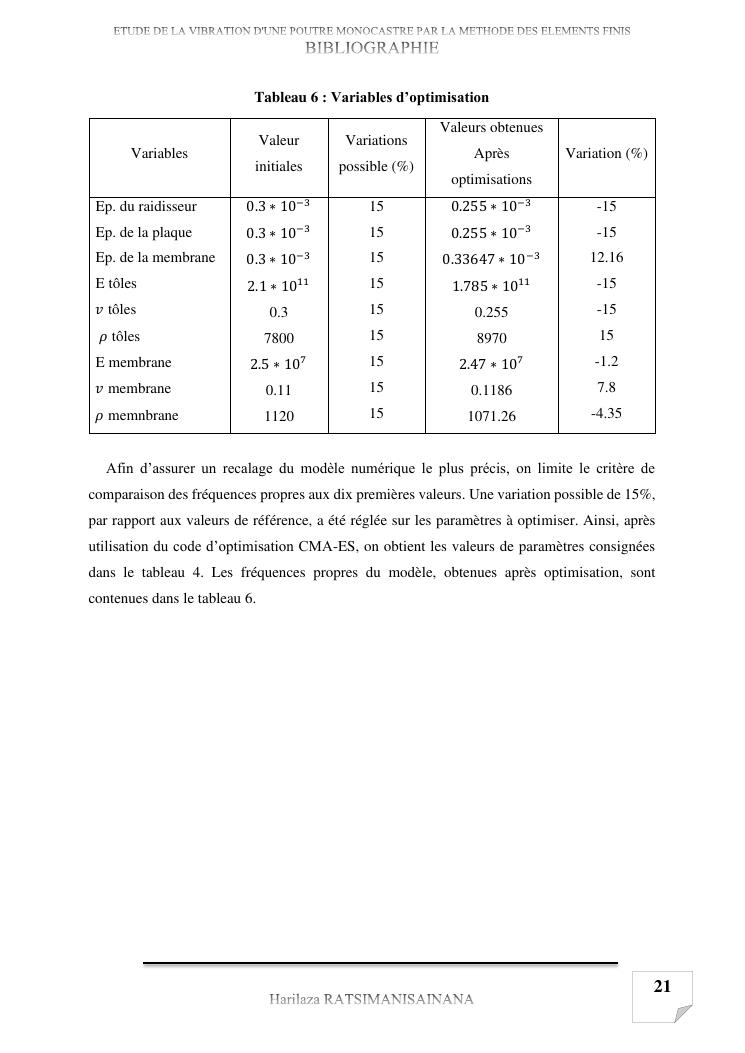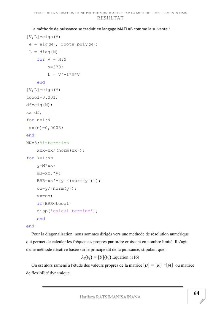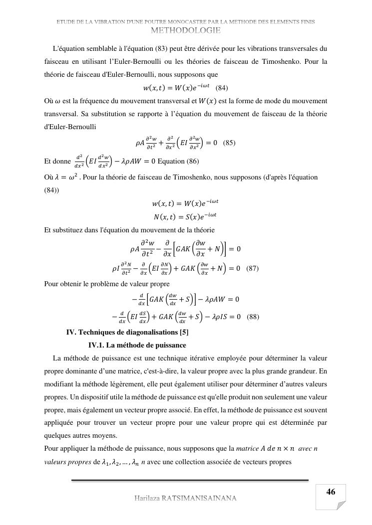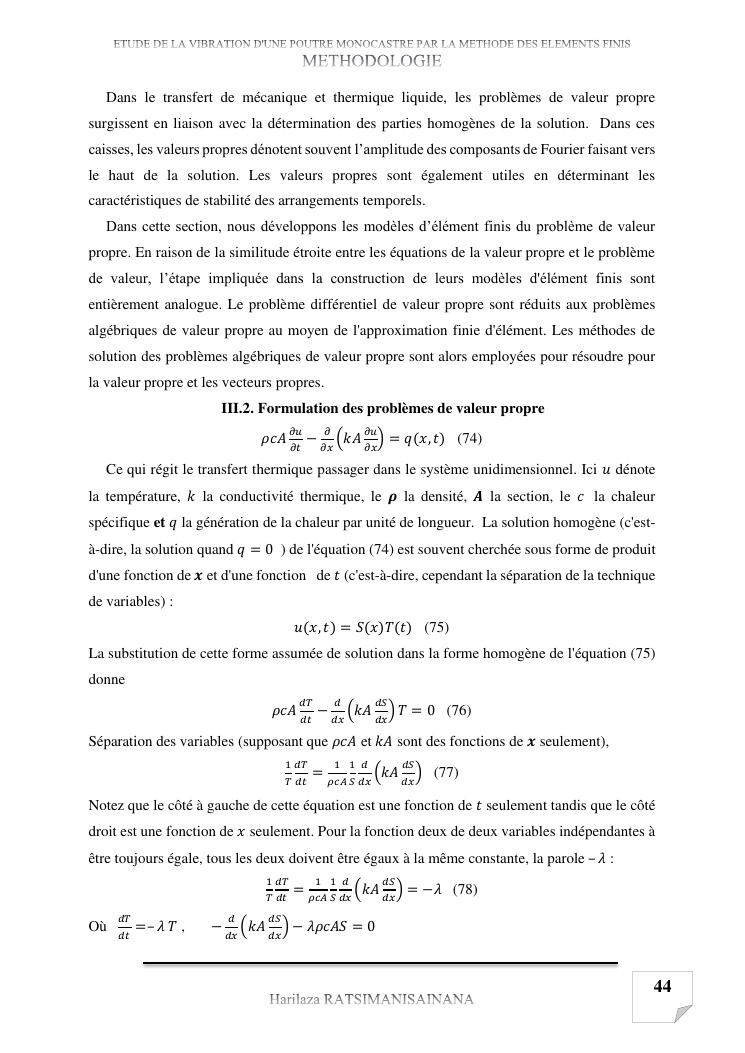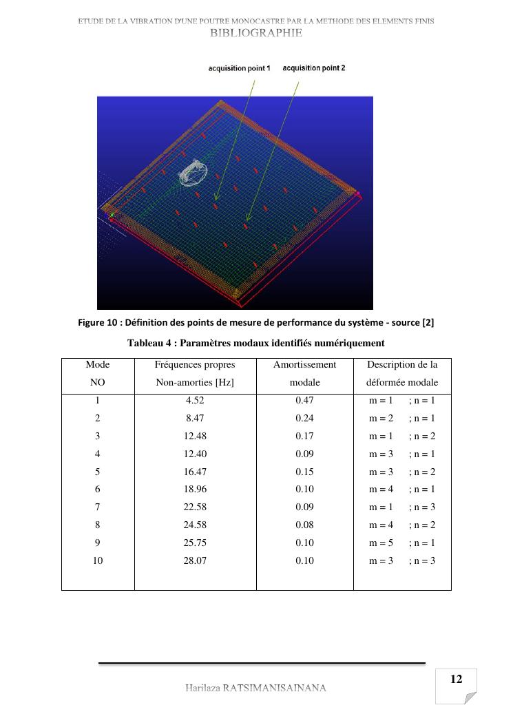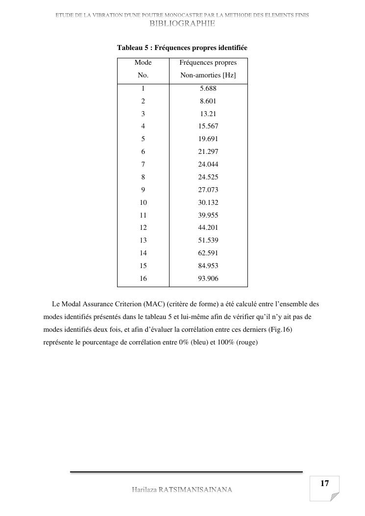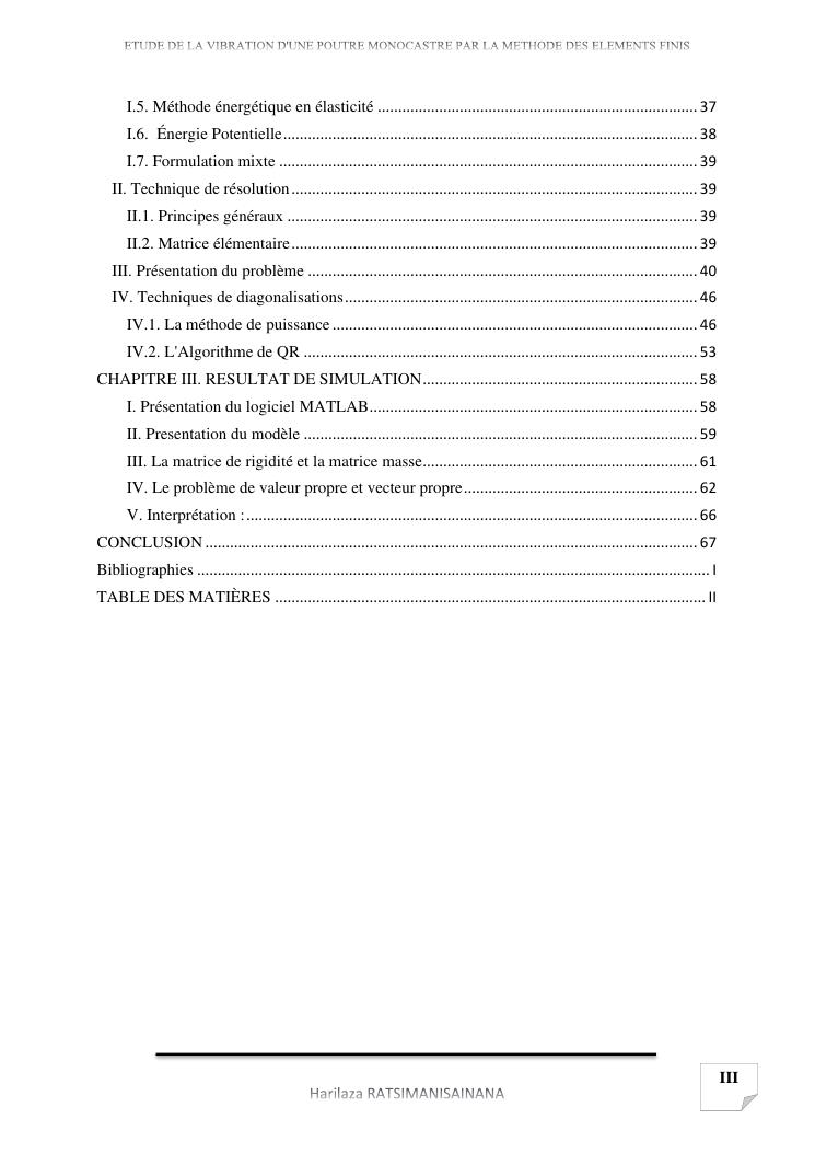 etude de la vibration d'une poutre monocastre par la methode des elements finis