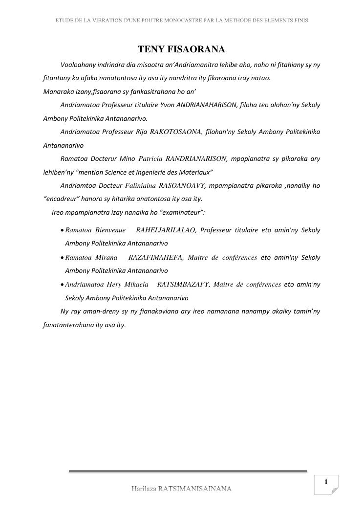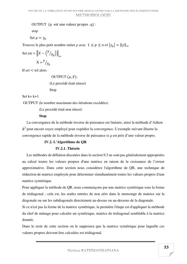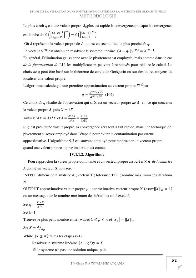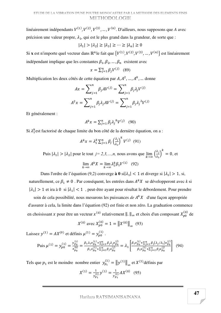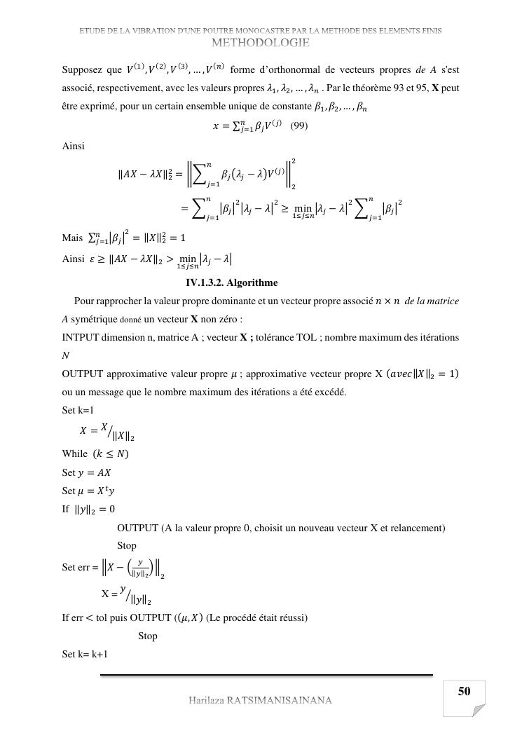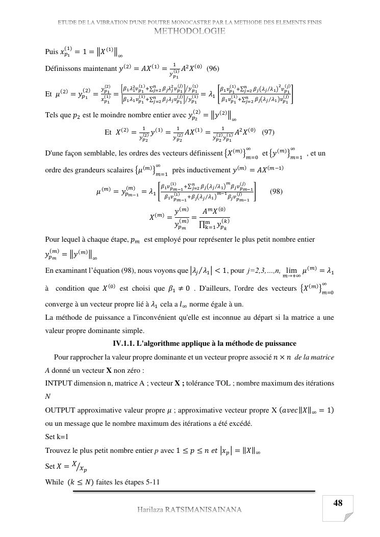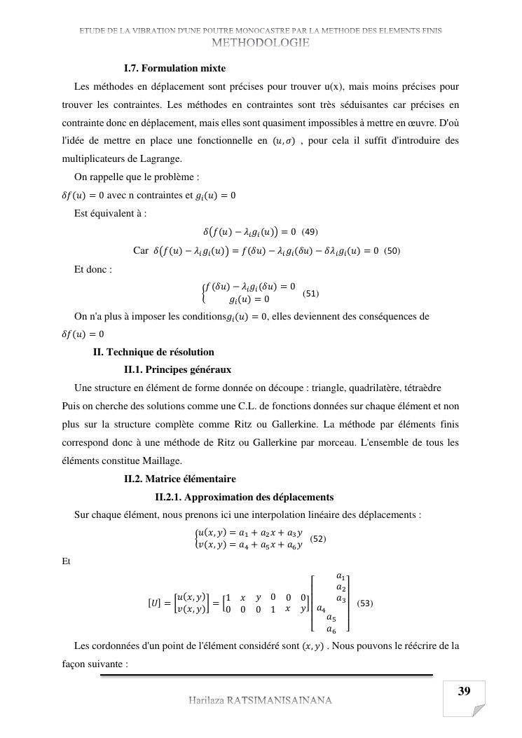 etude de la vibration d'une poutre monocastre par la methode des elements finis