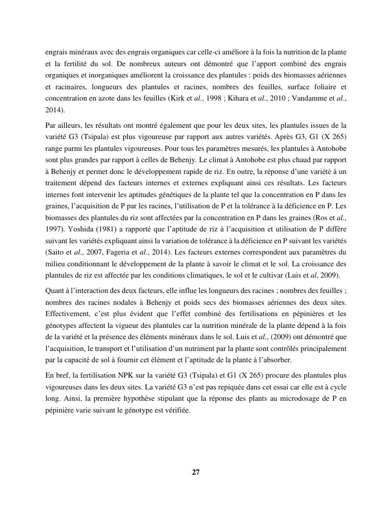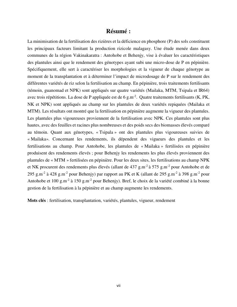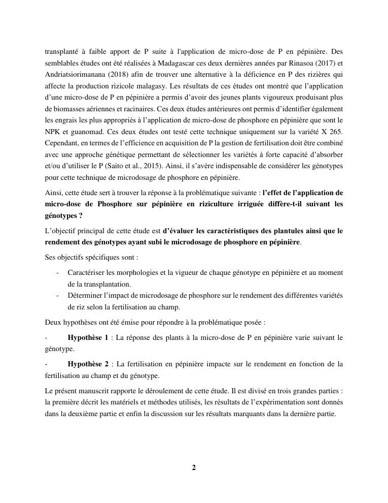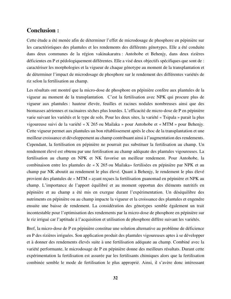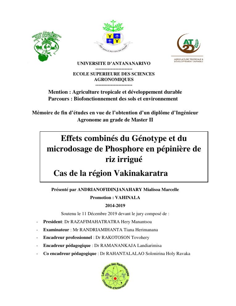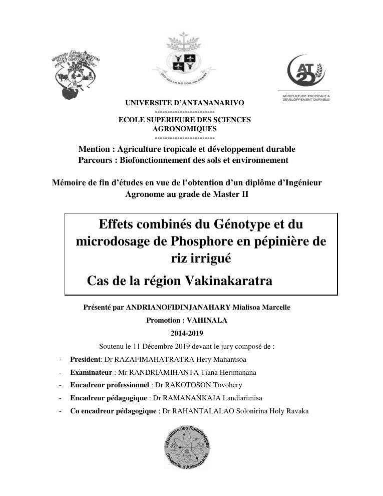 effets combinés du génotype et du microdosage de phosphore en pépinière de riz irrigué cas de la région vakinakaratra
