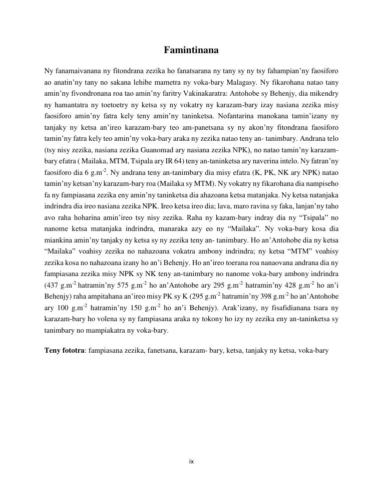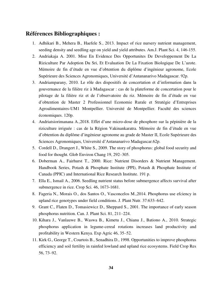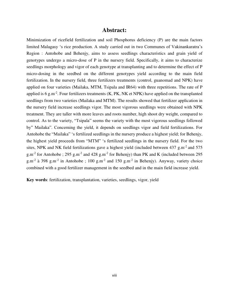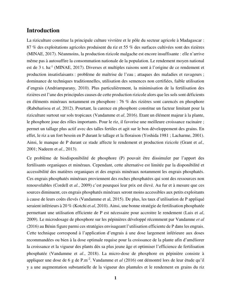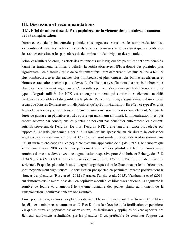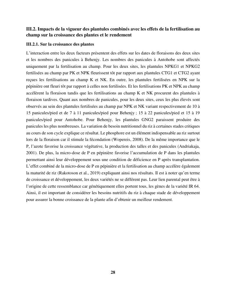 effets combinés du génotype et du microdosage de phosphore en pépinière de riz irrigué cas de la région vakinakaratra
