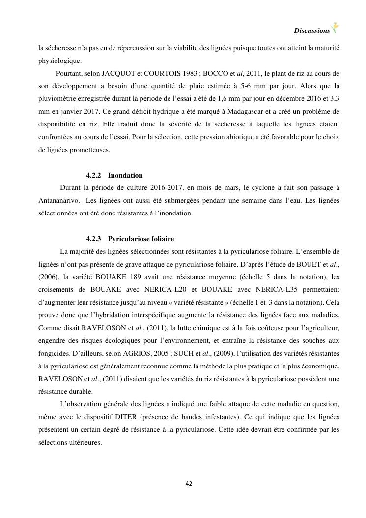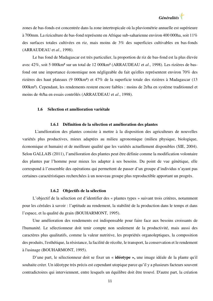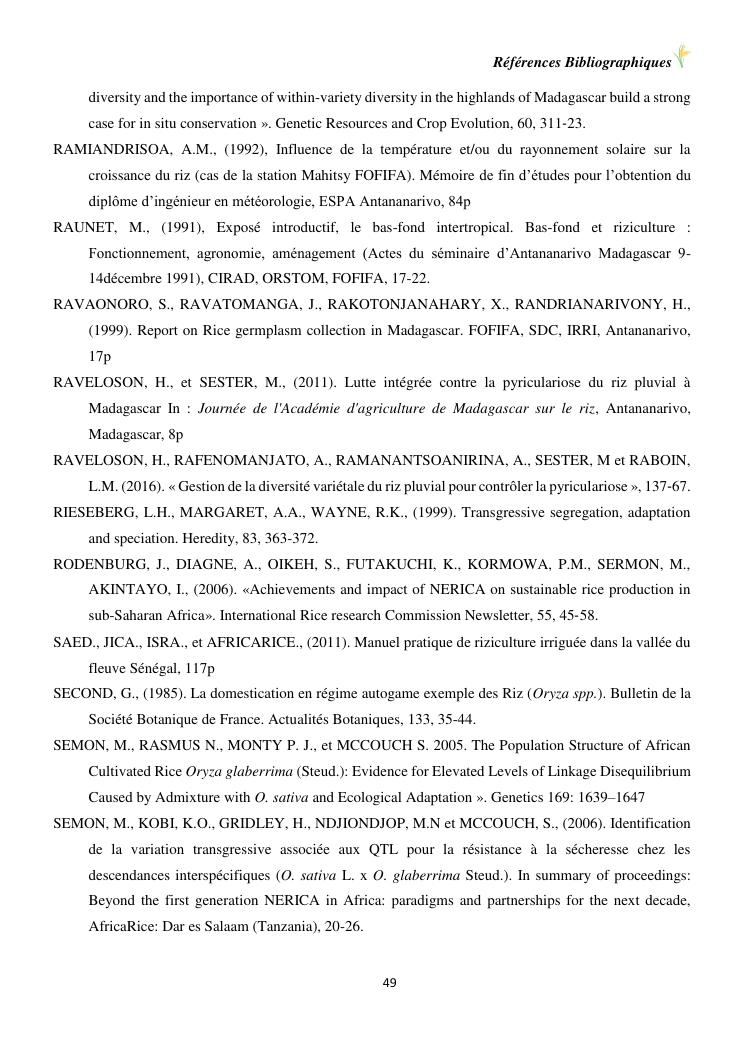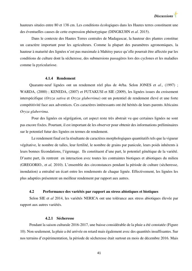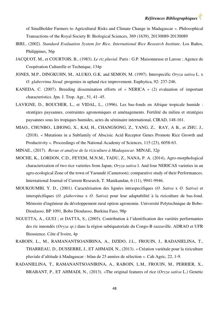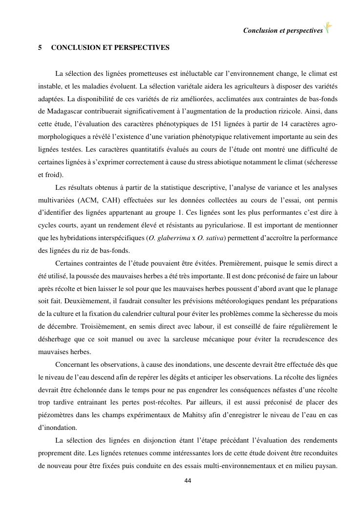 sélection de lignées de riz issues des croisements oryza sativa l. x oryza glaberrima steud. adaptées à la riziculture de bas-fond de madagascar : cas de mahitsy