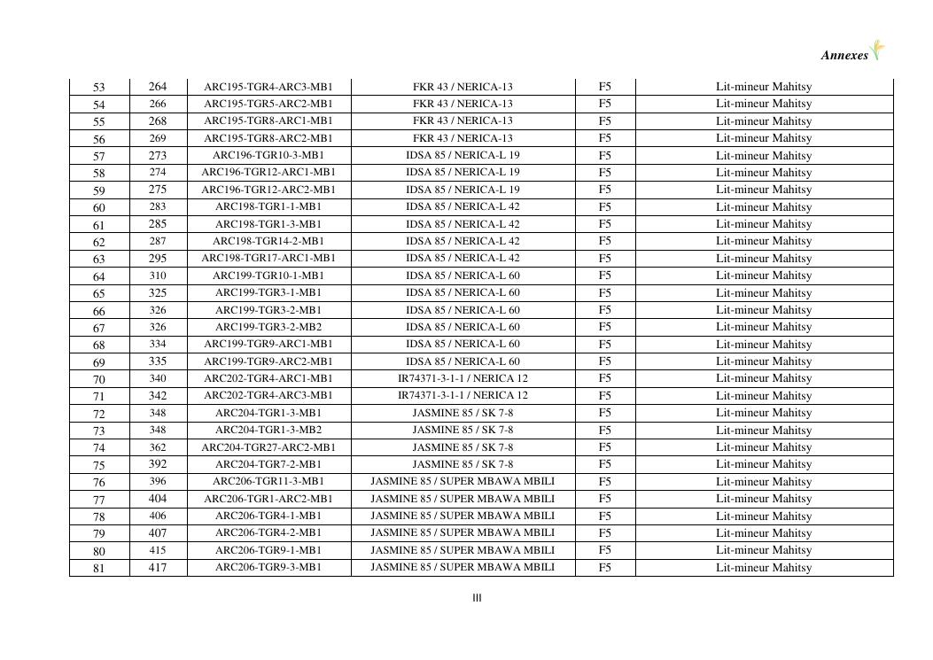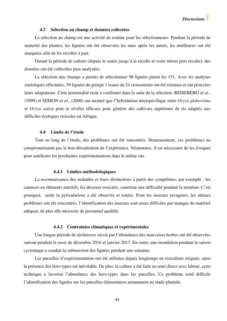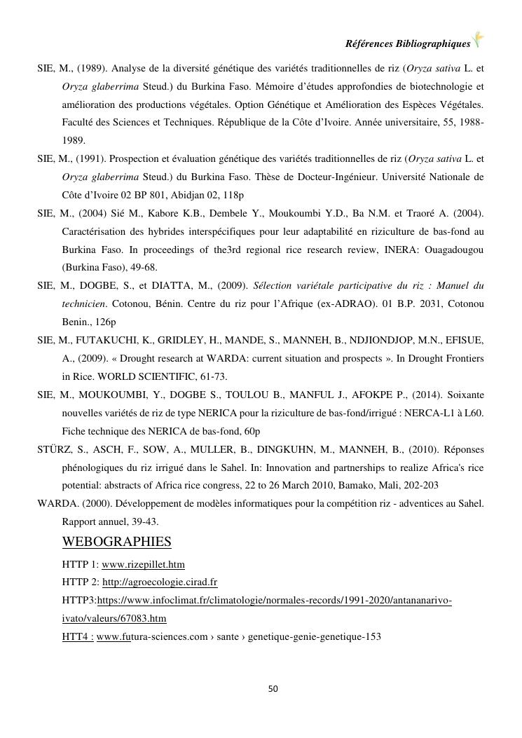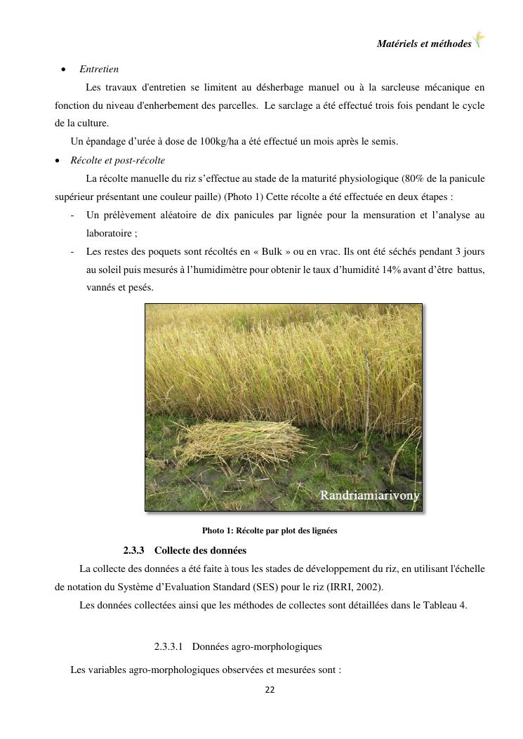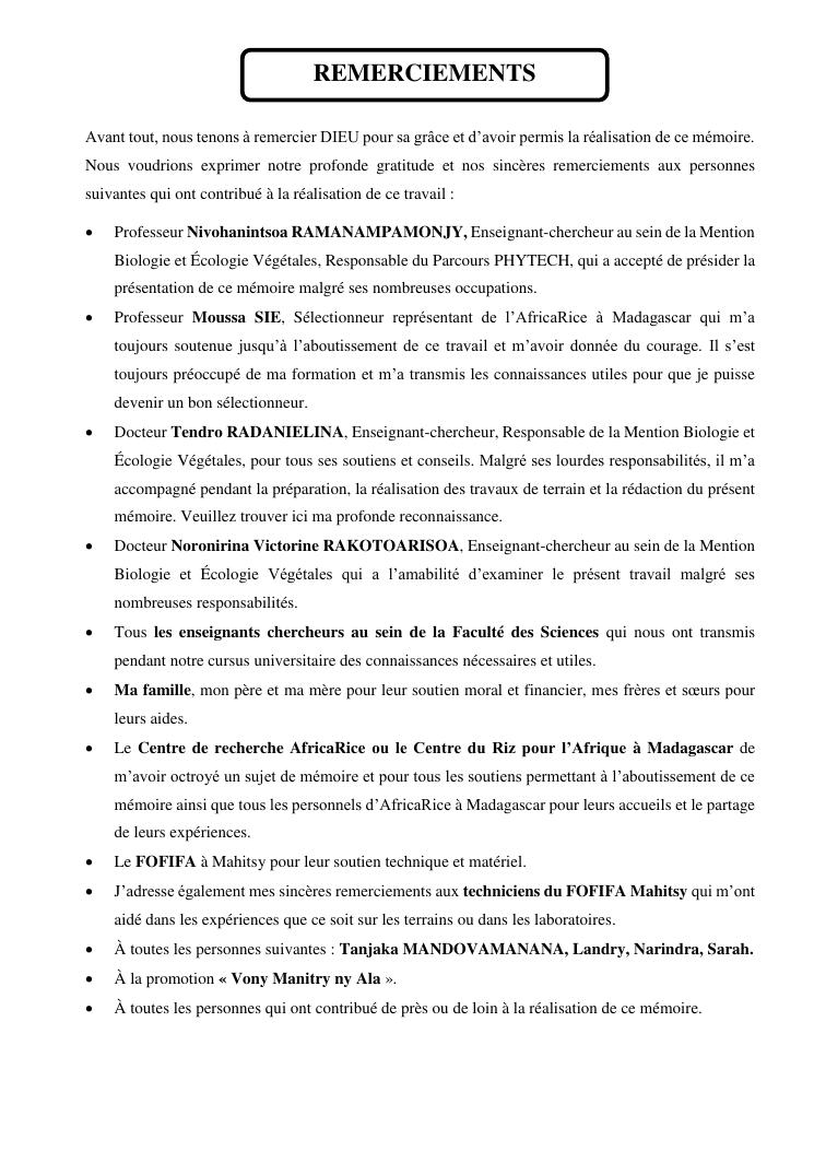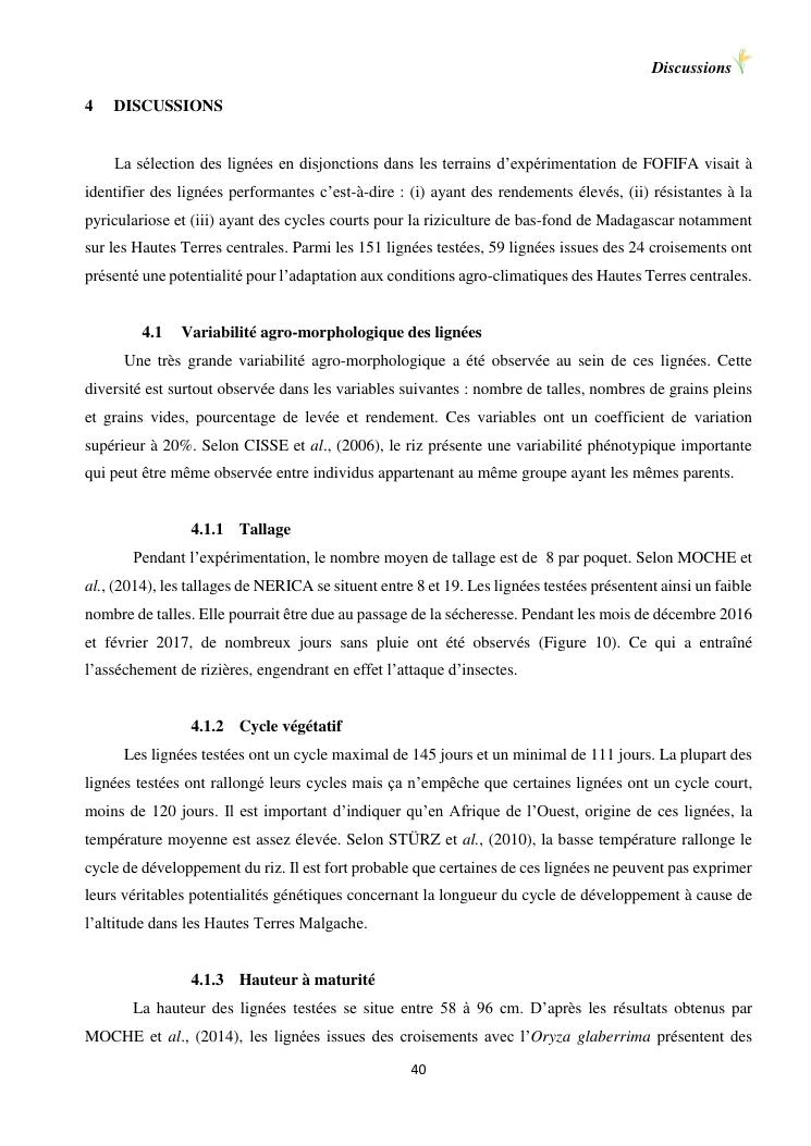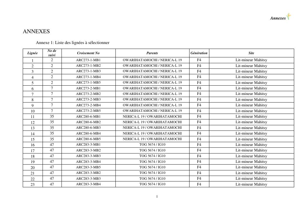 sélection de lignées de riz issues des croisements oryza sativa l. x oryza glaberrima steud. adaptées à la riziculture de bas-fond de madagascar : cas de mahitsy