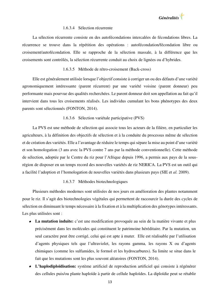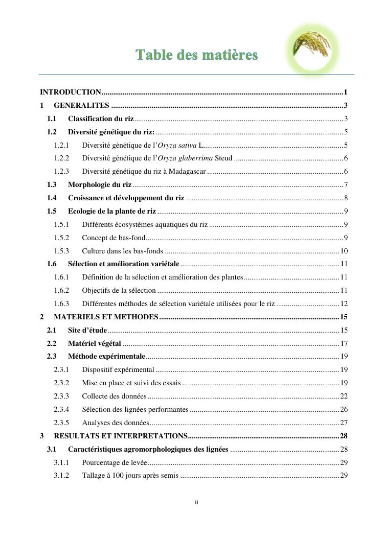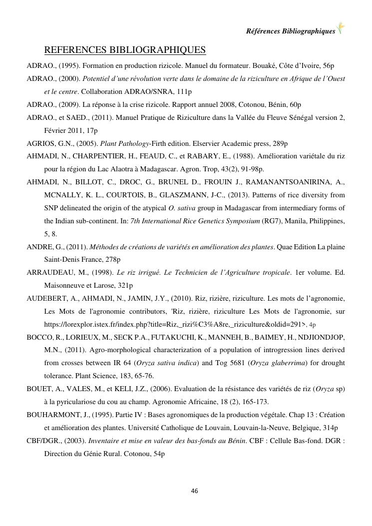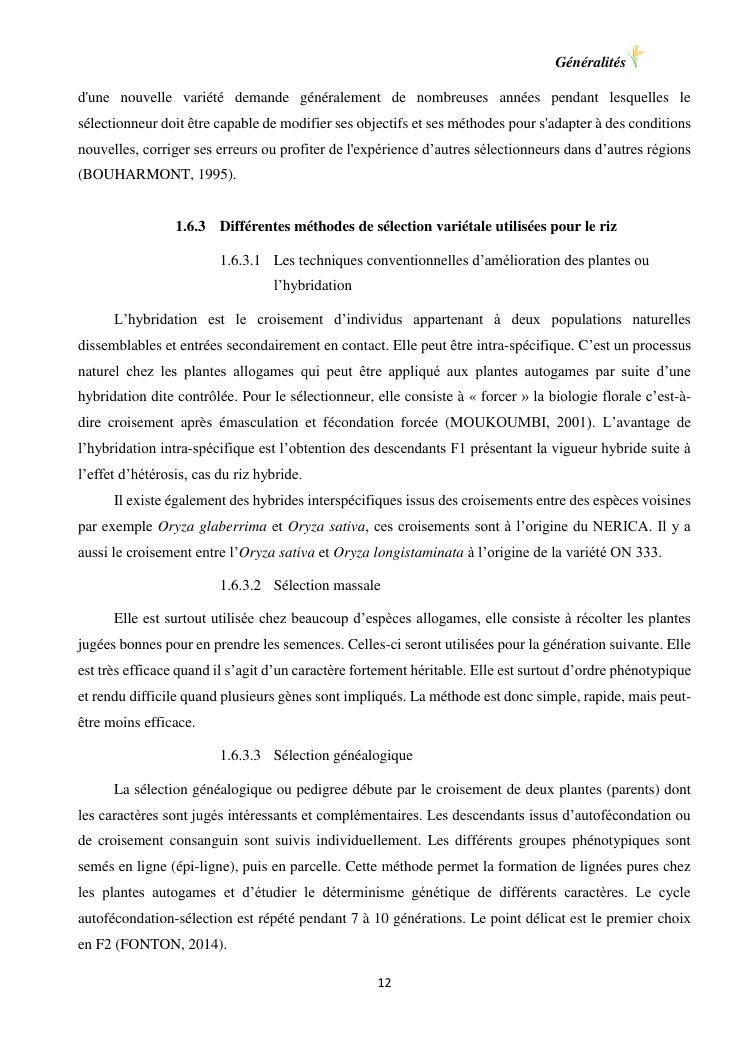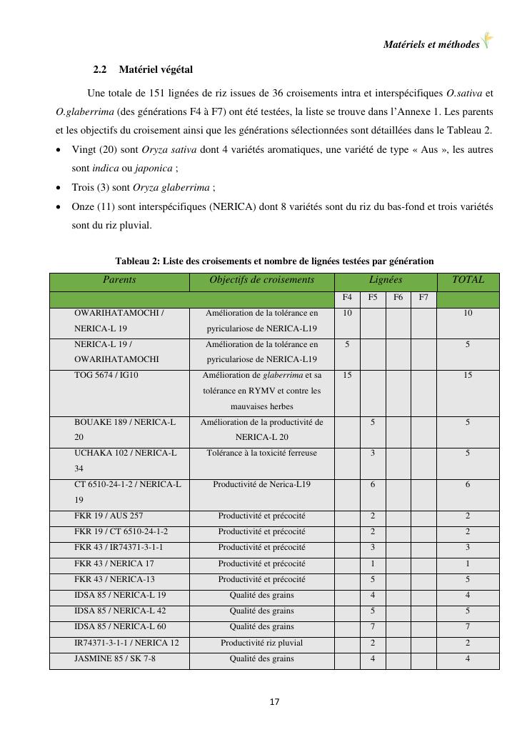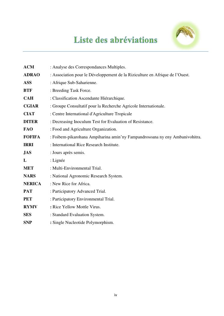 sélection de lignées de riz issues des croisements oryza sativa l. x oryza glaberrima steud. adaptées à la riziculture de bas-fond de madagascar : cas de mahitsy