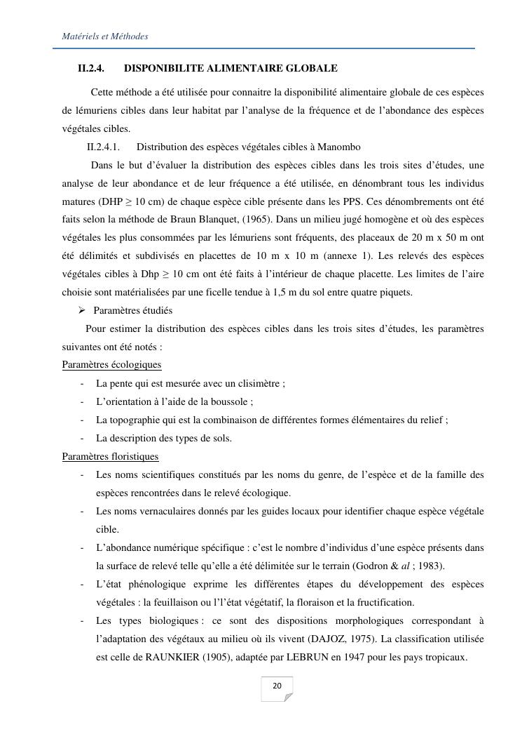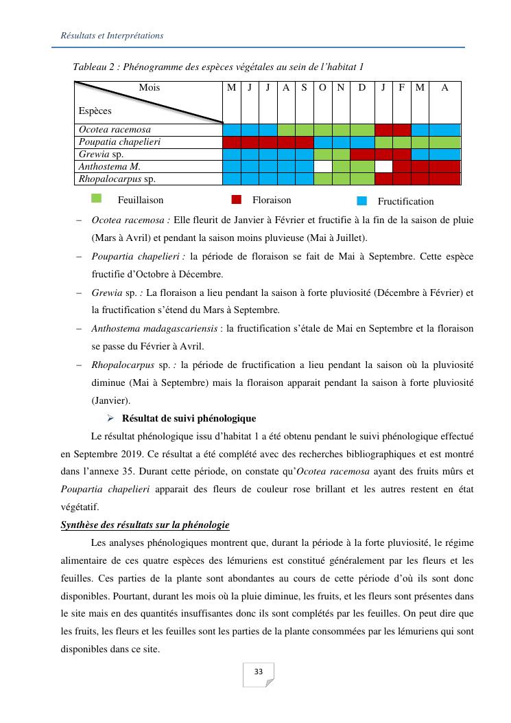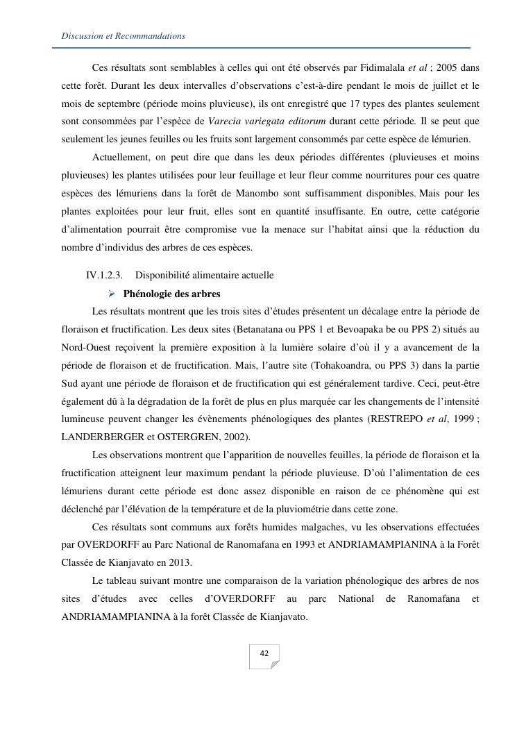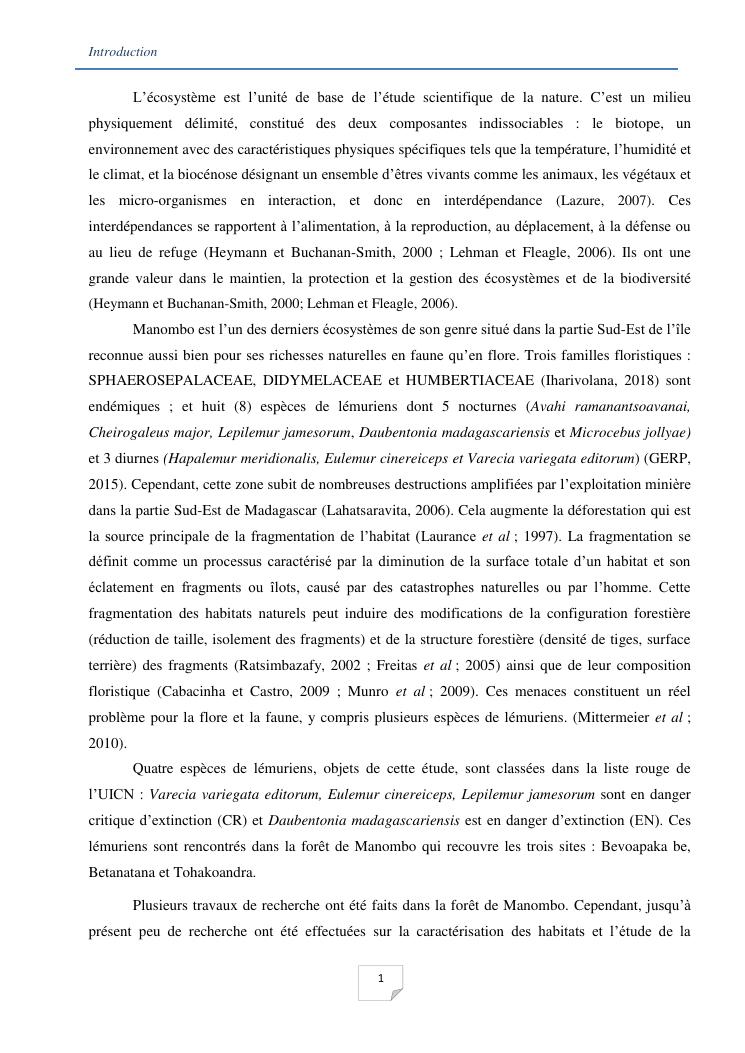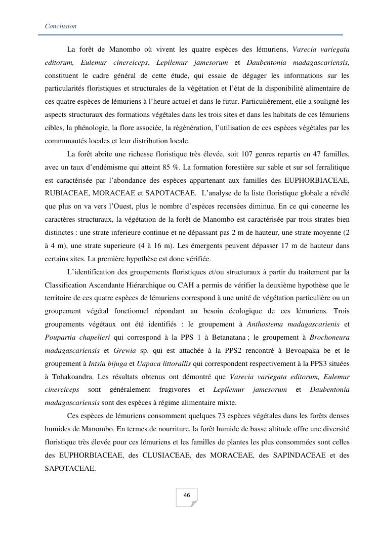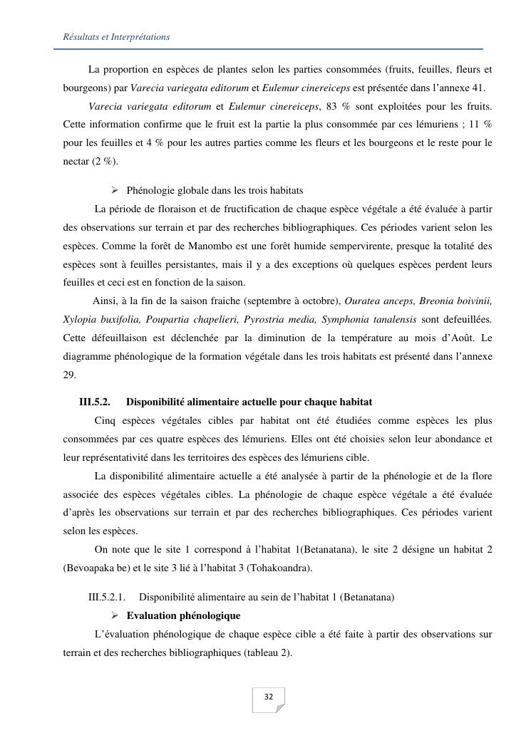 caractérisation biologique des habitats et étude de la disponibilité alimentaire des quatre espèces des lémuriens (varecia variegata editorum, eulemur cinereiceps , lepilemur jamesorum , daubentonia madagascariensis ) dans la zone de manombo, district de farafangana région atsimo atsinanana.