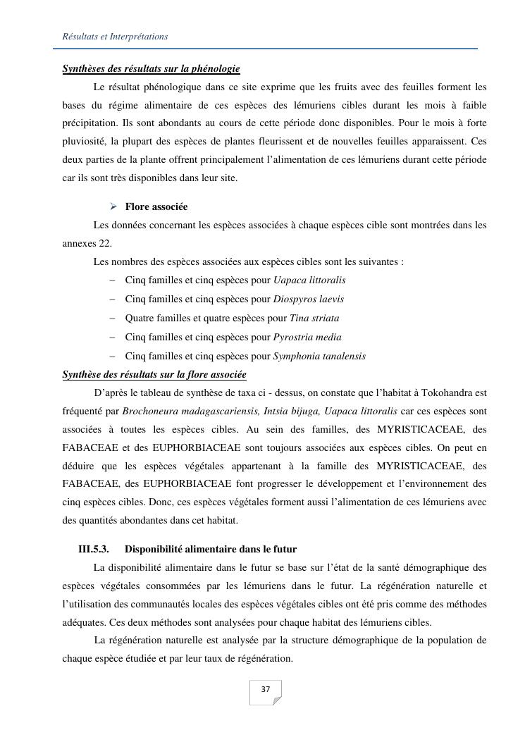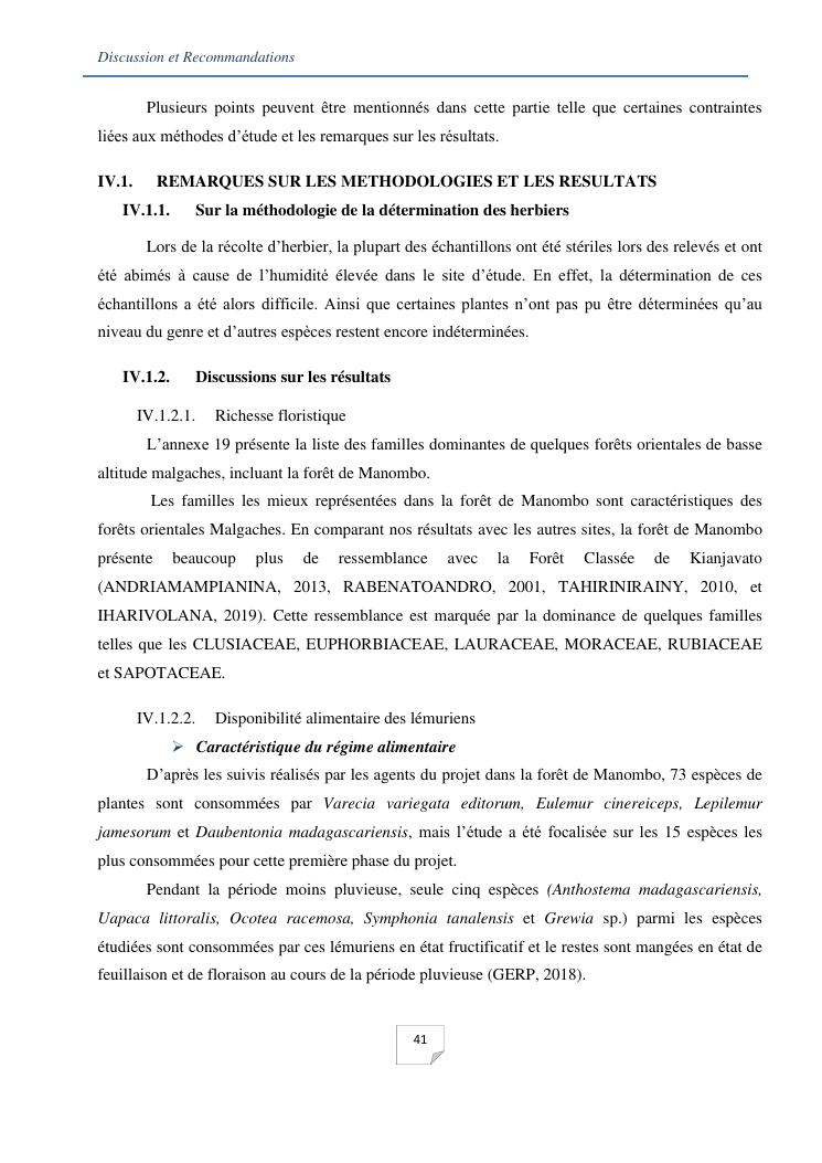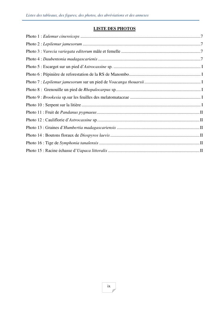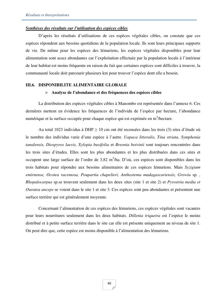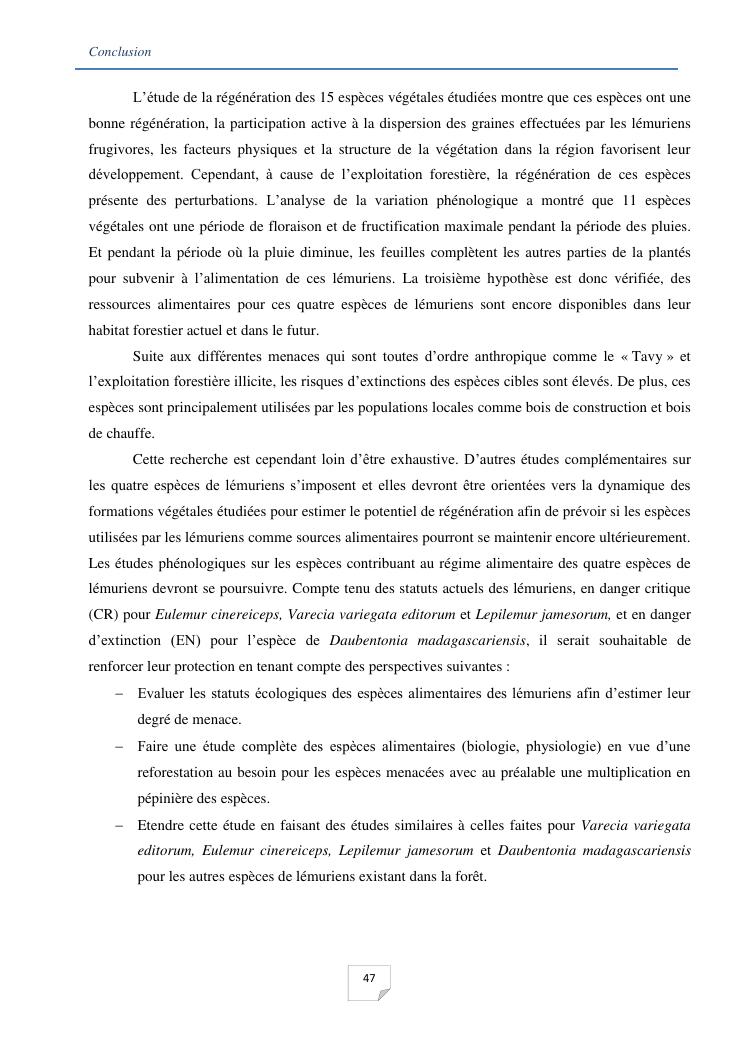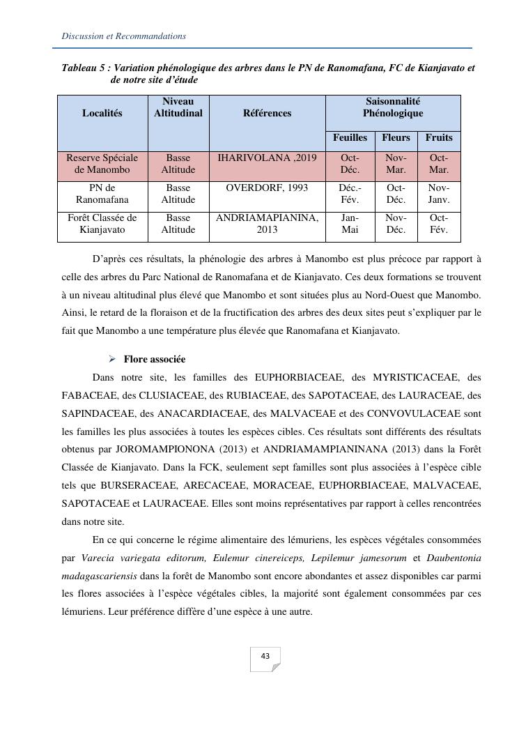 caractérisation biologique des habitats et étude de la disponibilité alimentaire des quatre espèces des lémuriens (varecia variegata editorum, eulemur cinereiceps , lepilemur jamesorum , daubentonia madagascariensis ) dans la zone de manombo, district de farafangana région atsimo atsinanana.
