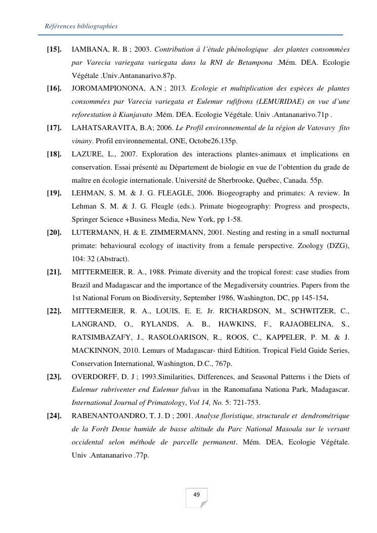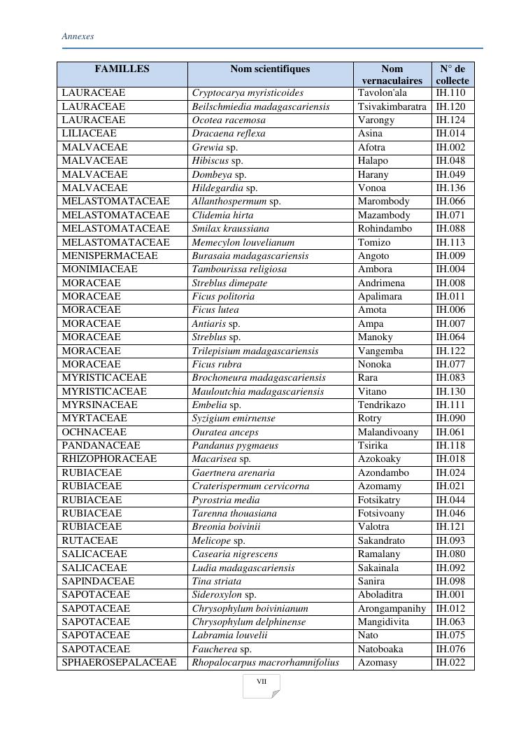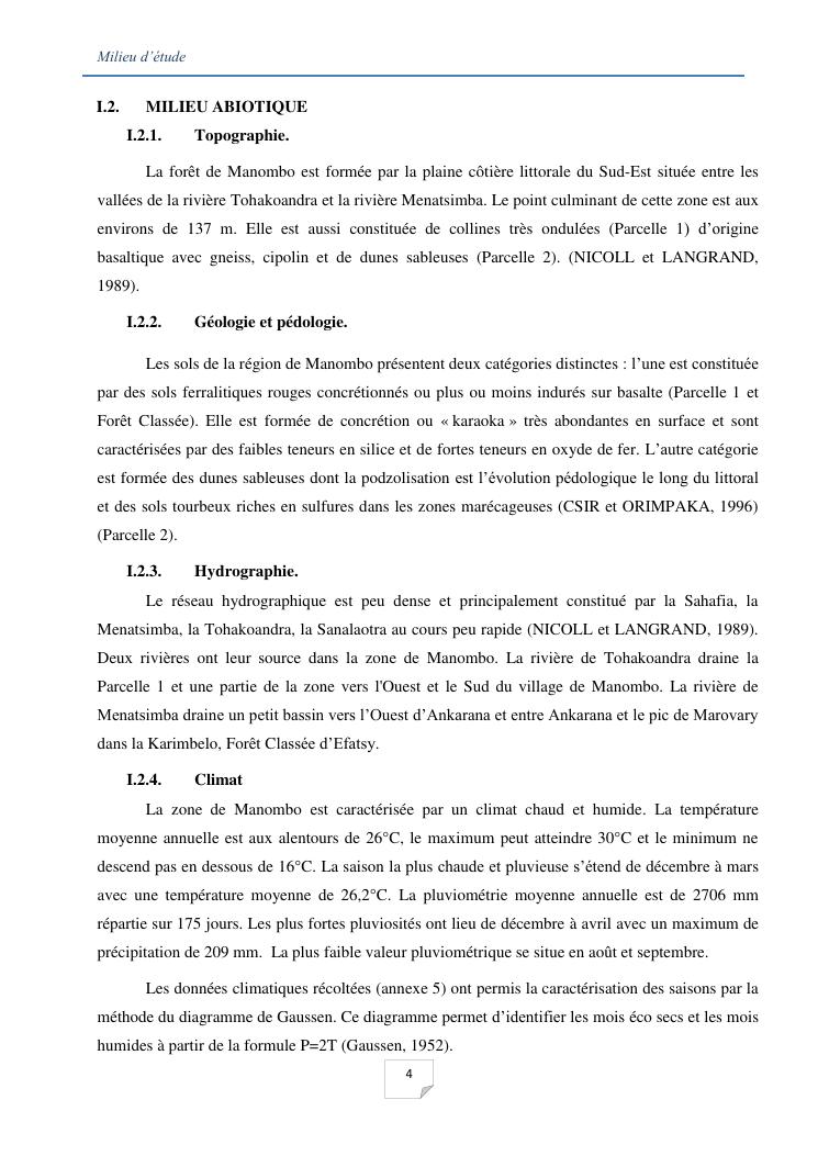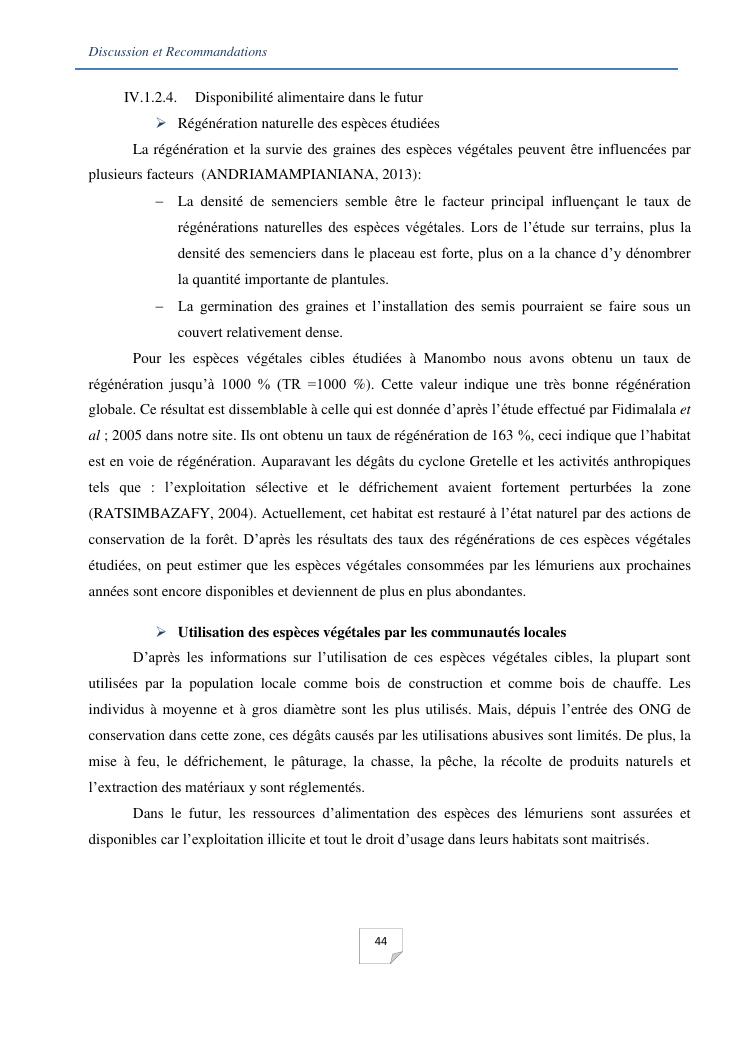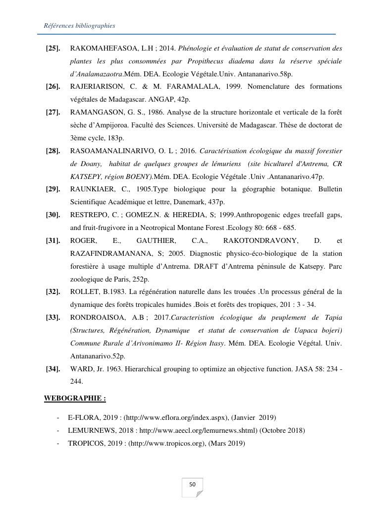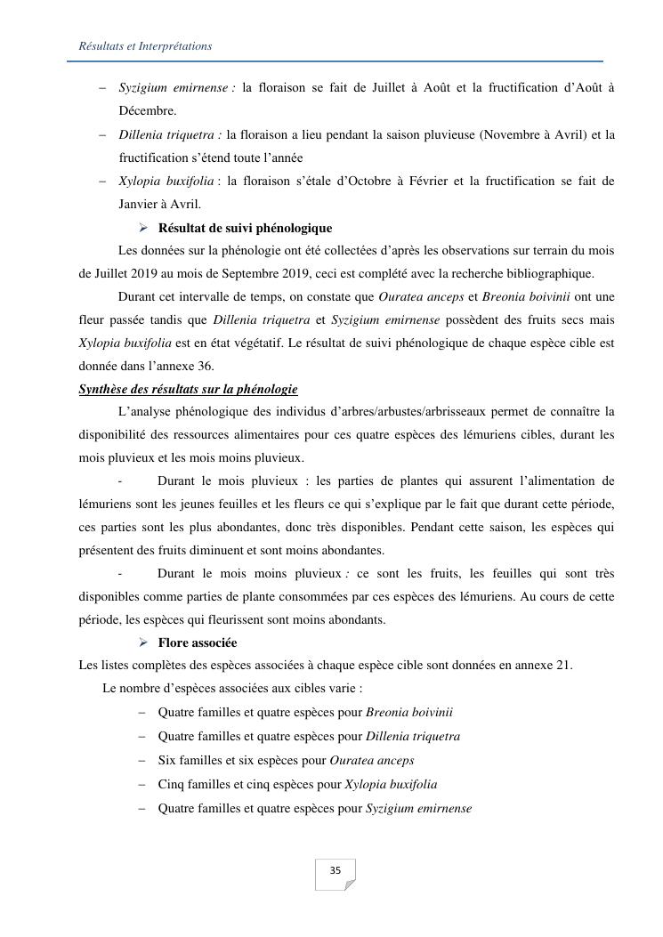 caractérisation biologique des habitats et étude de la disponibilité alimentaire des quatre espèces des lémuriens (varecia variegata editorum, eulemur cinereiceps , lepilemur jamesorum , daubentonia madagascariensis ) dans la zone de manombo, district de farafangana région atsimo atsinanana.