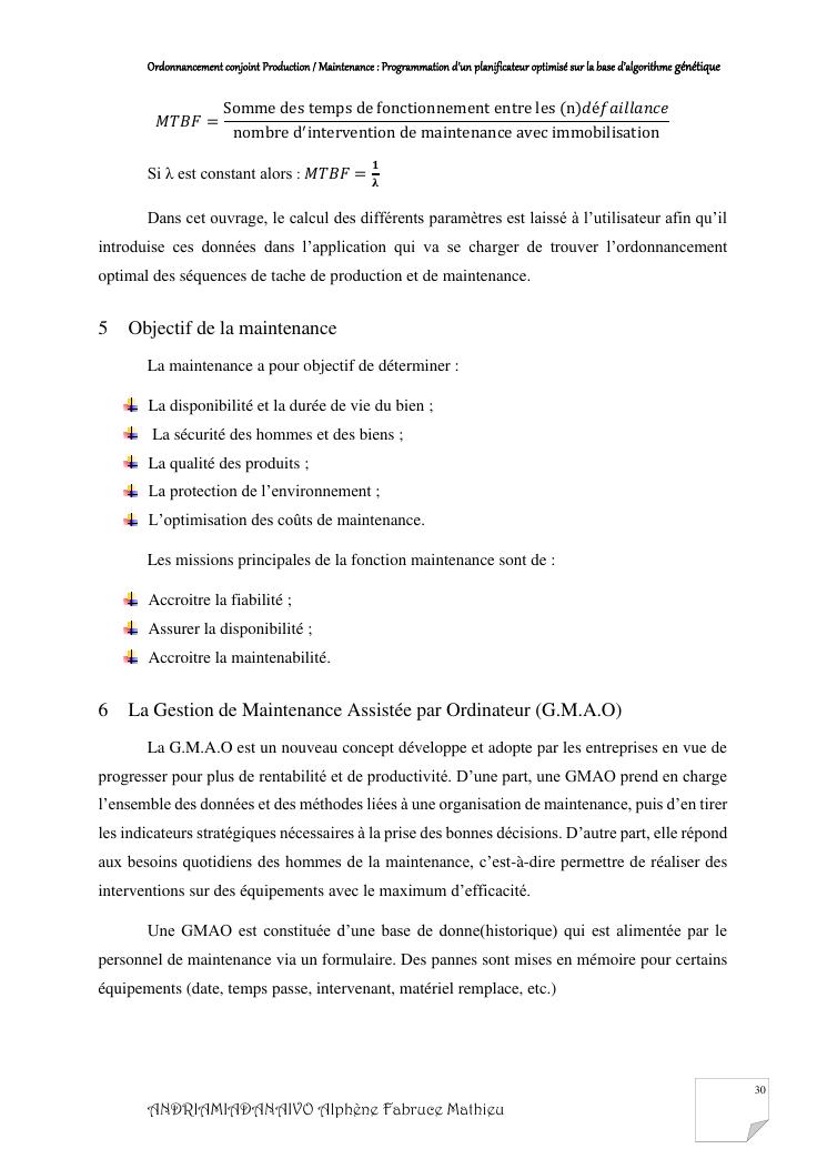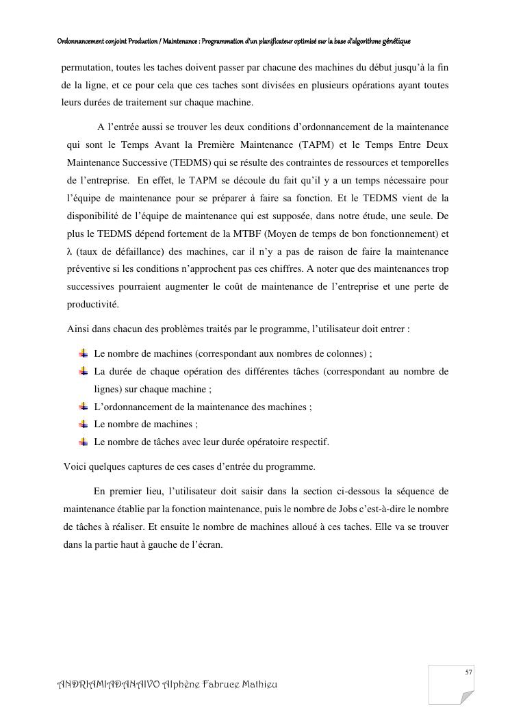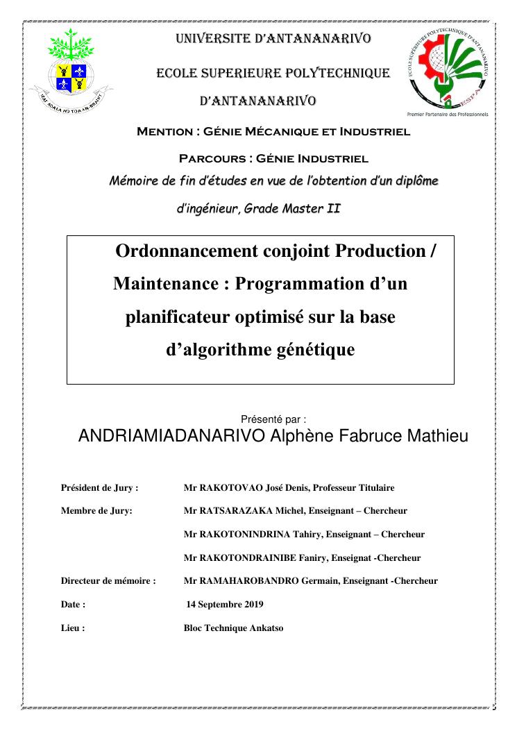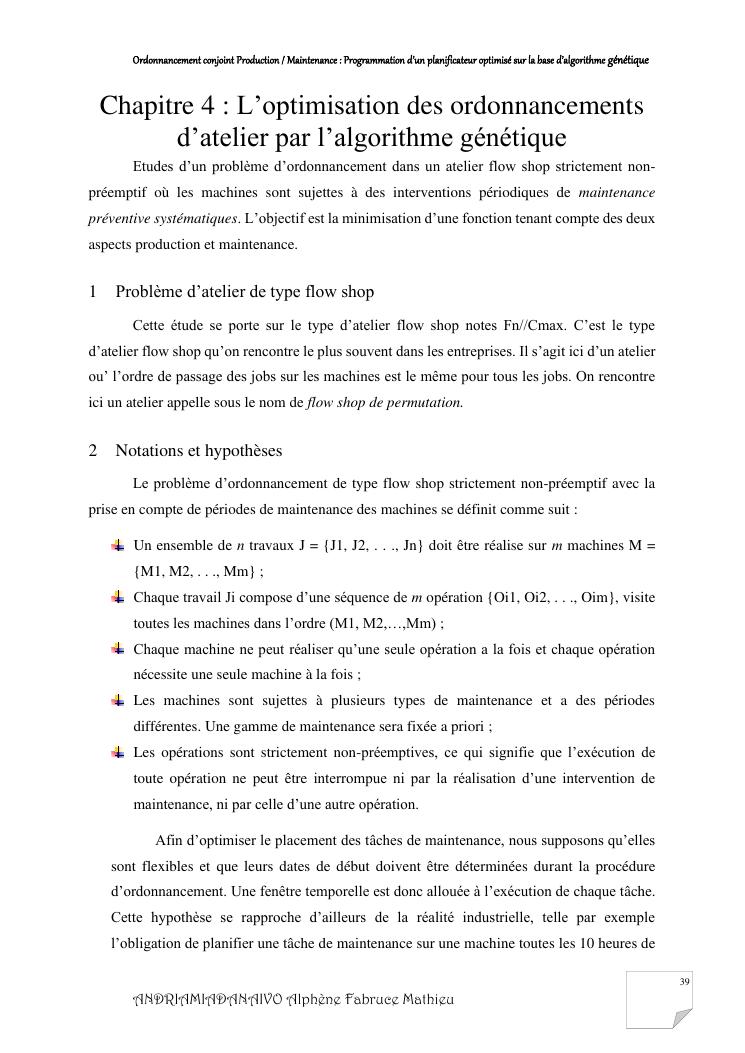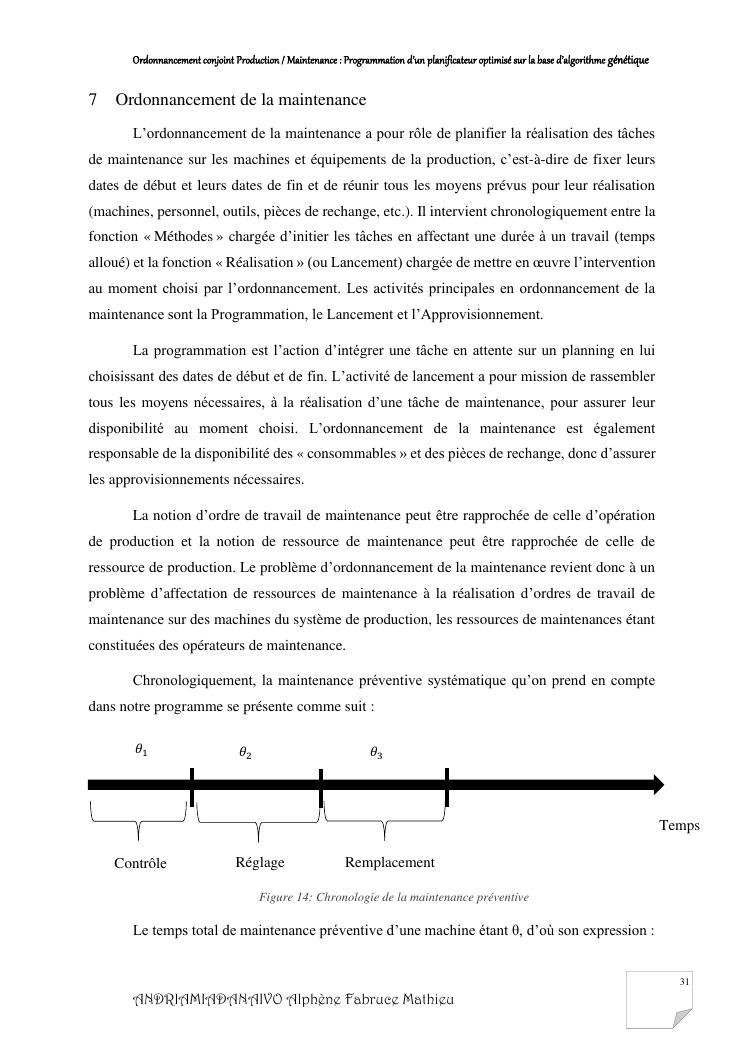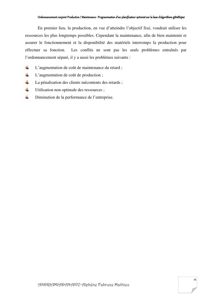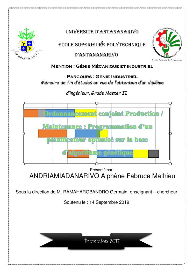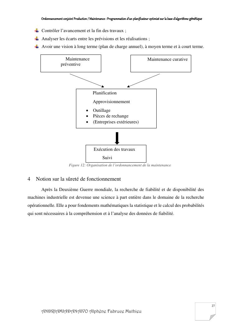 ordonnancement conjoint production / maintenance : programmation d'un planificateur optimisé sur la base d'algorithme génétique