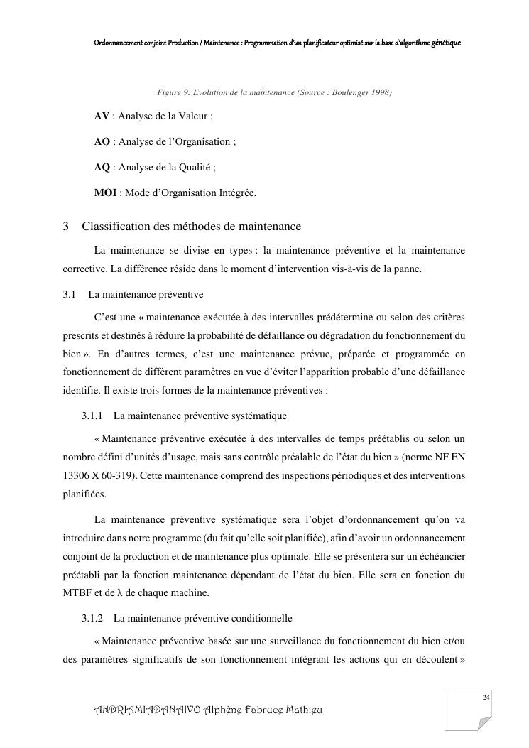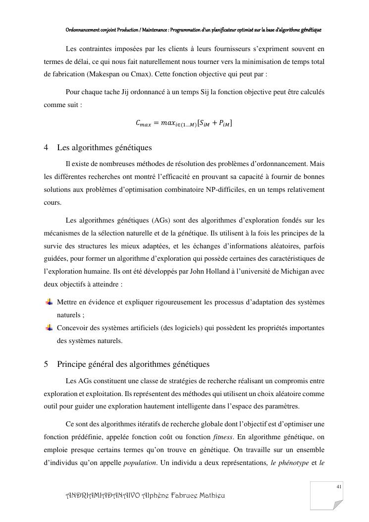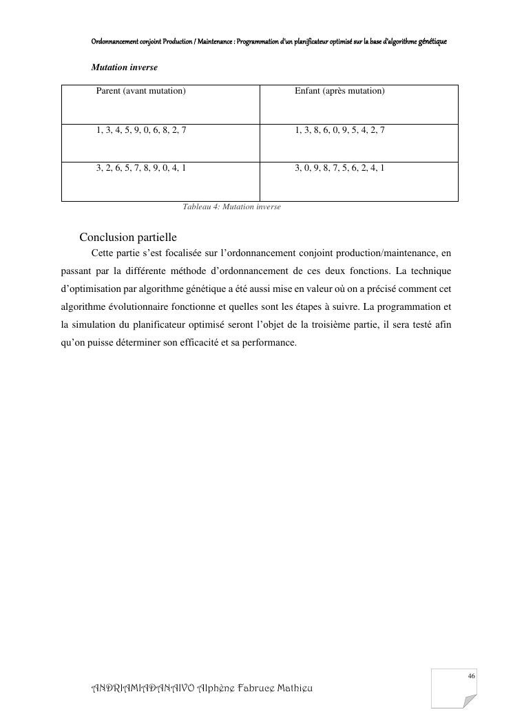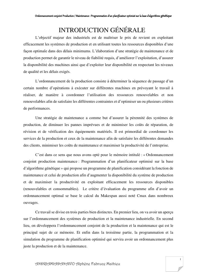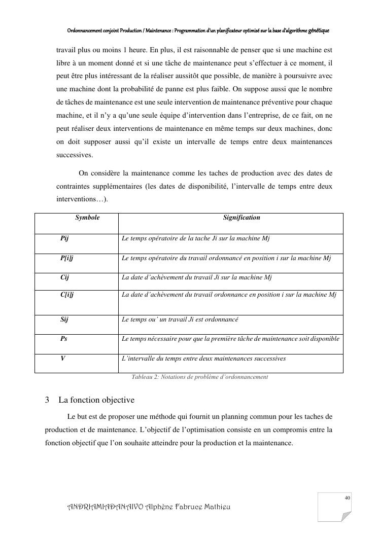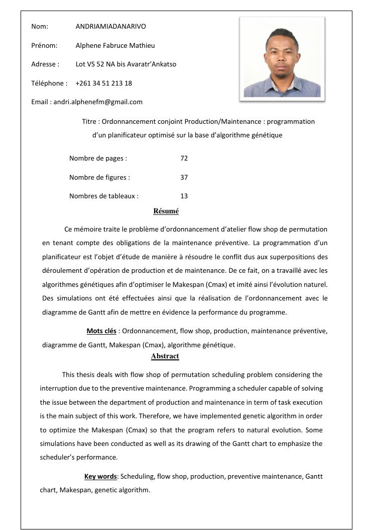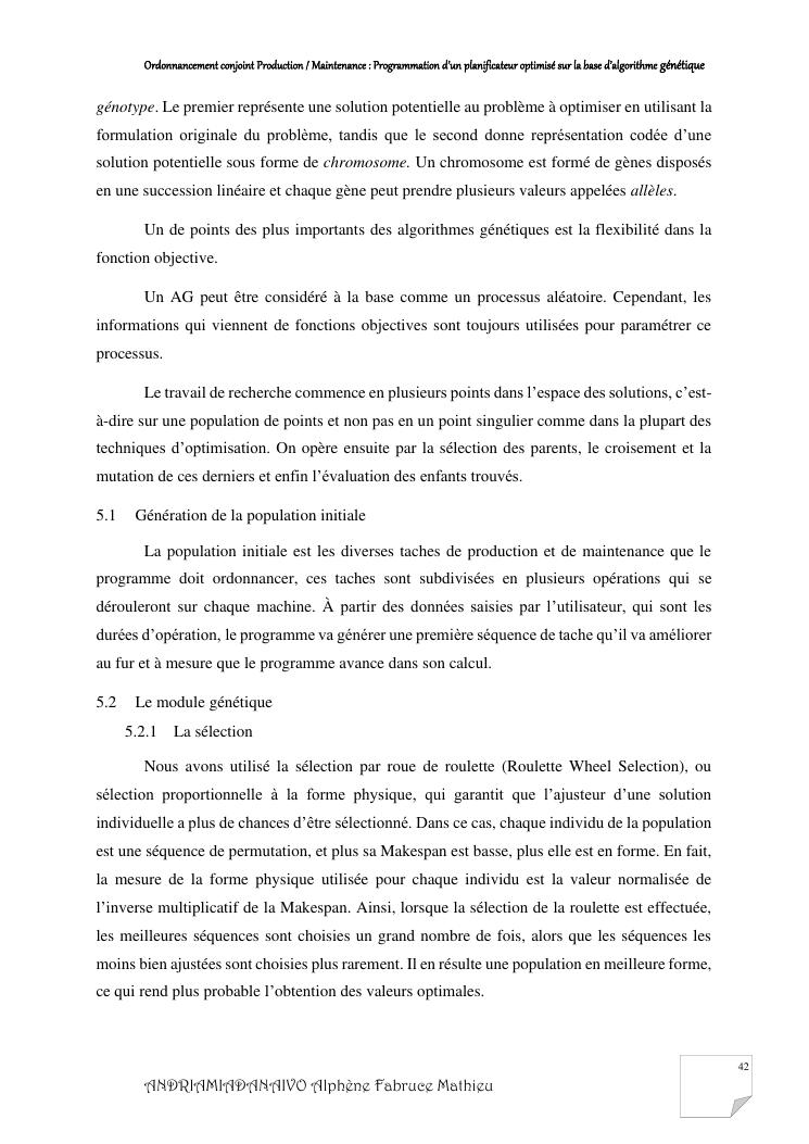 ordonnancement conjoint production / maintenance : programmation d'un planificateur optimisé sur la base d'algorithme génétique