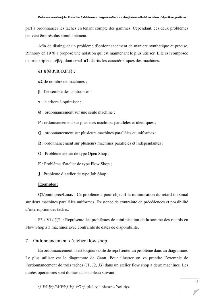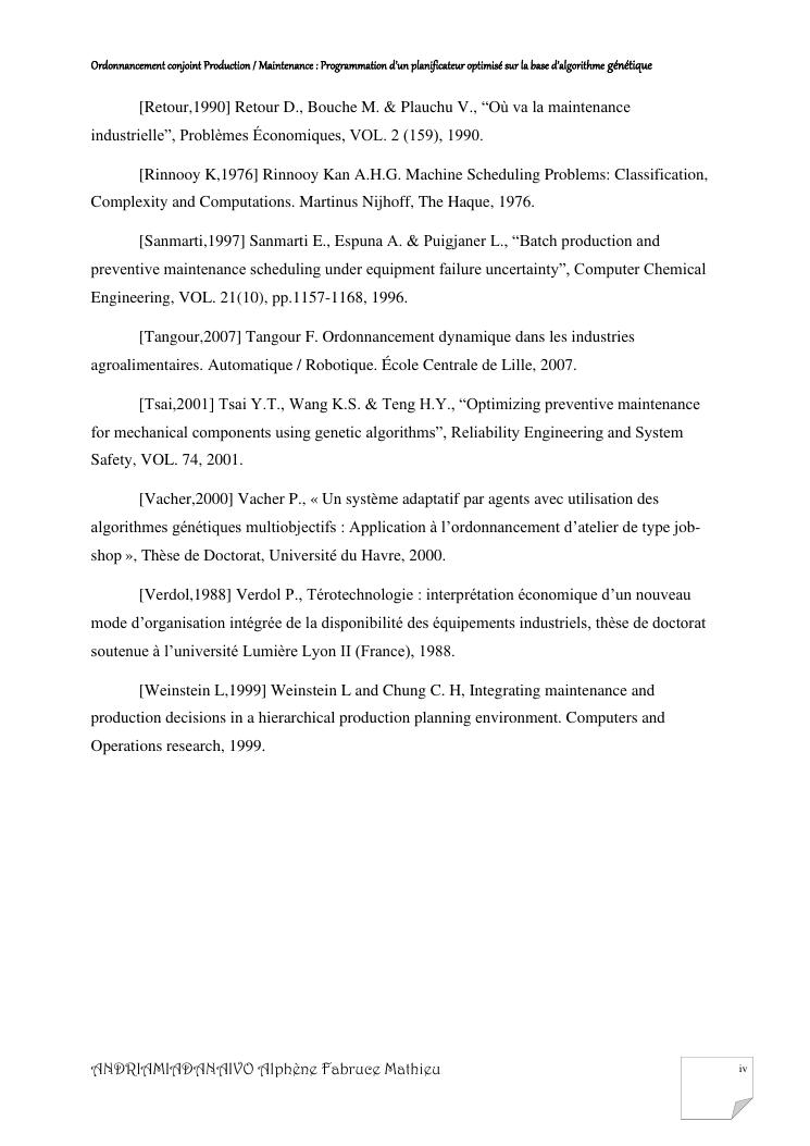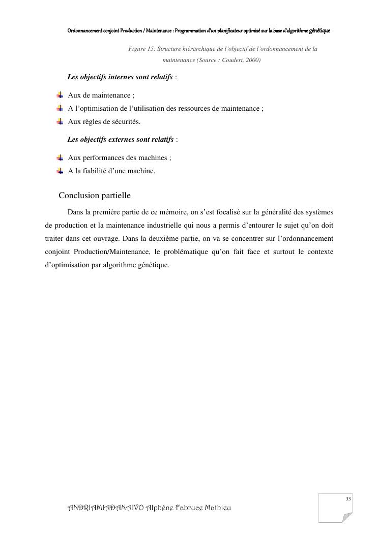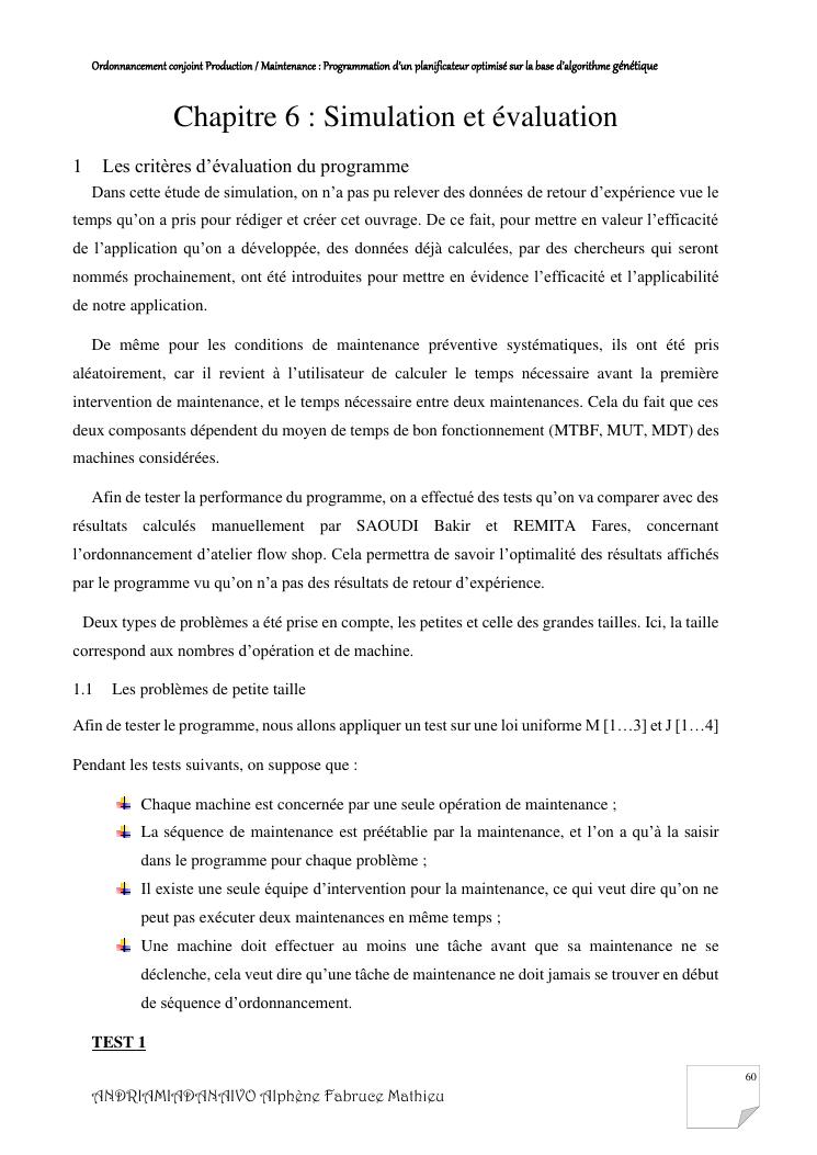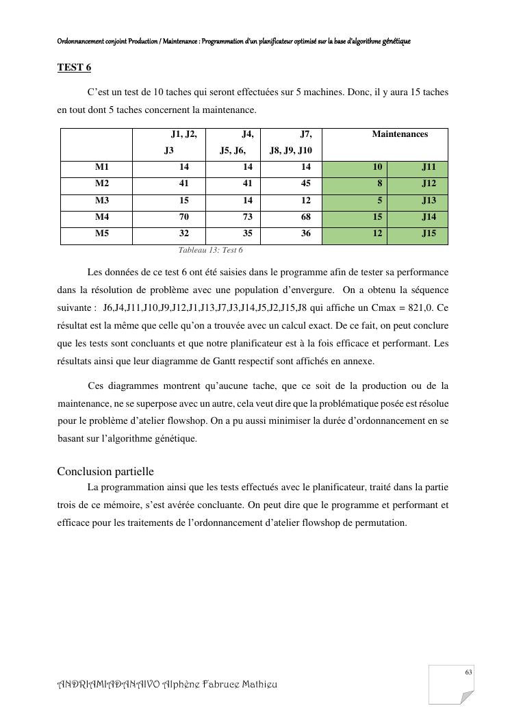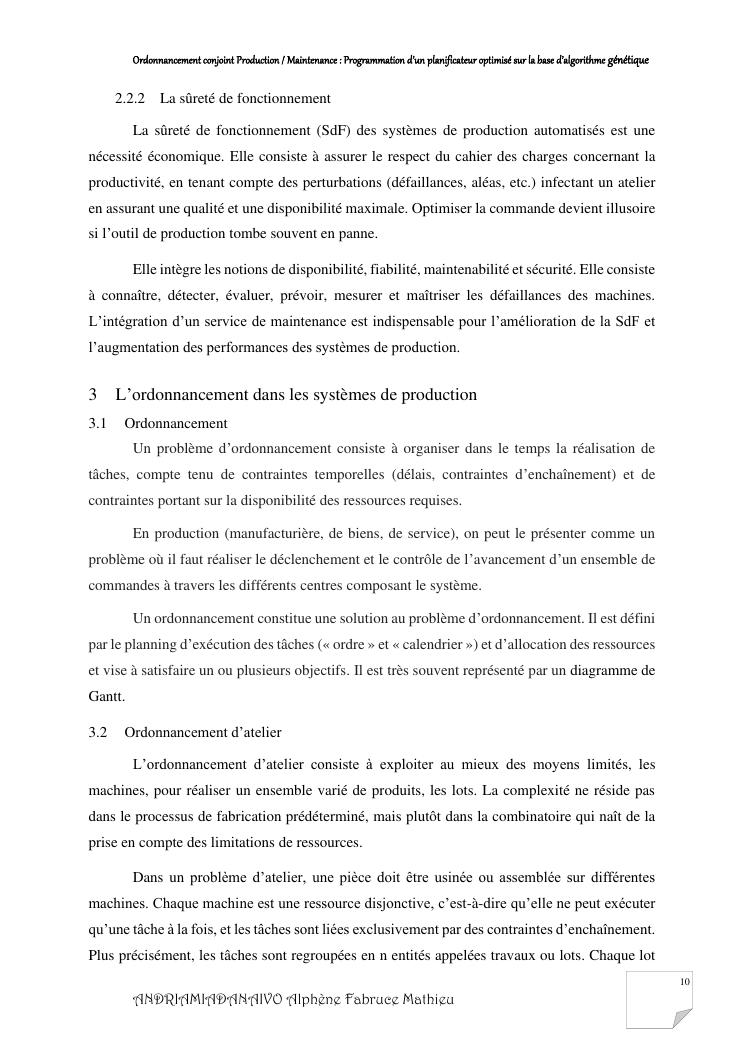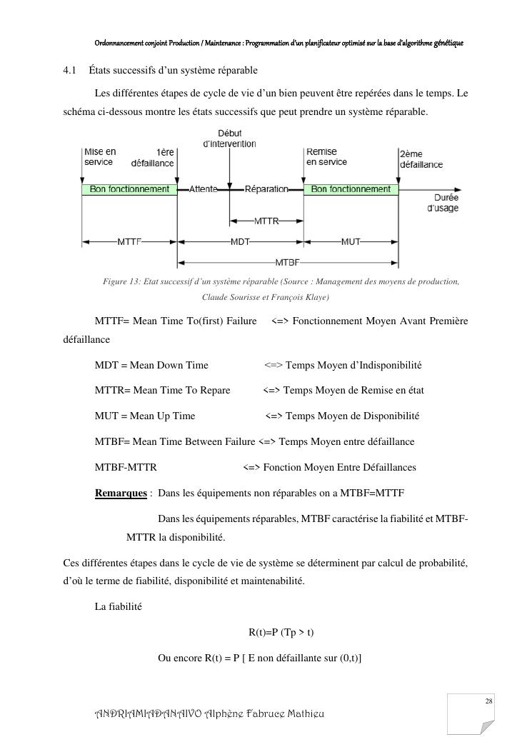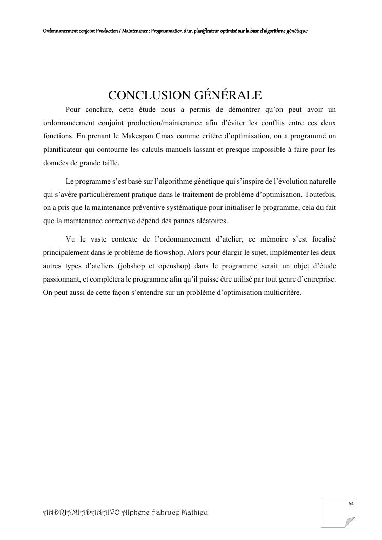 ordonnancement conjoint production / maintenance : programmation d'un planificateur optimisé sur la base d'algorithme génétique