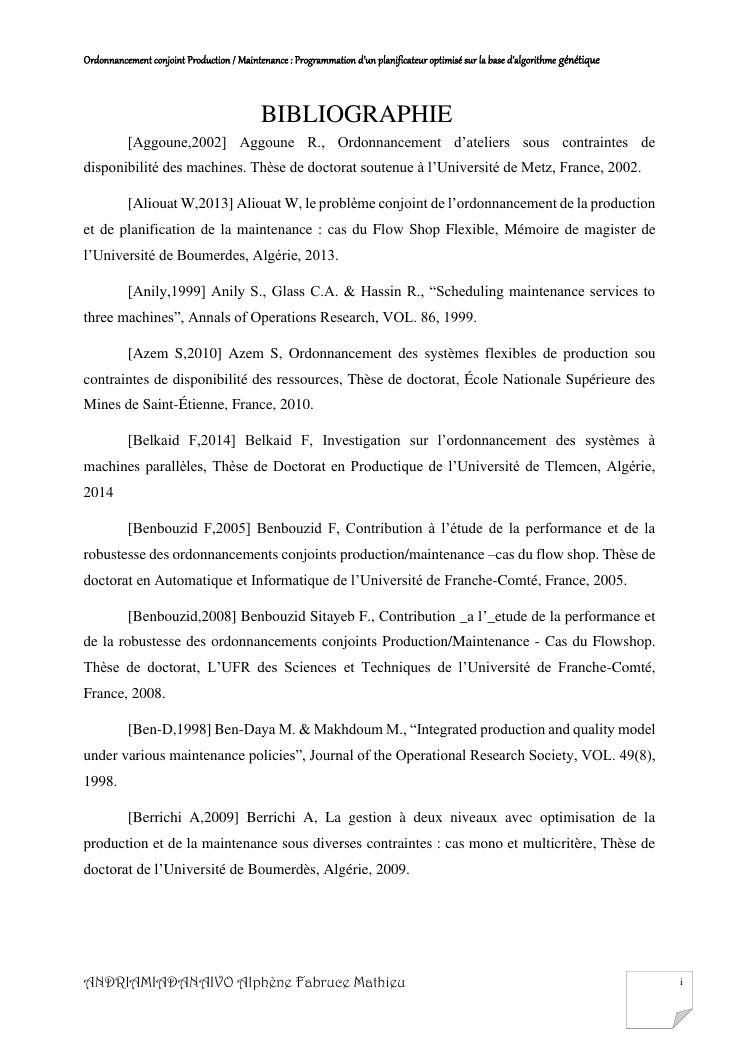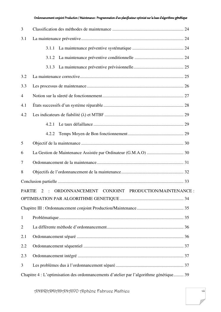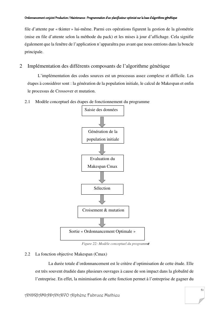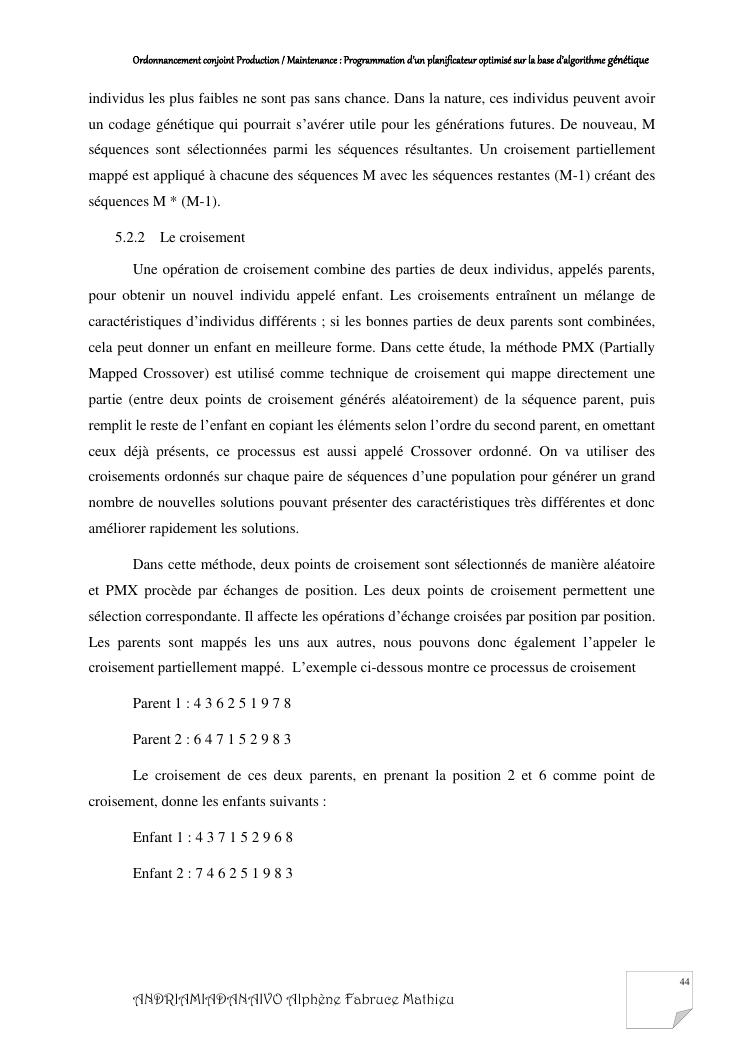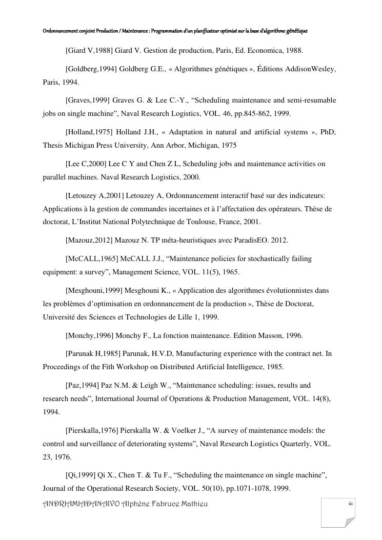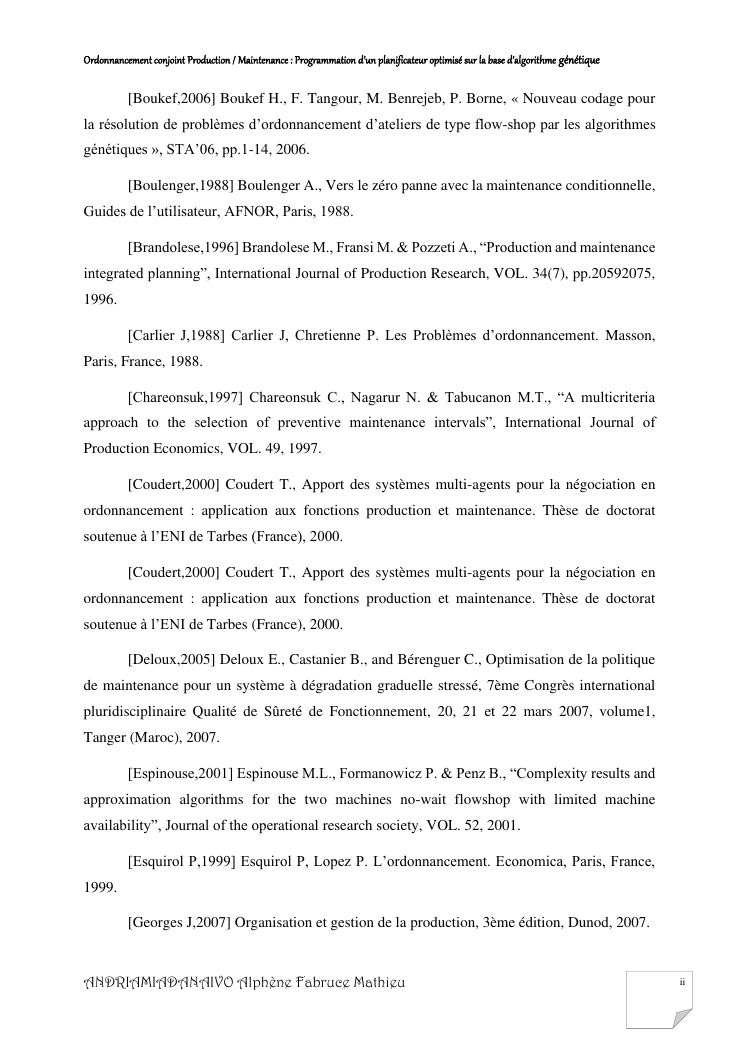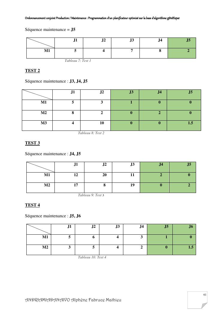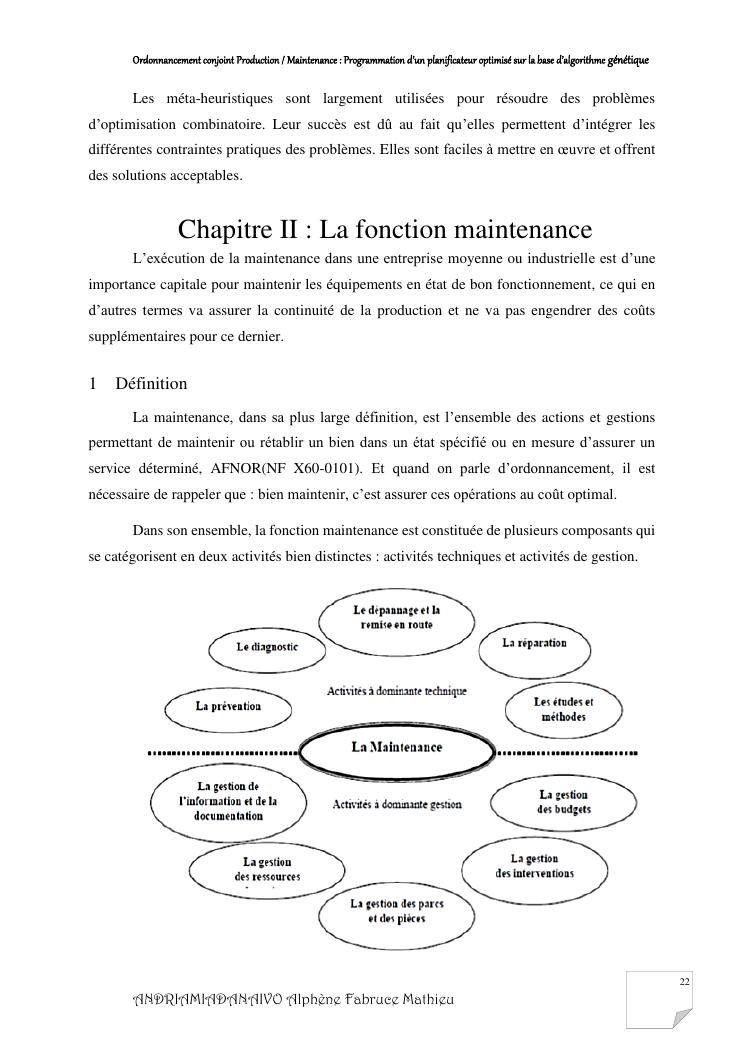 ordonnancement conjoint production / maintenance : programmation d'un planificateur optimisé sur la base d'algorithme génétique