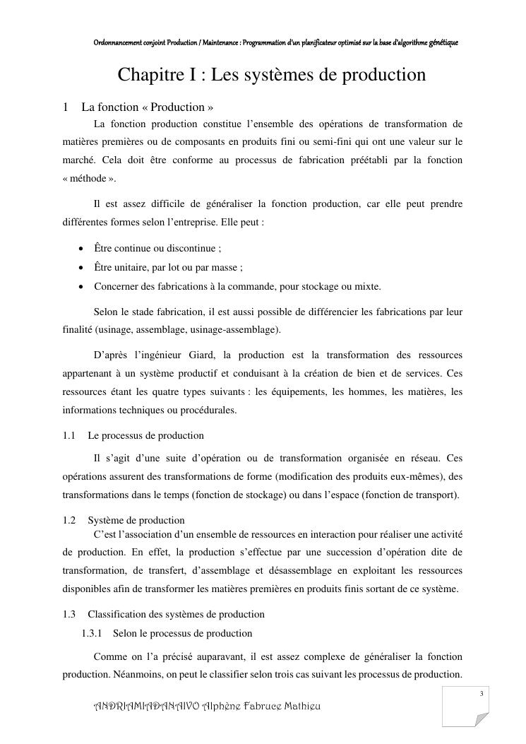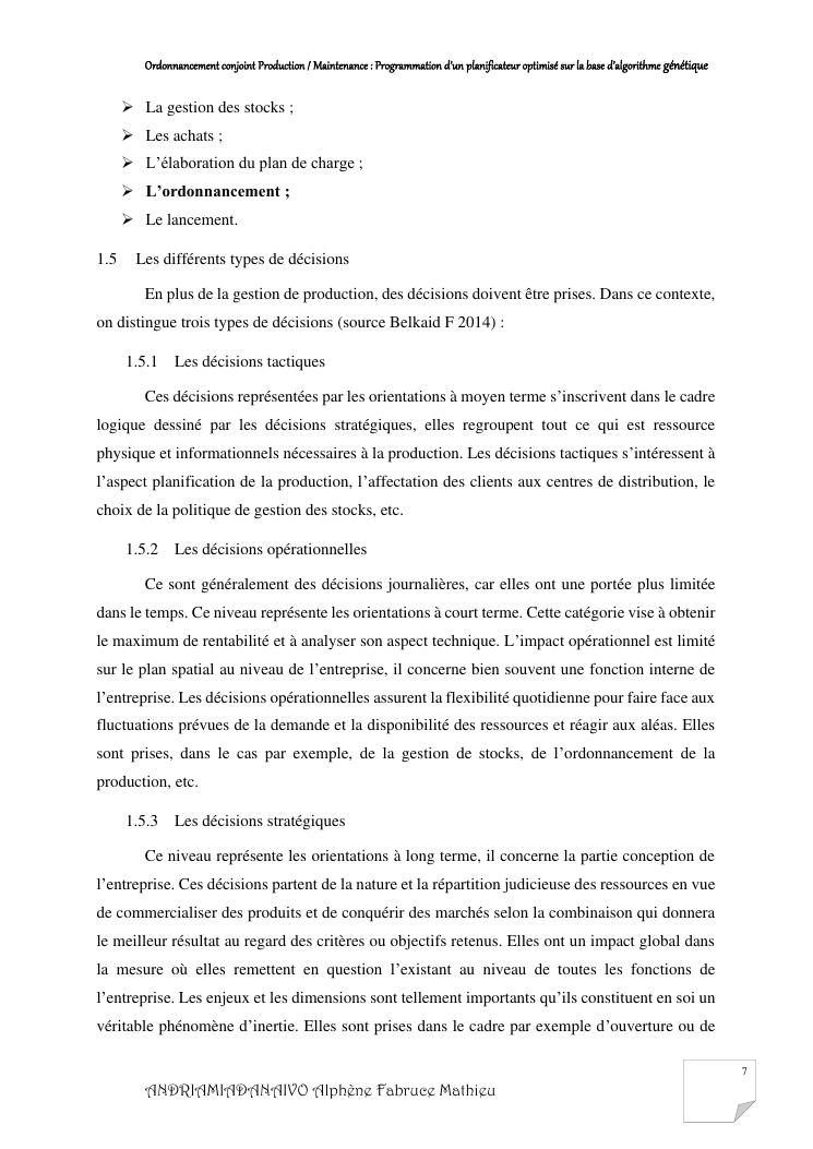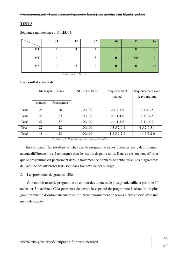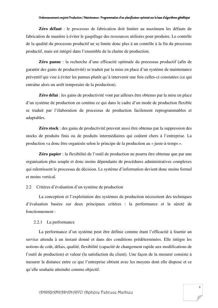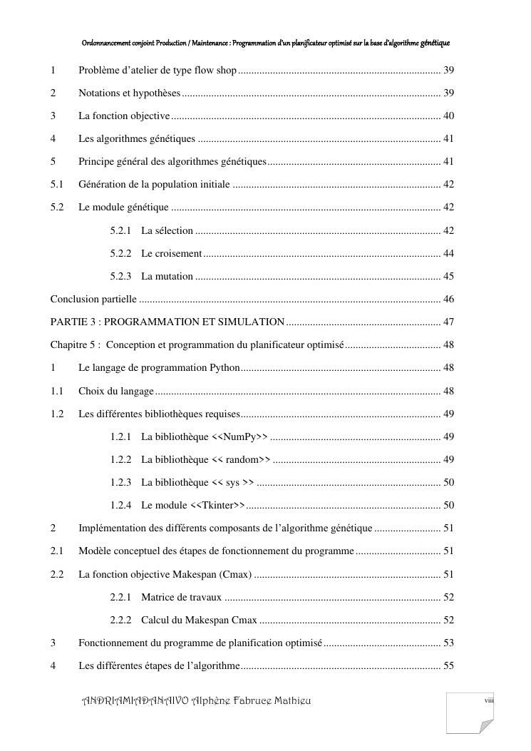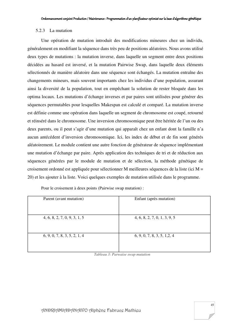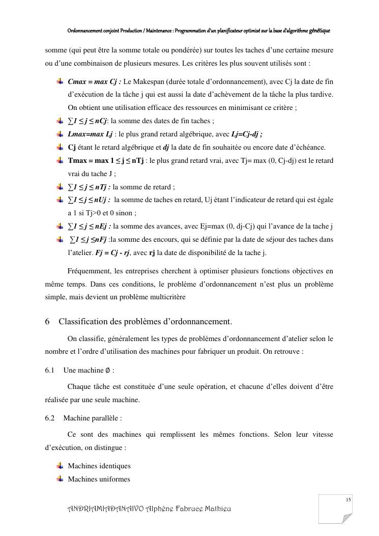 ordonnancement conjoint production / maintenance : programmation d'un planificateur optimisé sur la base d'algorithme génétique