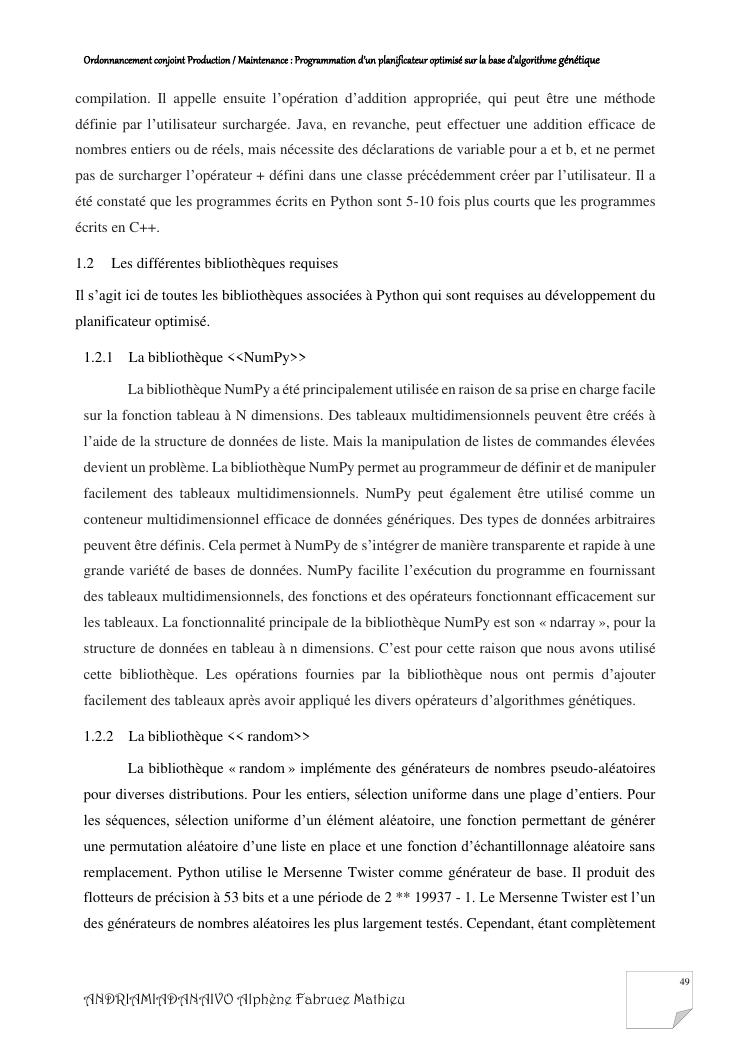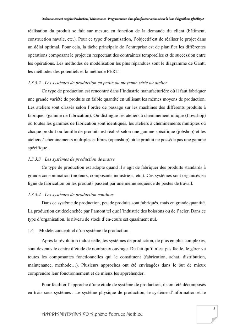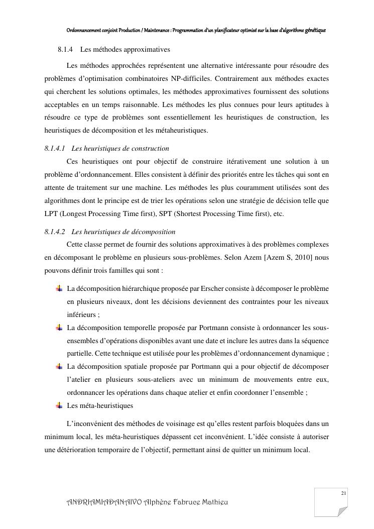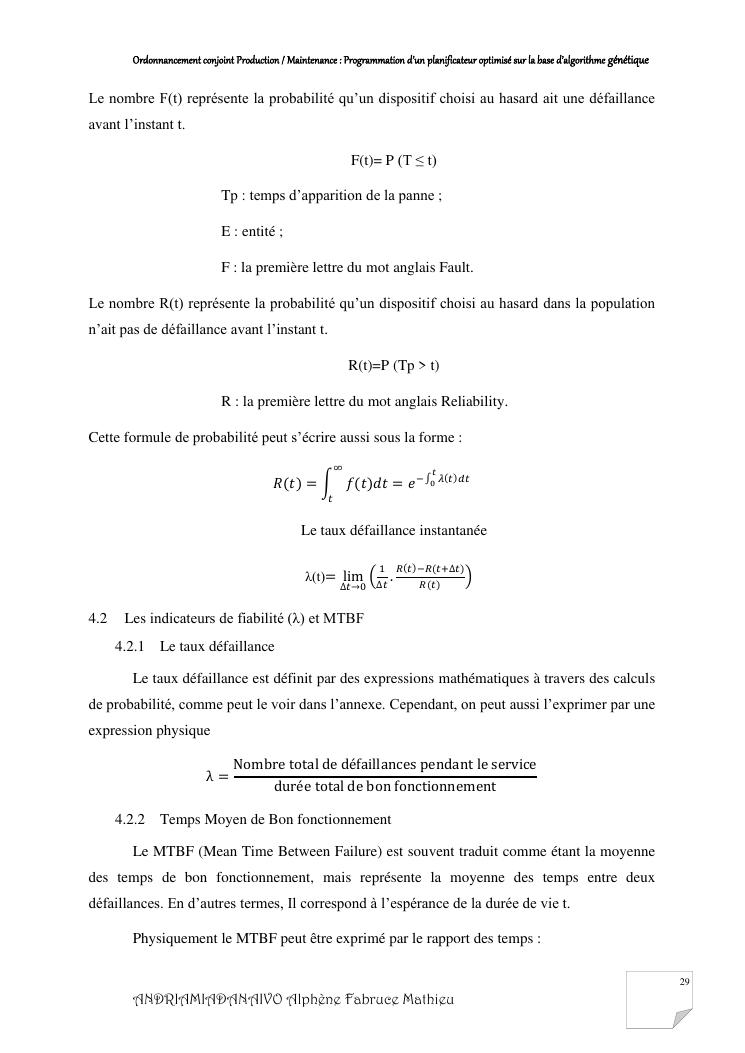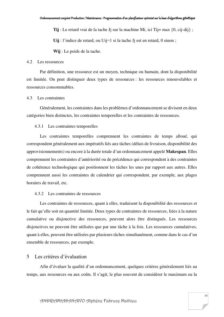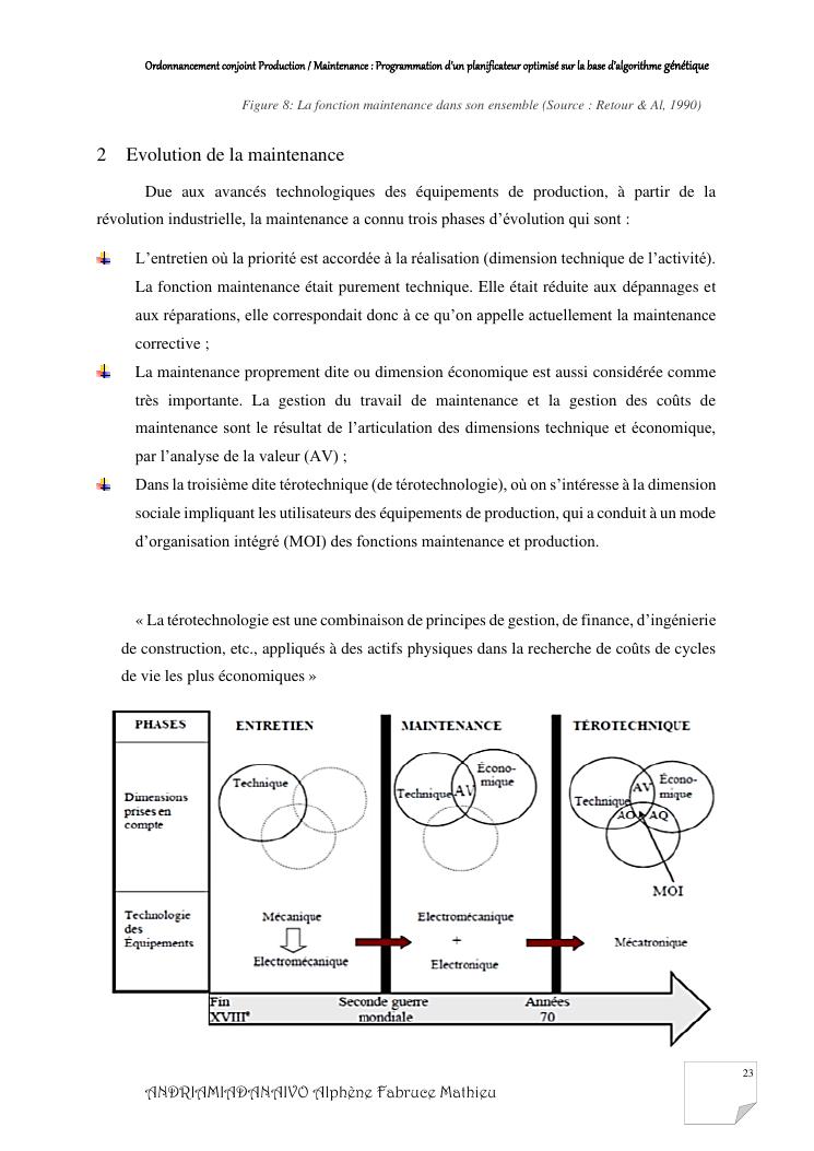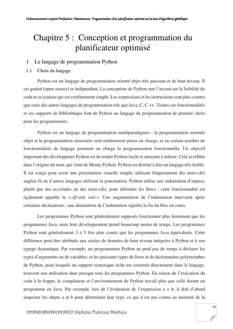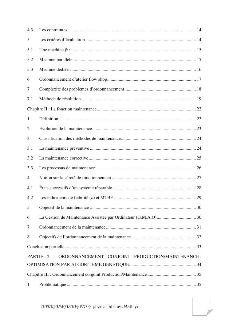 ordonnancement conjoint production / maintenance : programmation d'un planificateur optimisé sur la base d'algorithme génétique