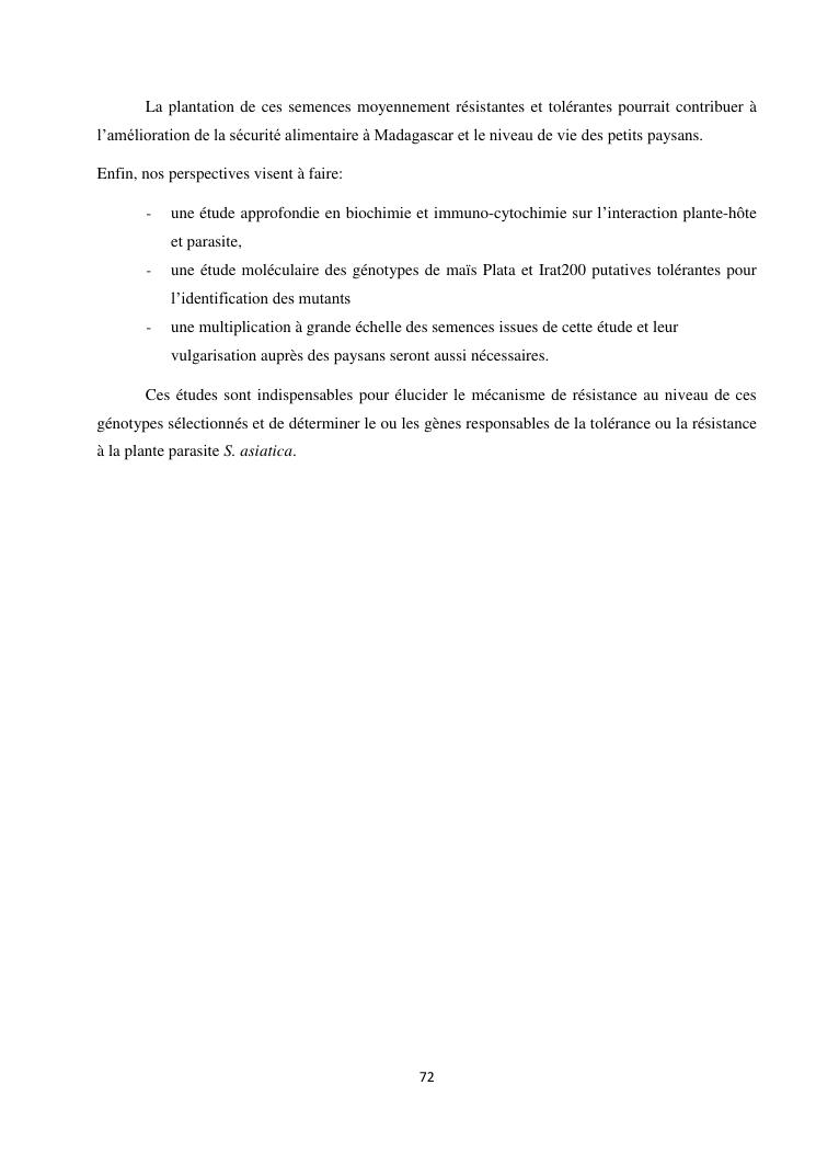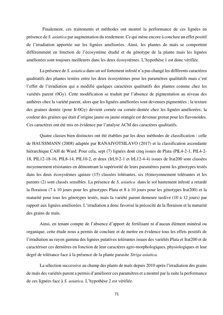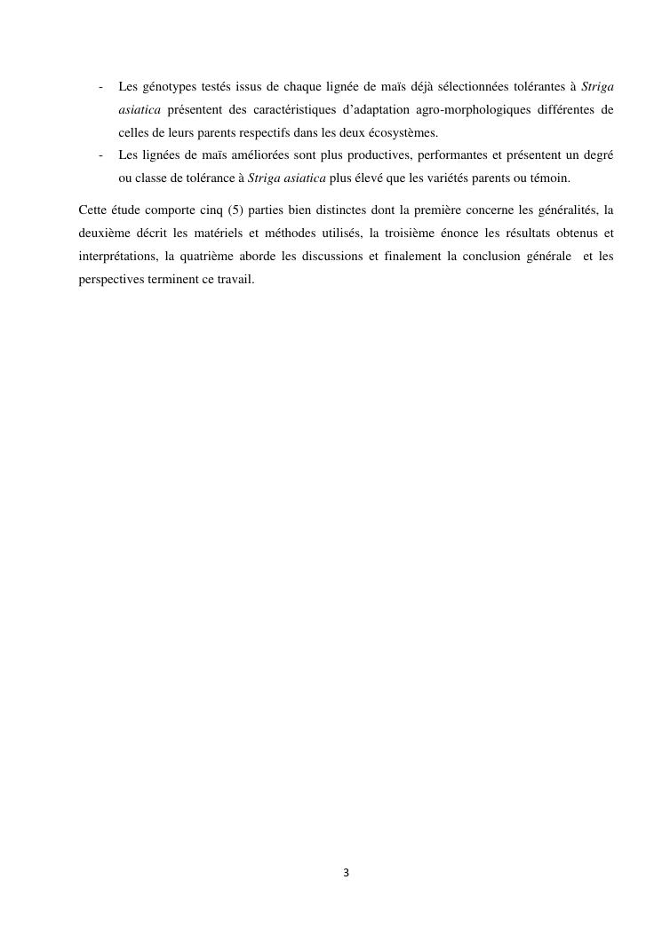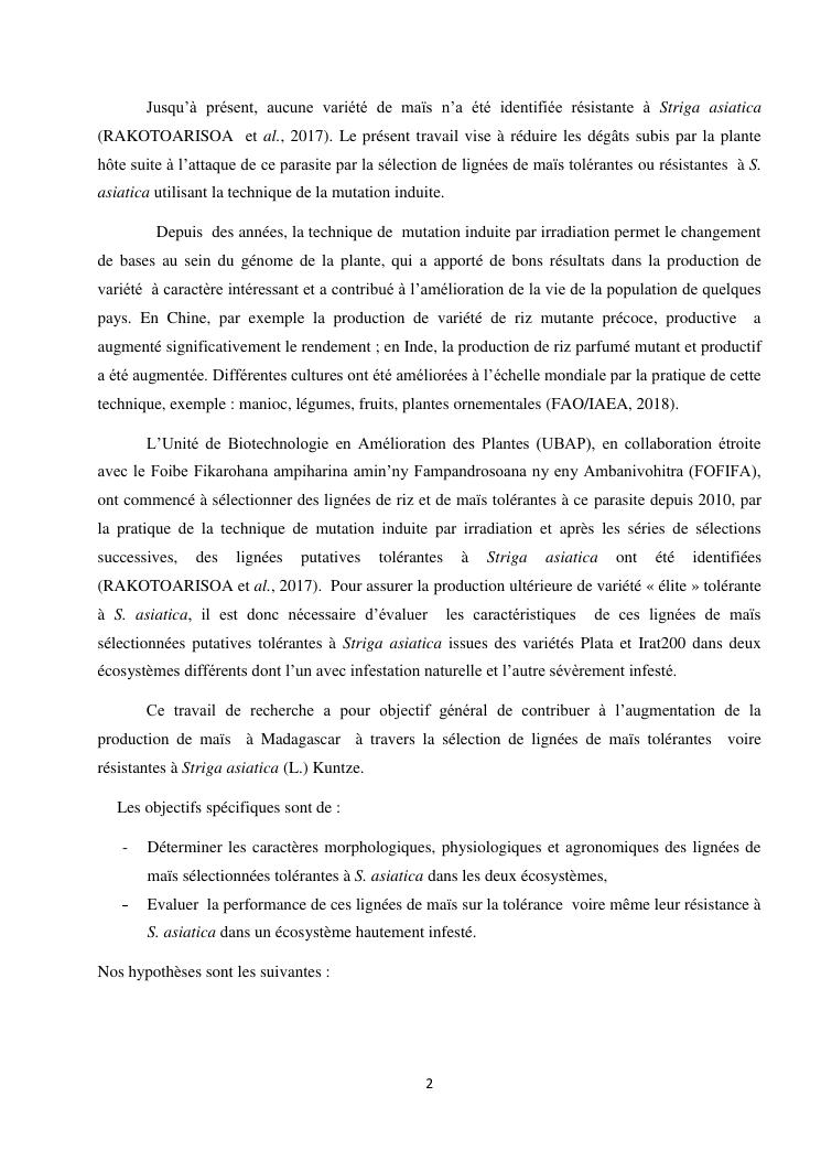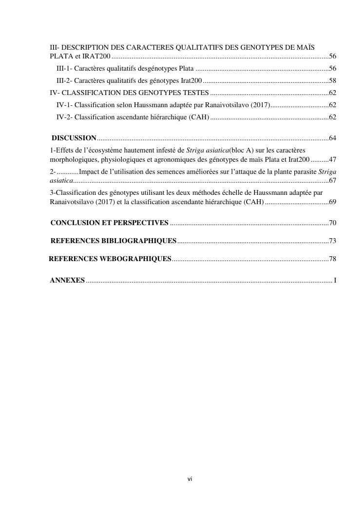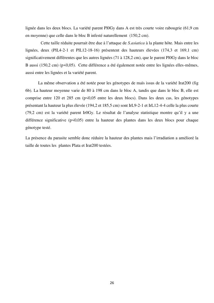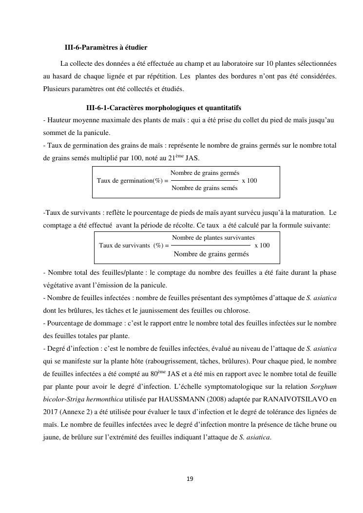 caracterisation et classification des lignees ameliorees de maïs (zea mays l.) irat200 et plata pour la tolerance à striga asiatica (l.) kuntze