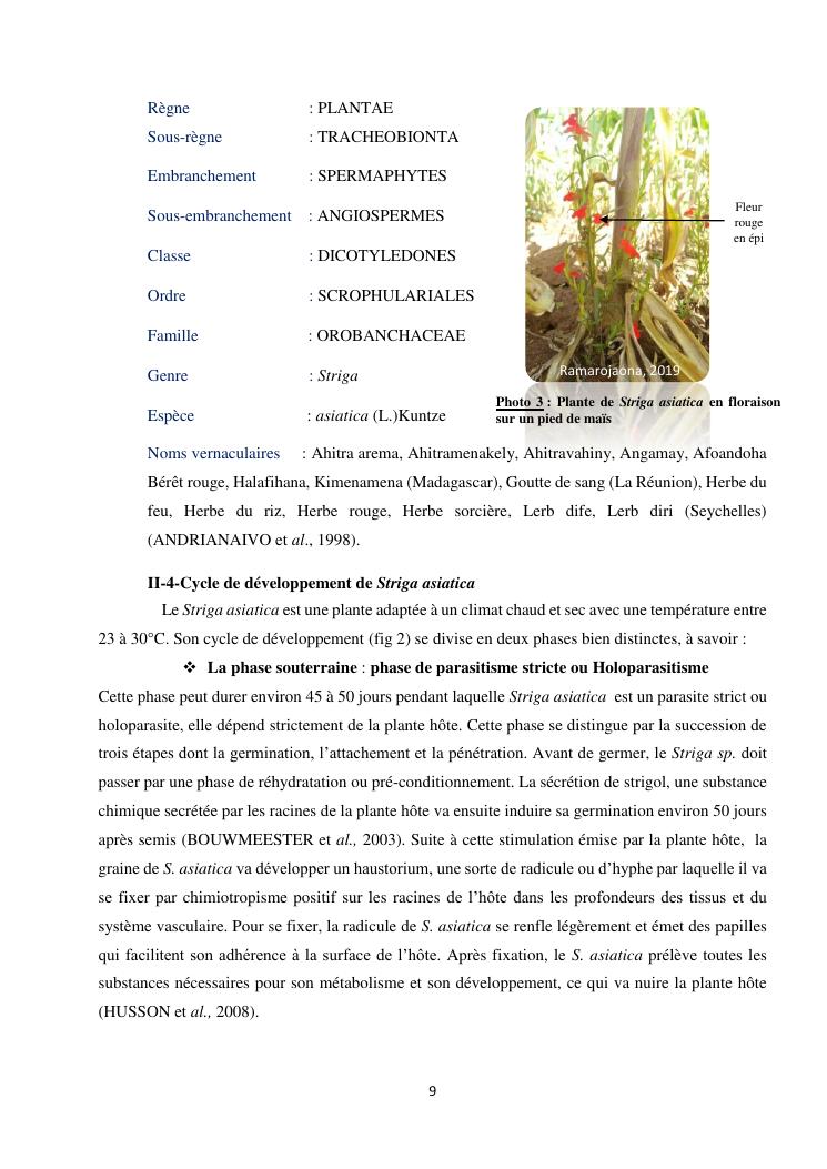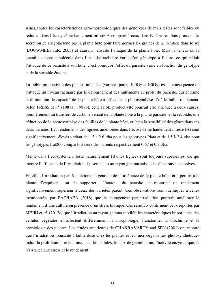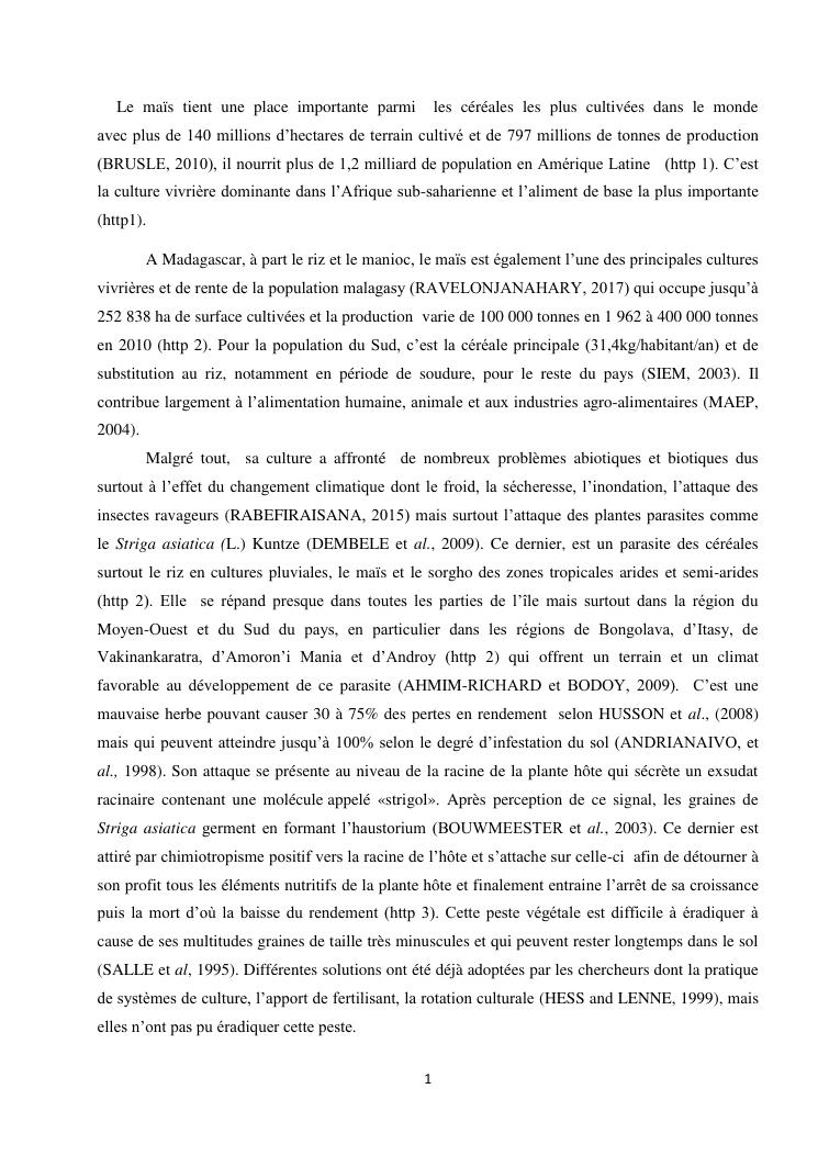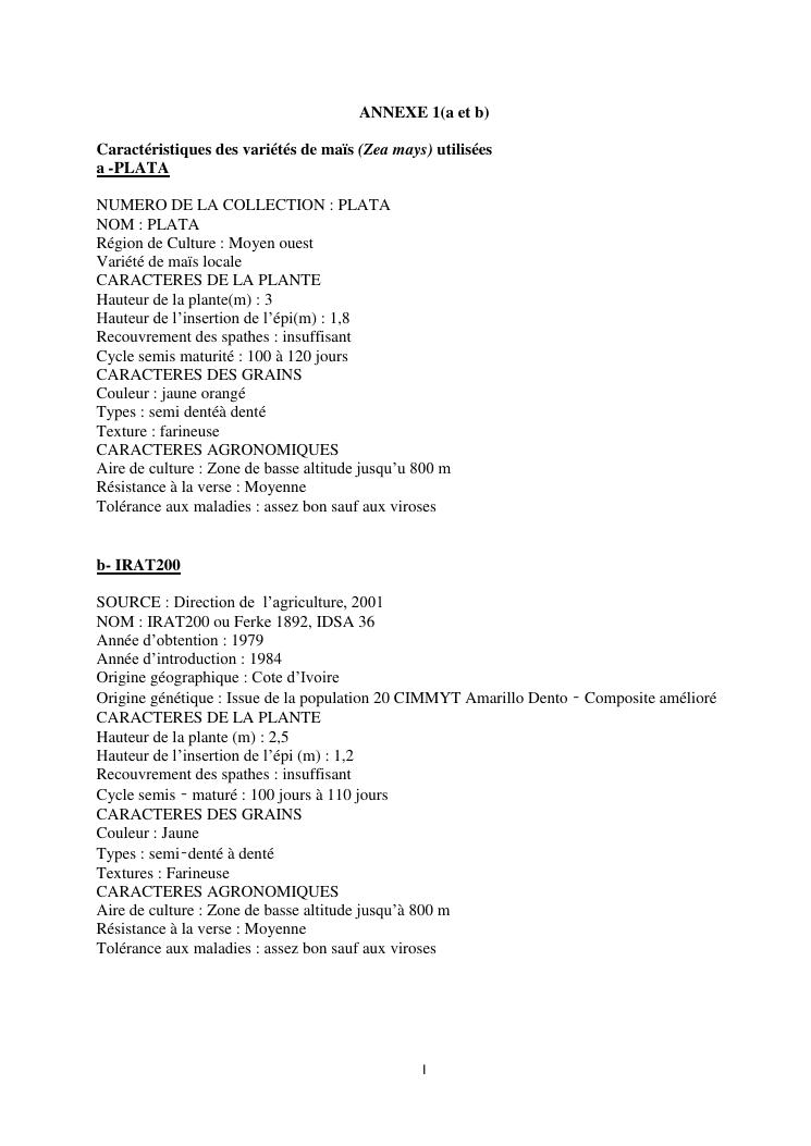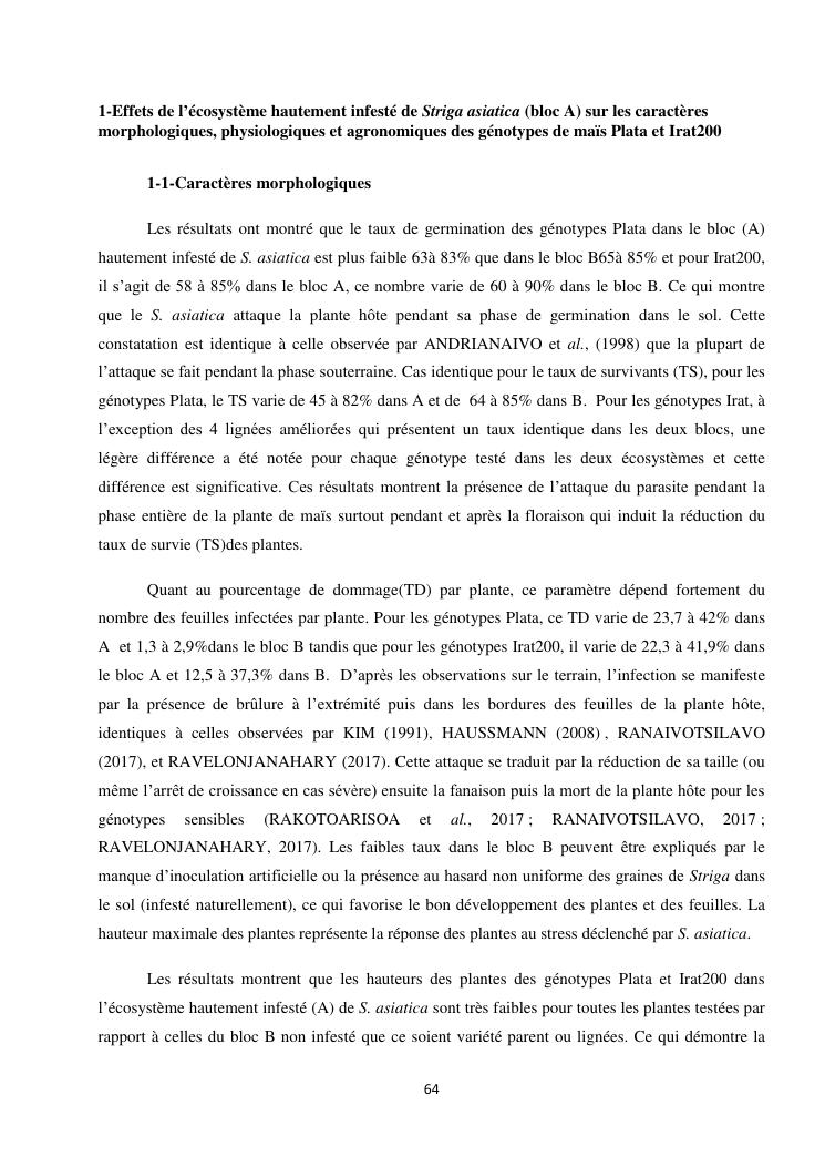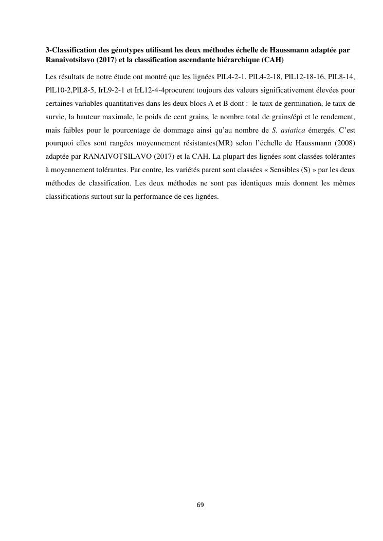 caracterisation et classification des lignees ameliorees de maïs (zea mays l.) irat200 et plata pour la tolerance à striga asiatica (l.) kuntze