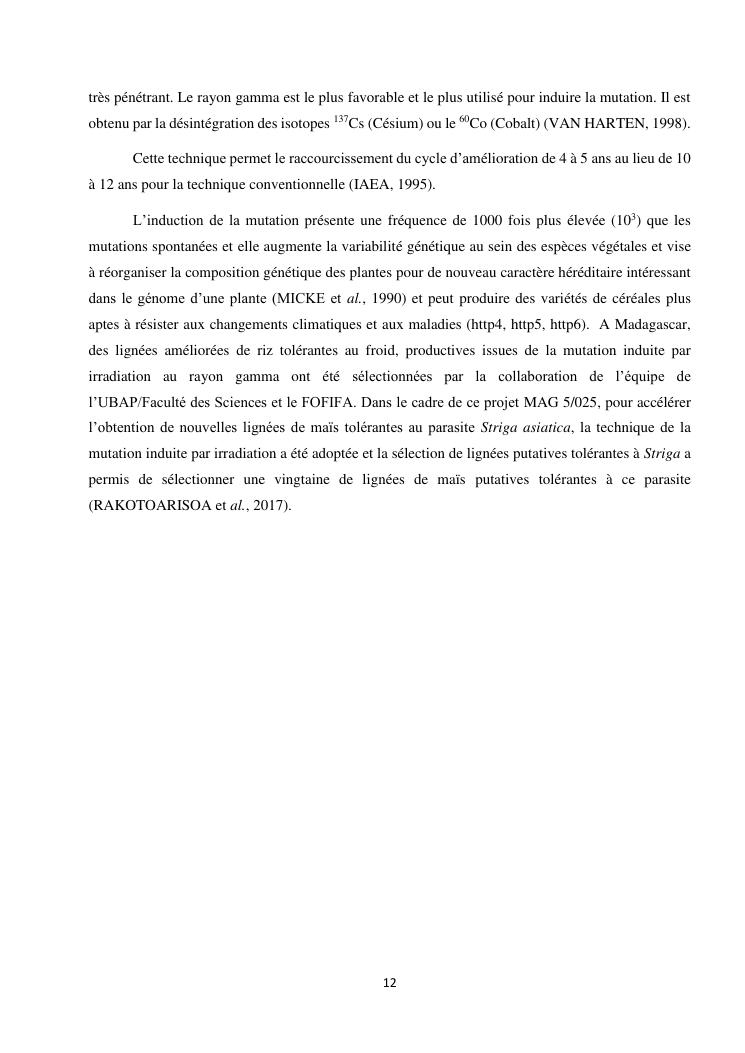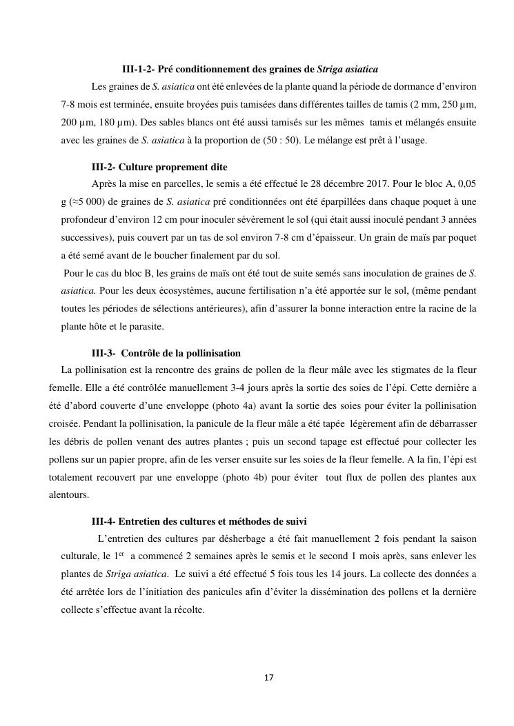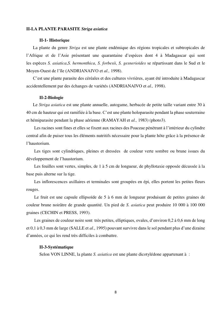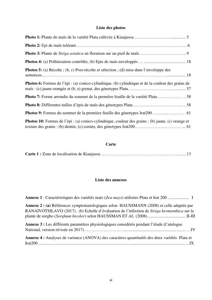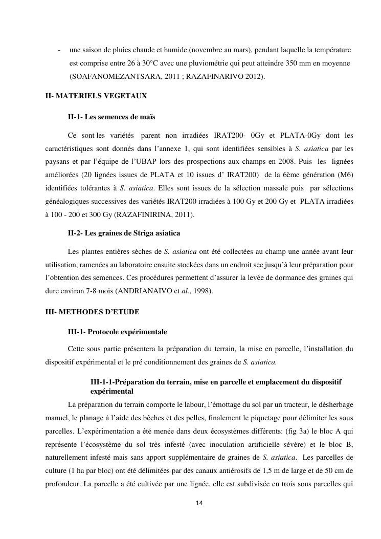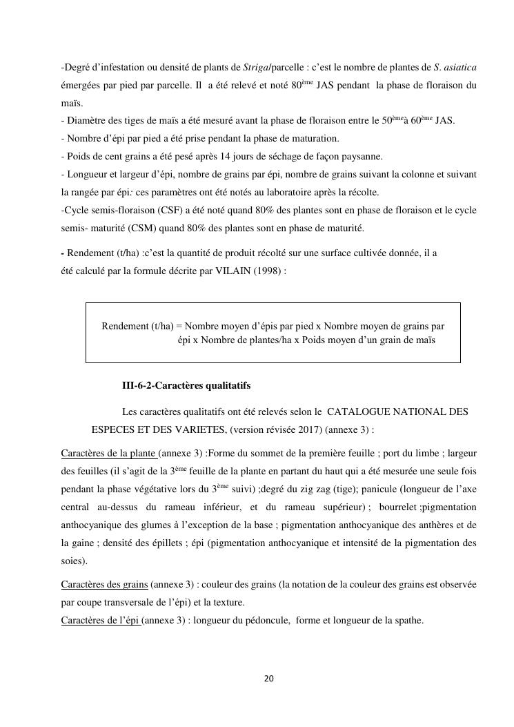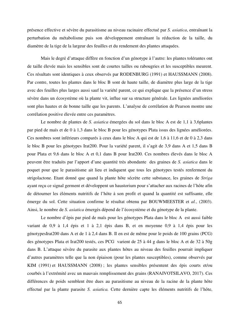 caracterisation et classification des lignees ameliorees de maïs (zea mays l.) irat200 et plata pour la tolerance à striga asiatica (l.) kuntze
