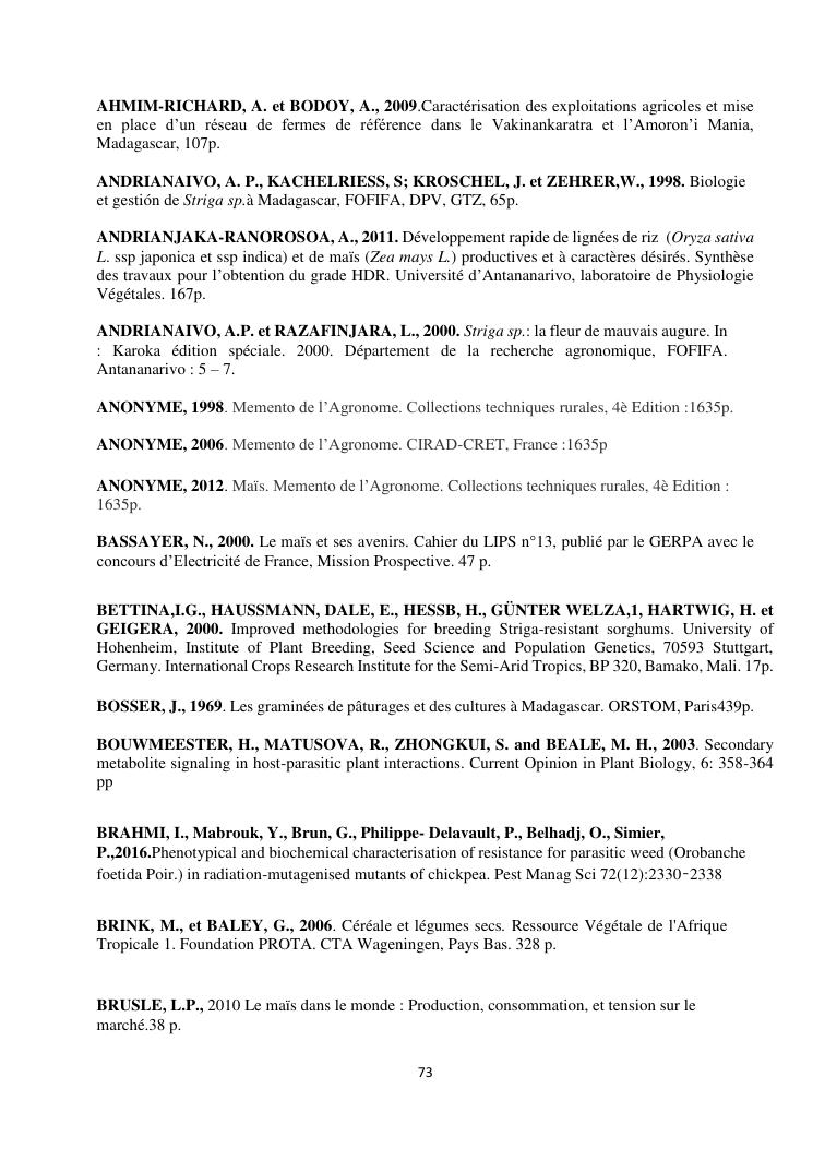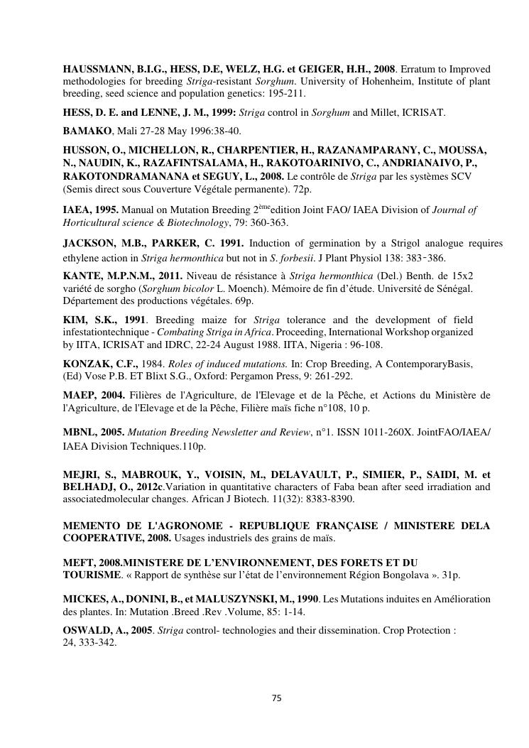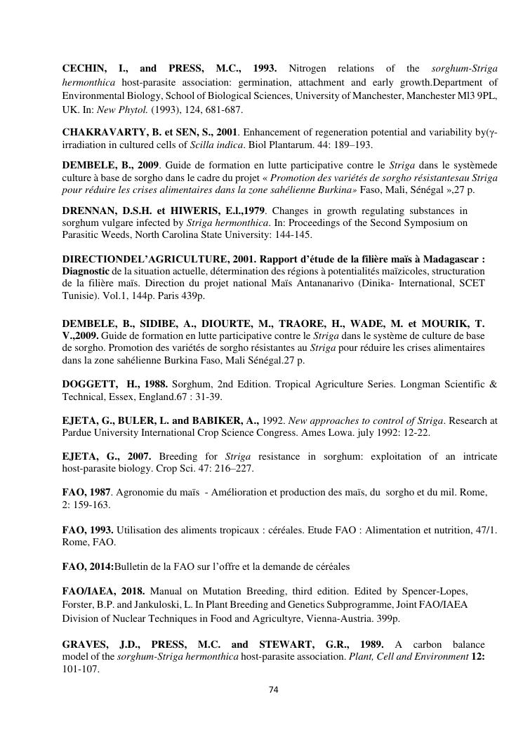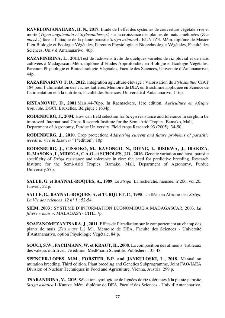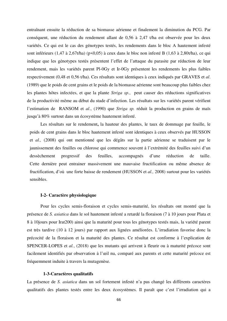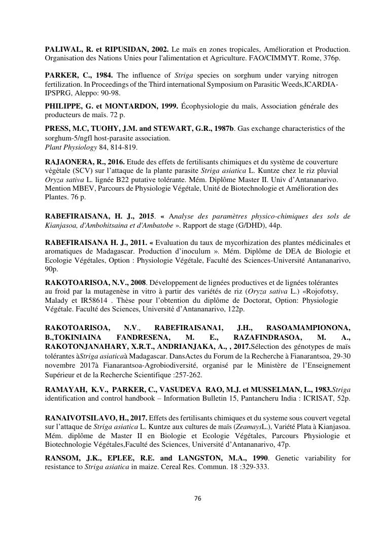 caracterisation et classification des lignees ameliorees de maïs (zea mays l.) irat200 et plata pour la tolerance à striga asiatica (l.) kuntze