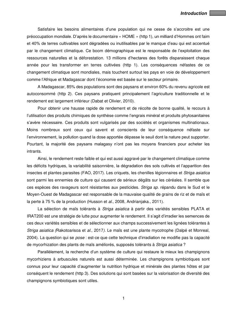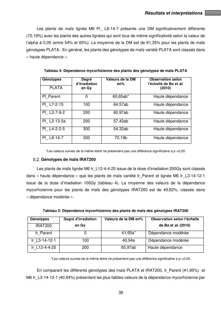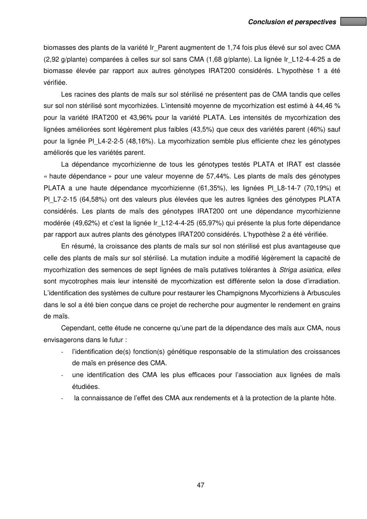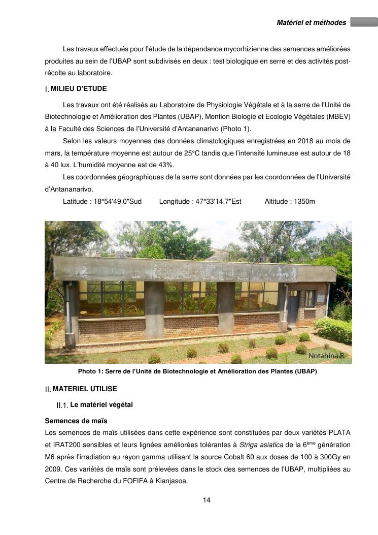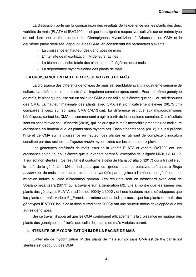 etude de la dépendance mycorhizienne de sept lignées de maïs (zea mays l.) putatives tolérantes à striga asiatica (l.) kuntze et de leurs variétés parents plata et irat200