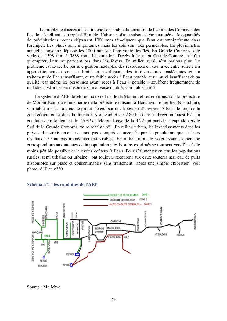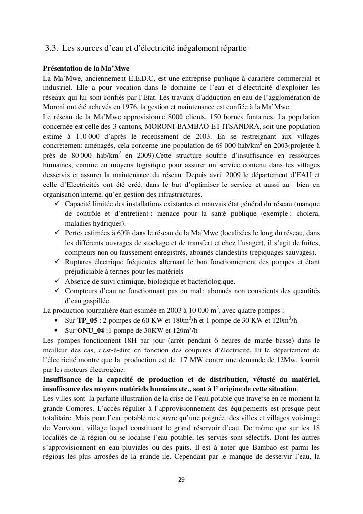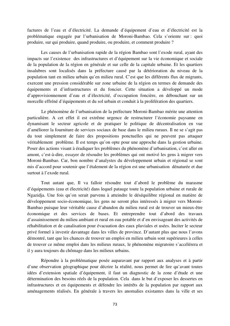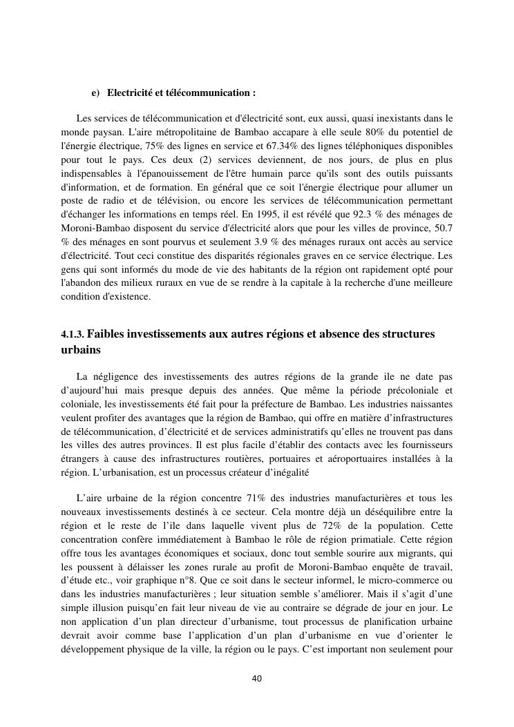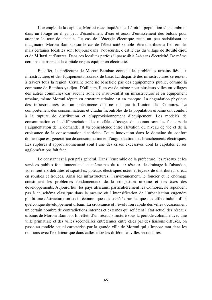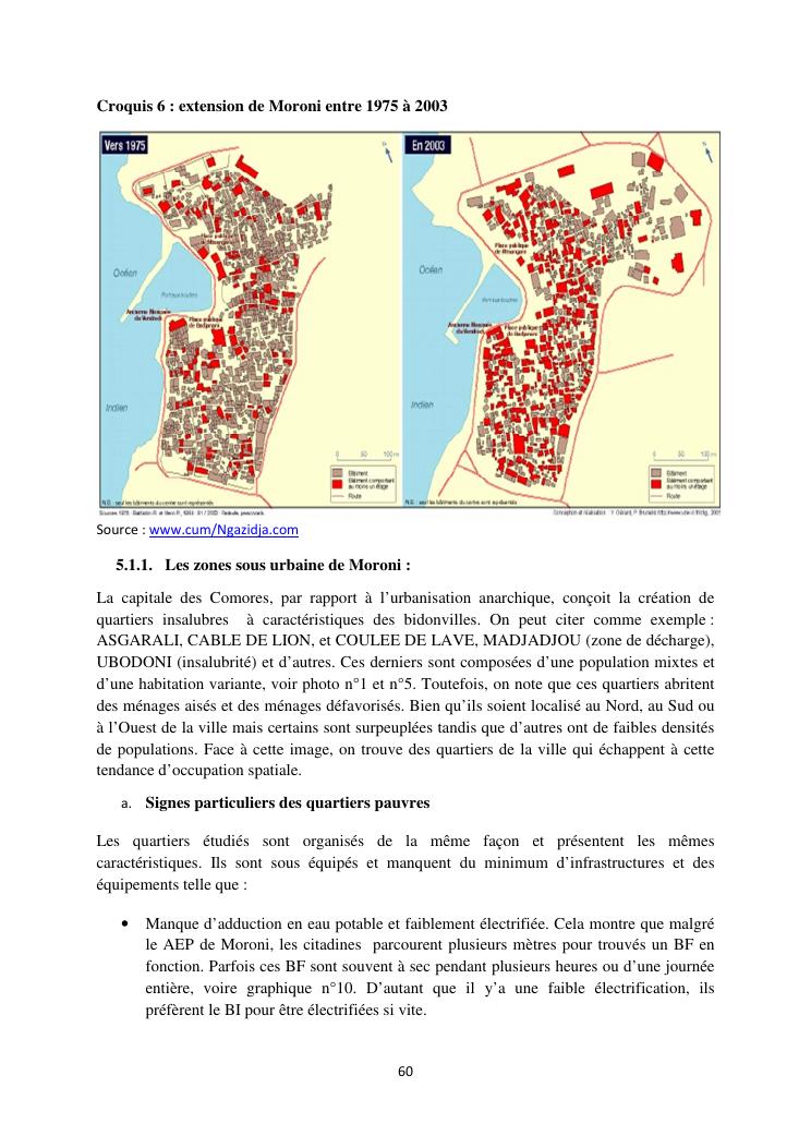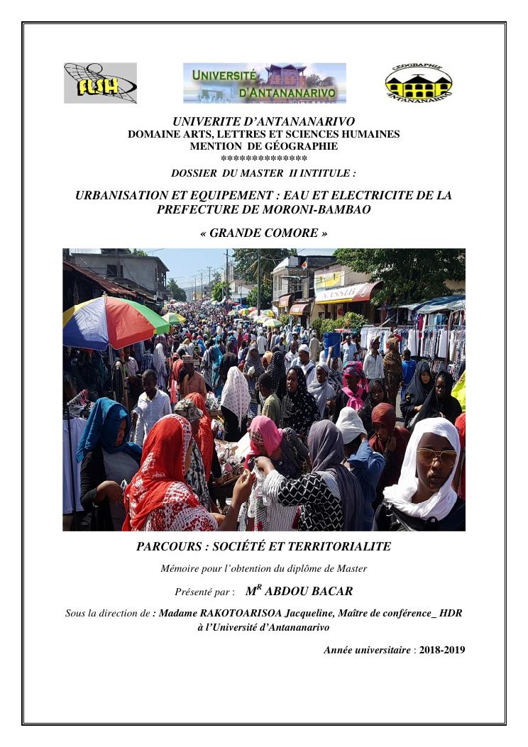 urbanisation et equipement : eau et electricite de la prefecture de moroni-bambao « grande comore »