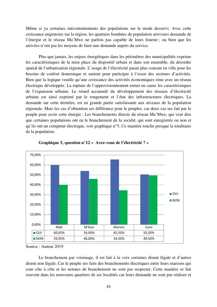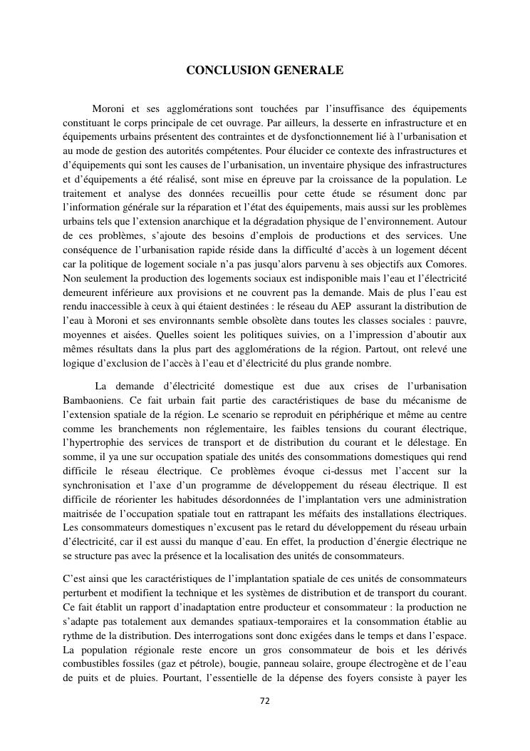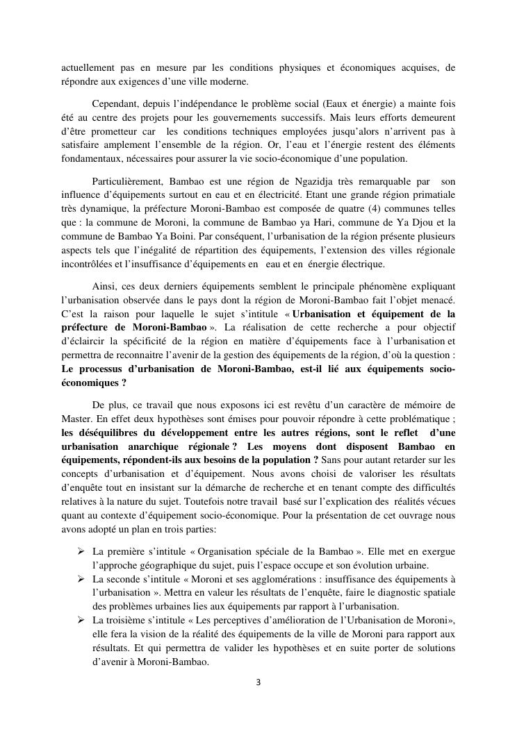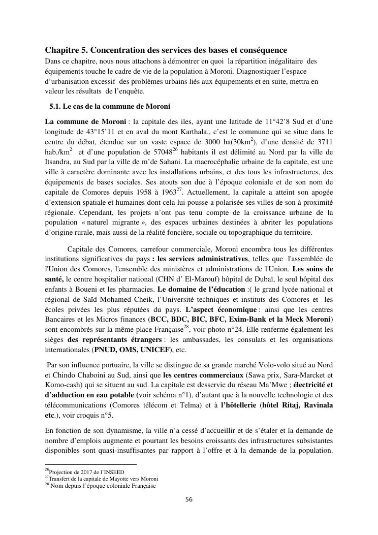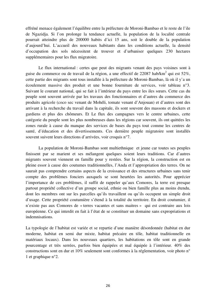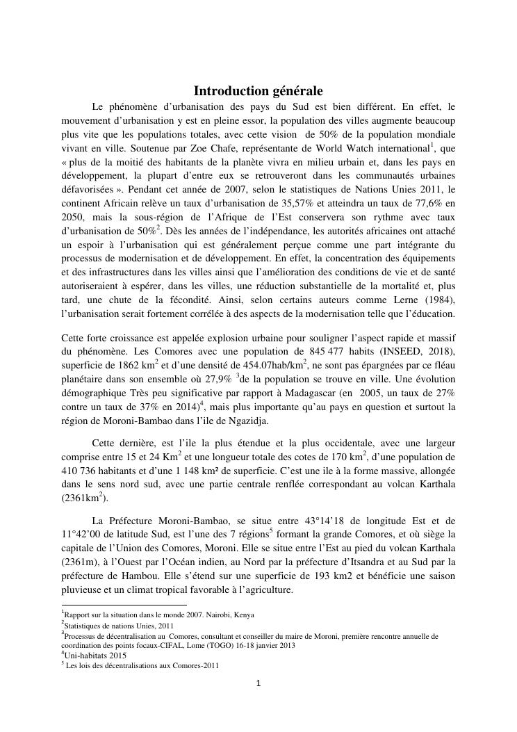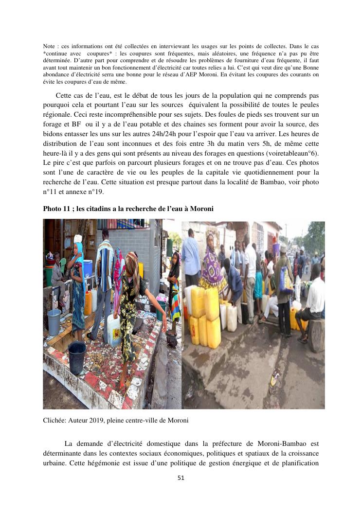 urbanisation et equipement : eau et electricite de la prefecture de moroni-bambao « grande comore »