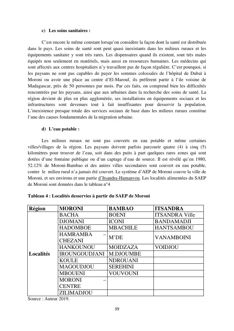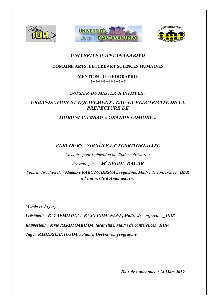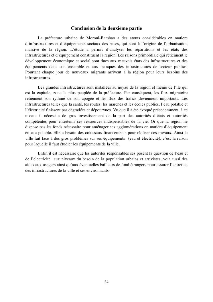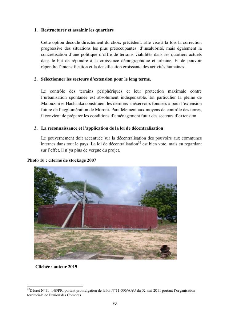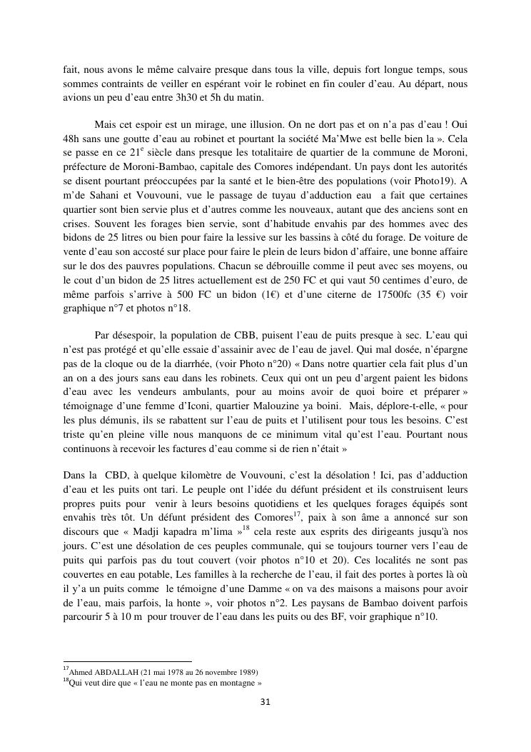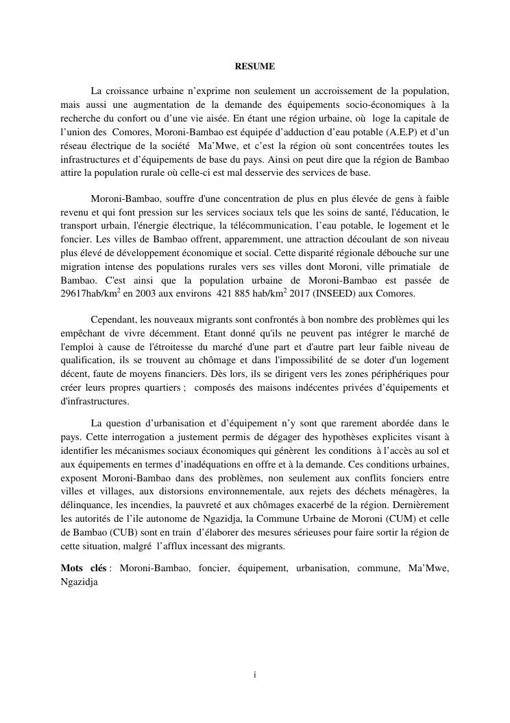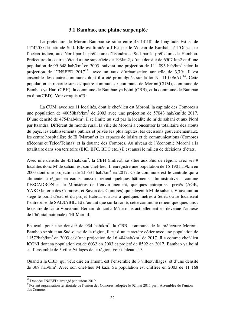 urbanisation et equipement : eau et electricite de la prefecture de moroni-bambao « grande comore »
