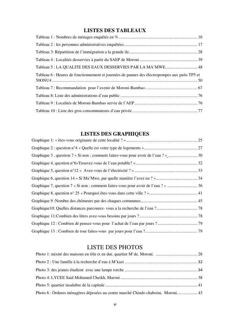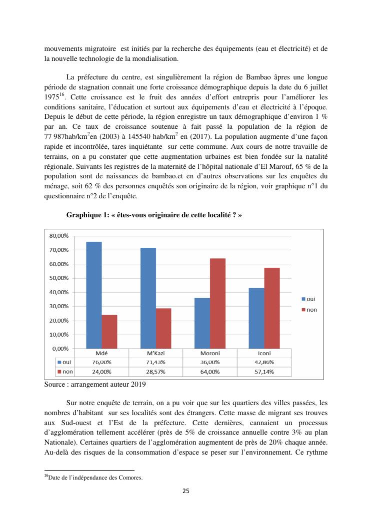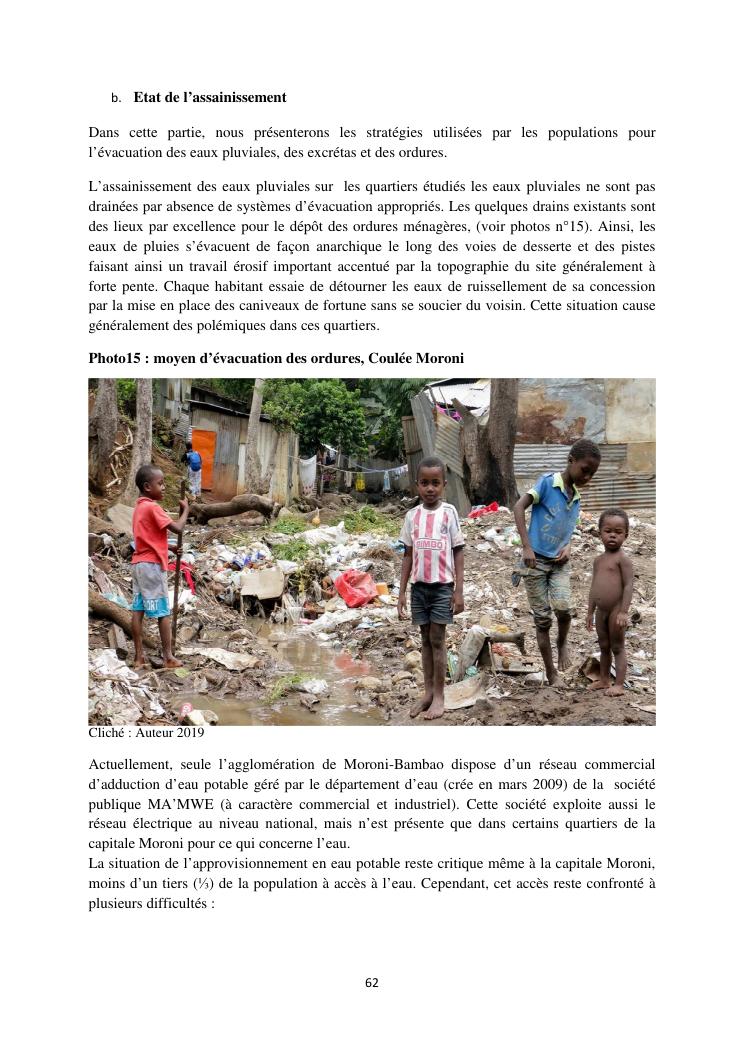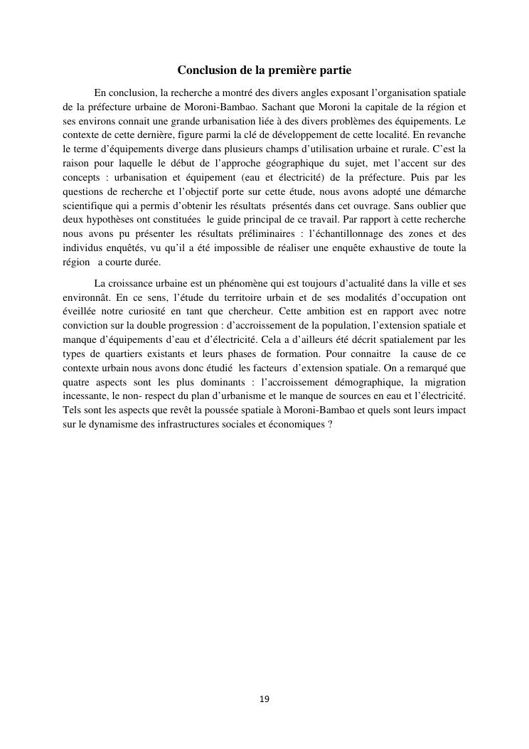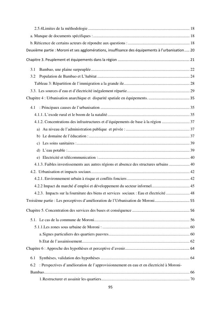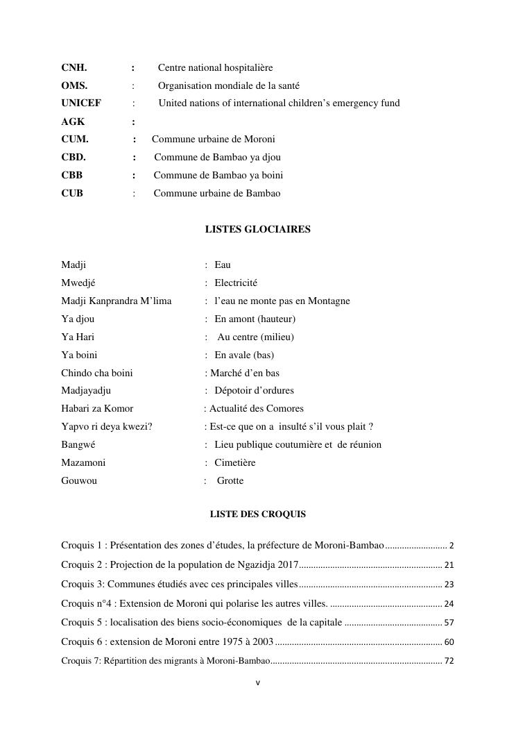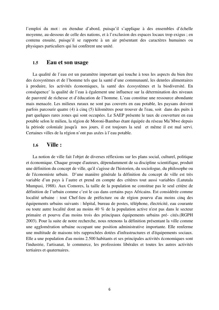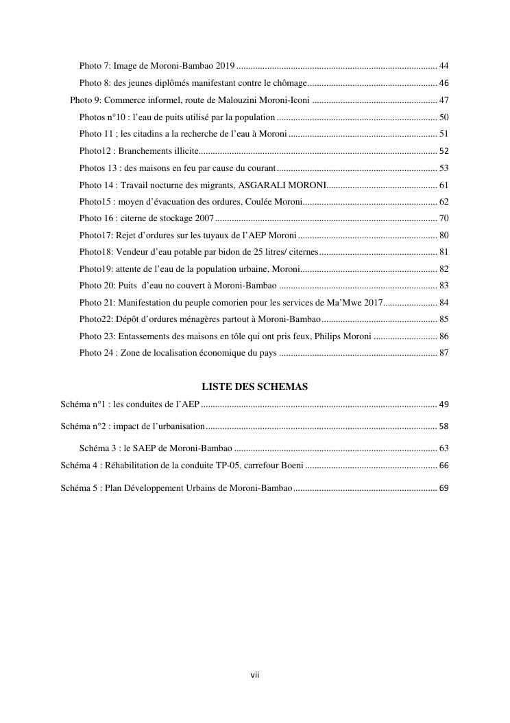 urbanisation et equipement : eau et electricite de la prefecture de moroni-bambao « grande comore »