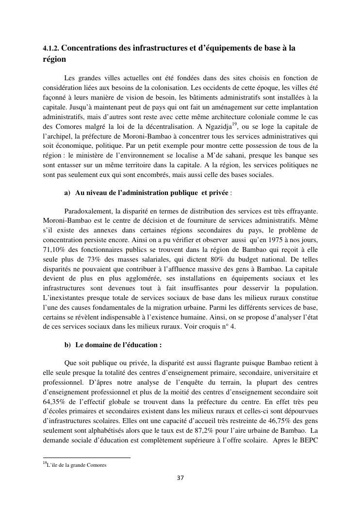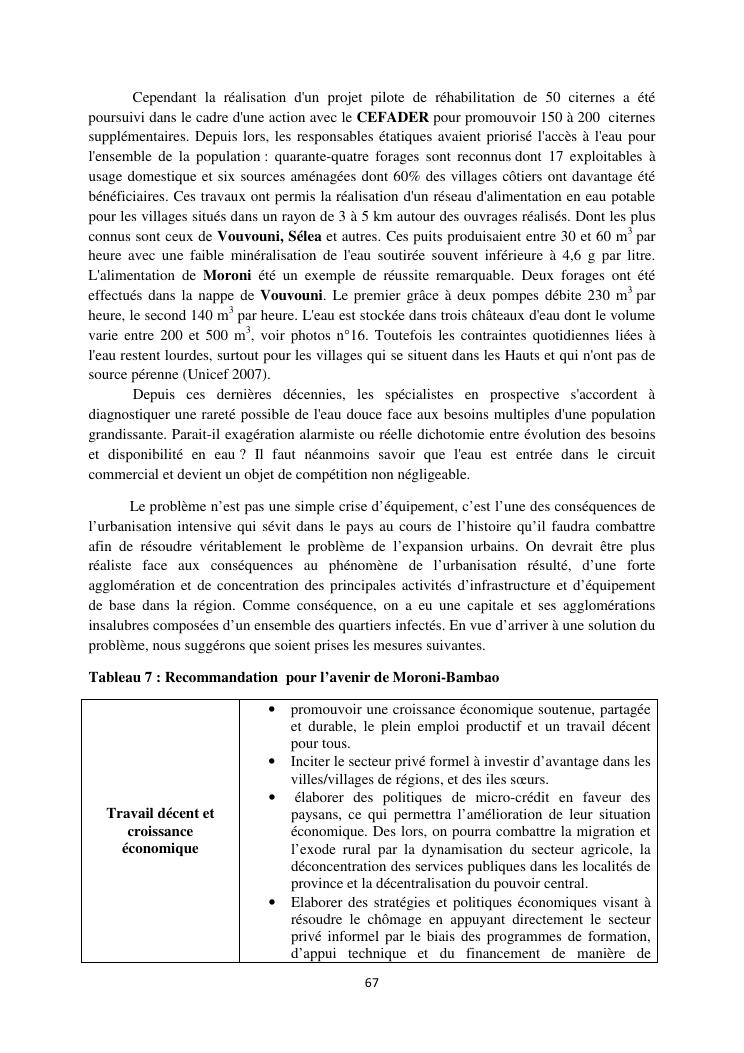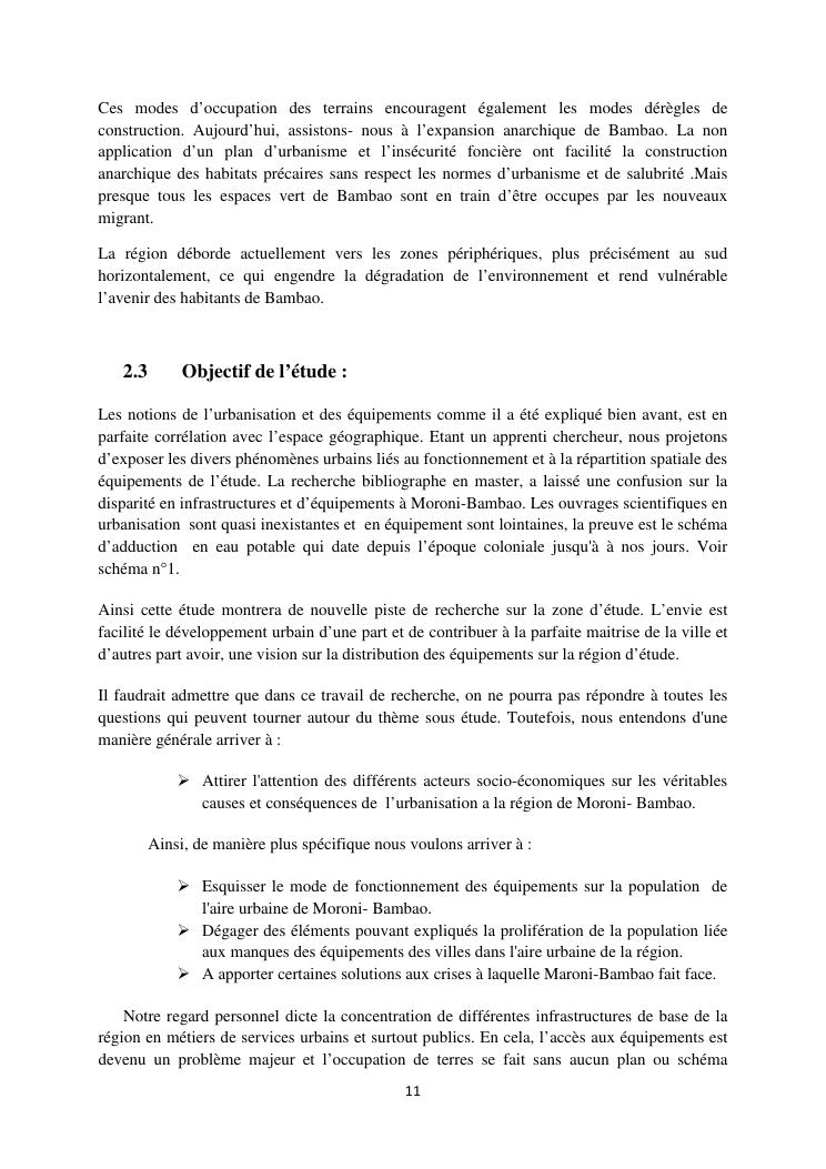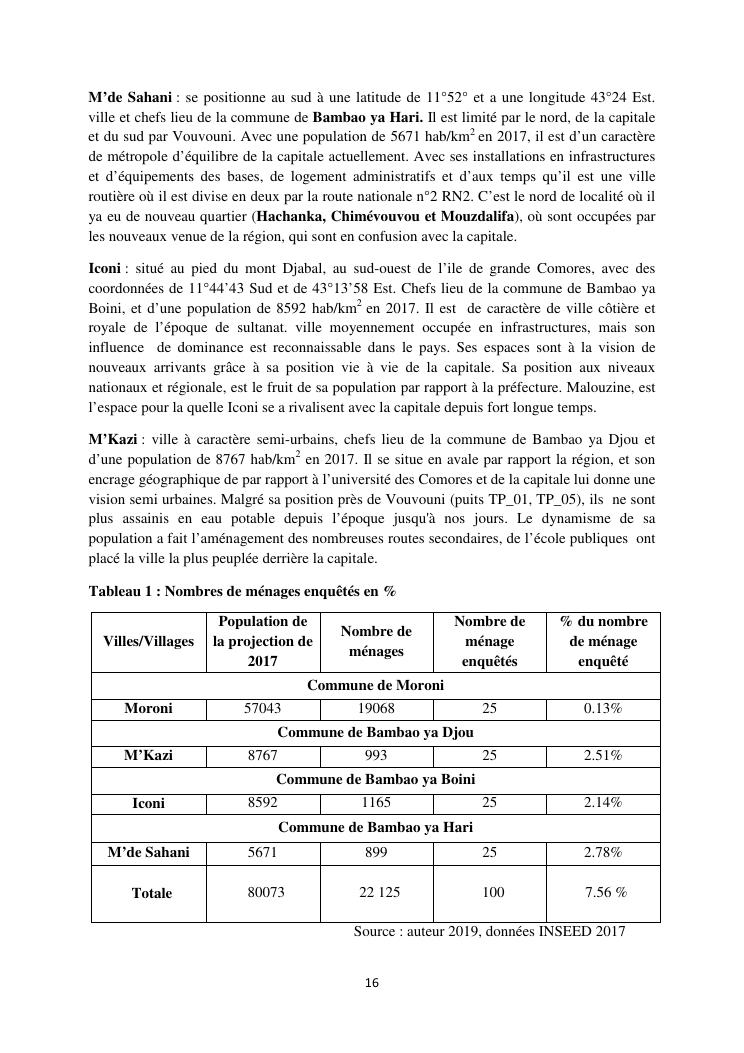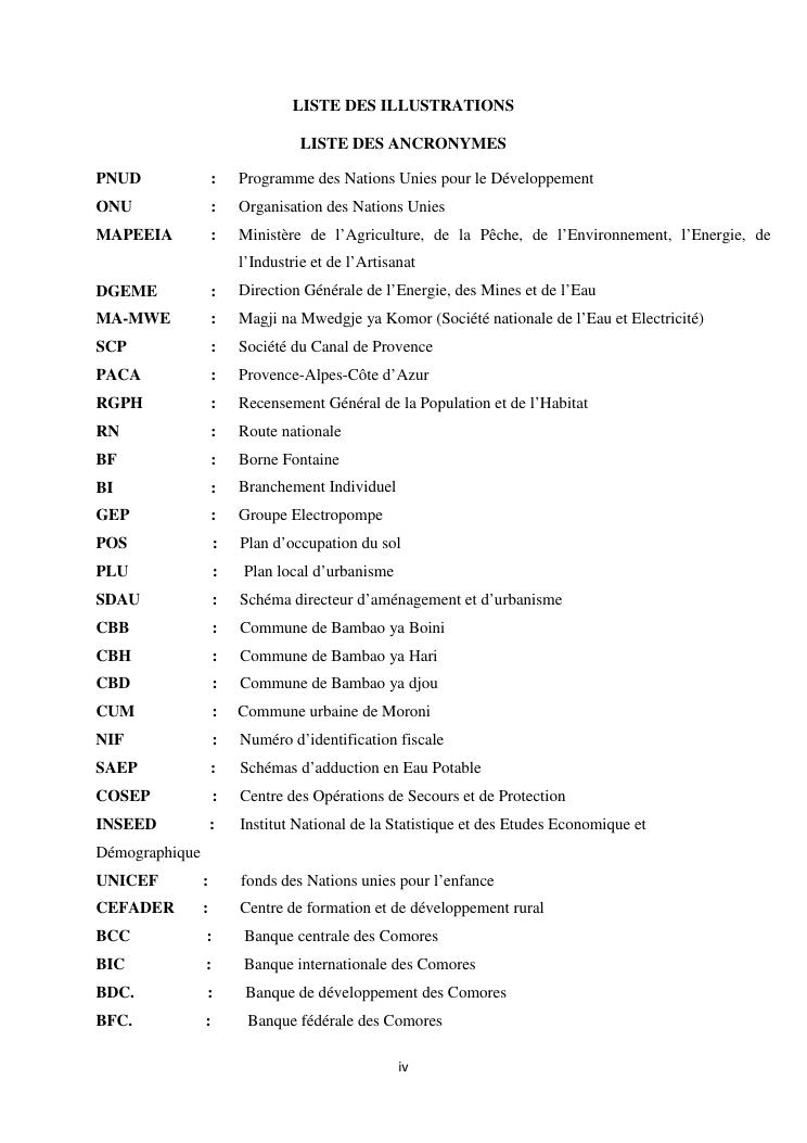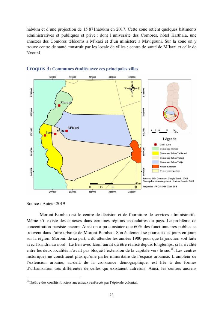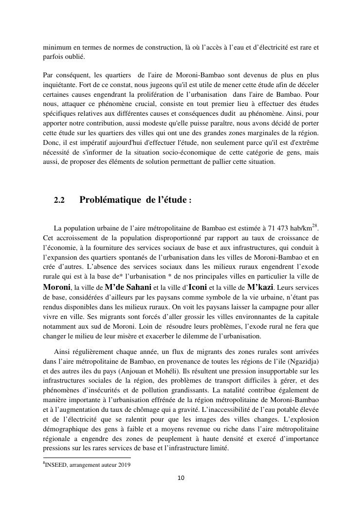 urbanisation et equipement : eau et electricite de la prefecture de moroni-bambao « grande comore »
