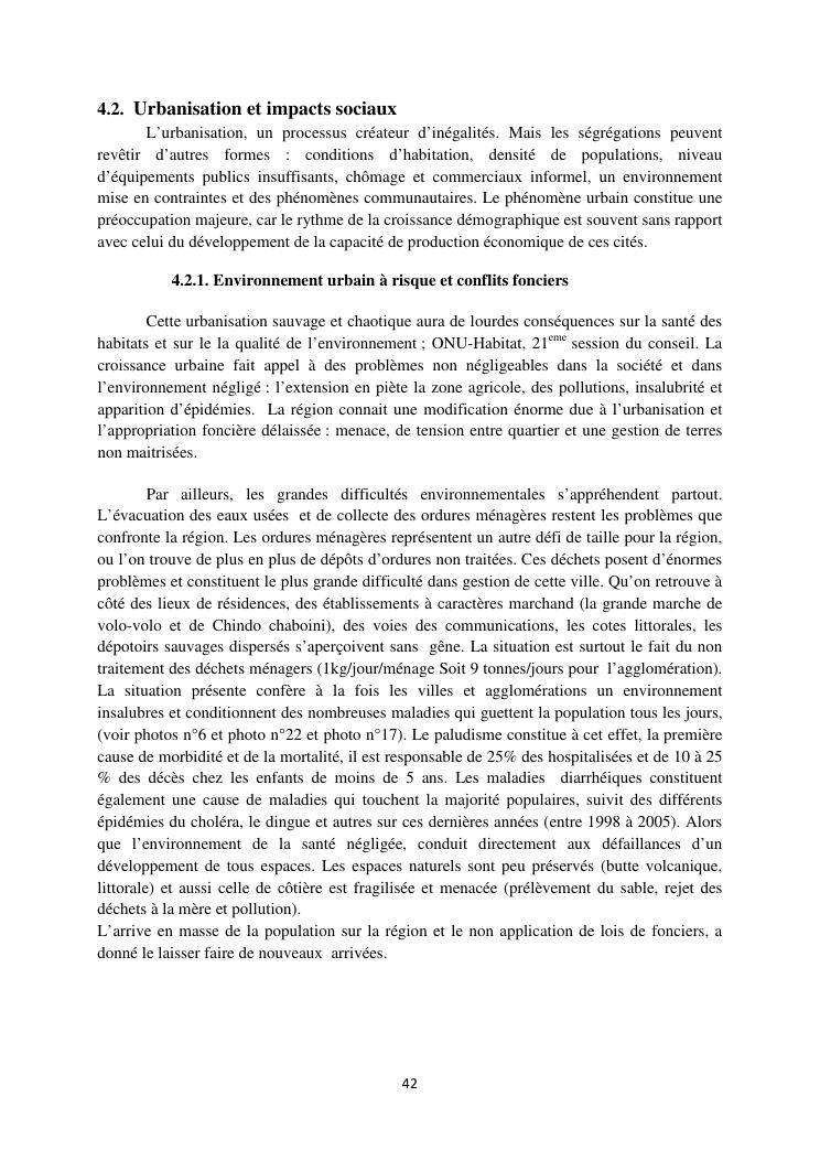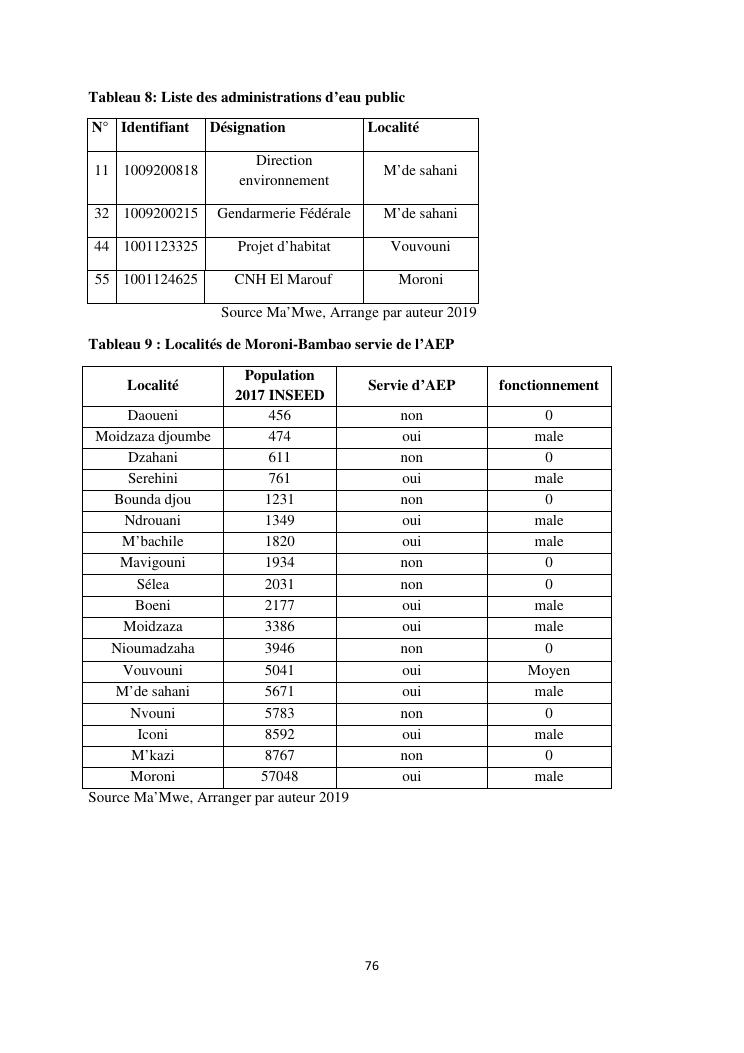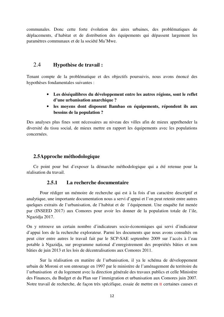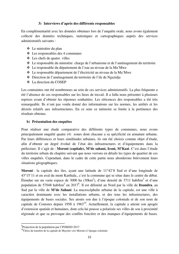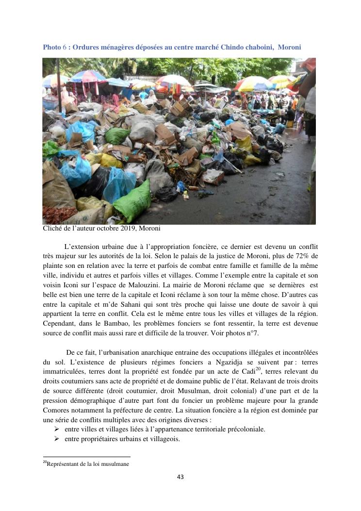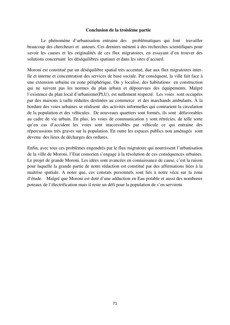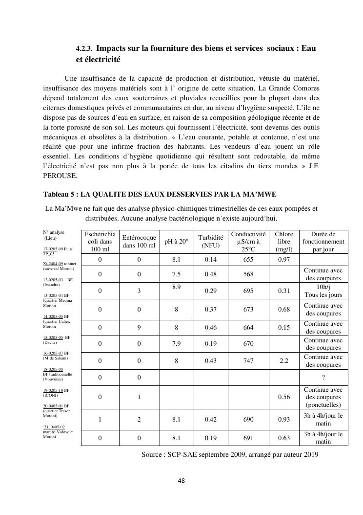 urbanisation et equipement : eau et electricite de la prefecture de moroni-bambao « grande comore »