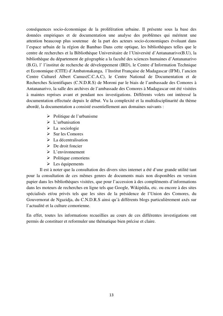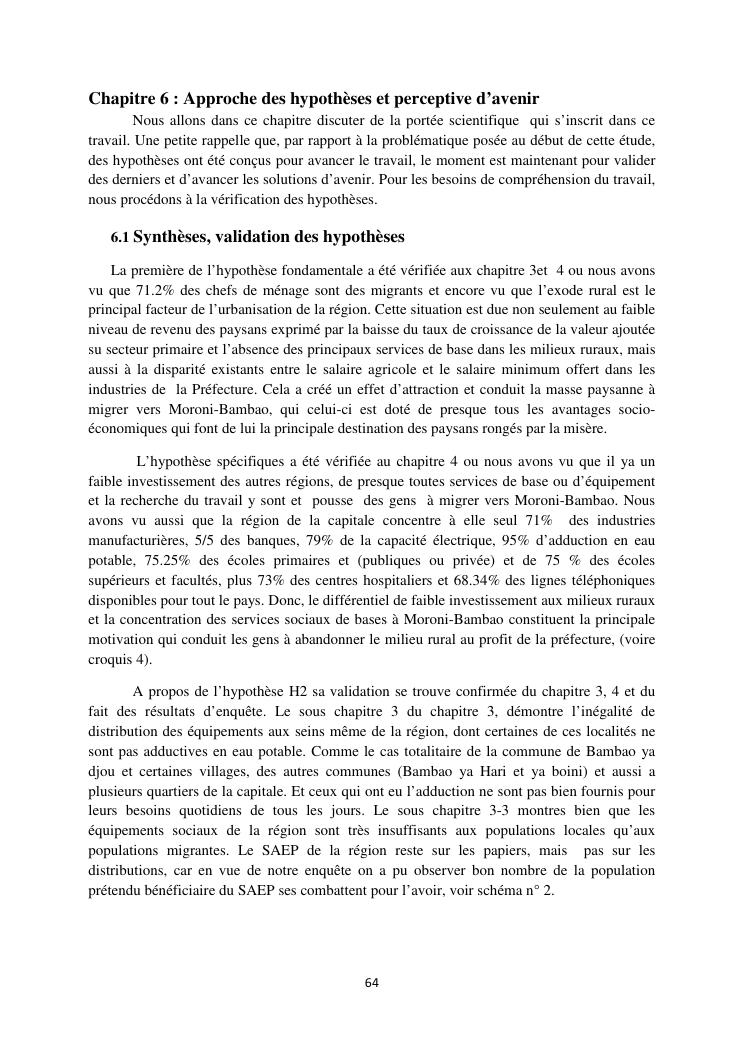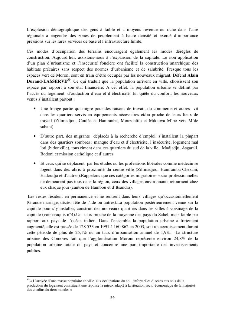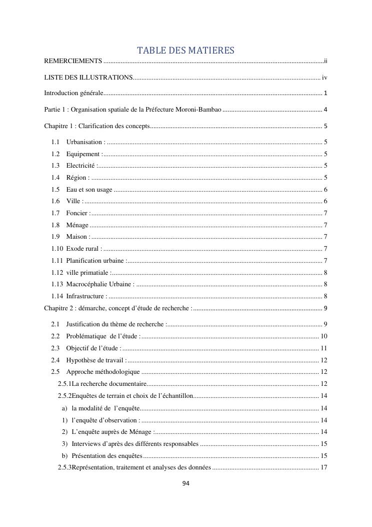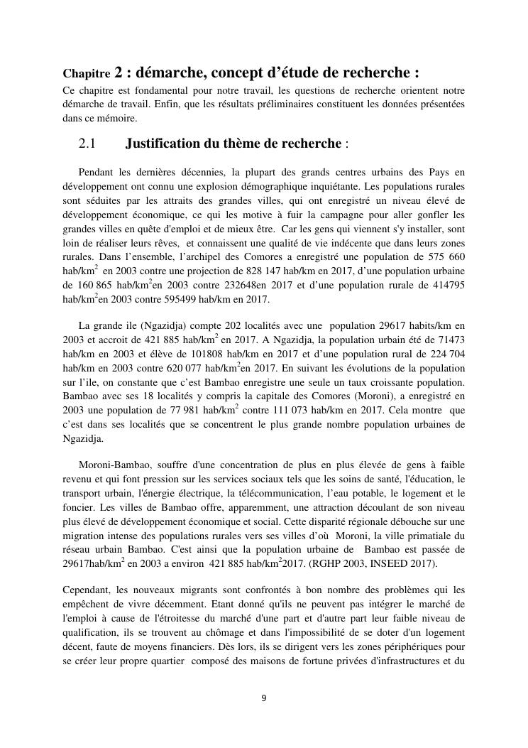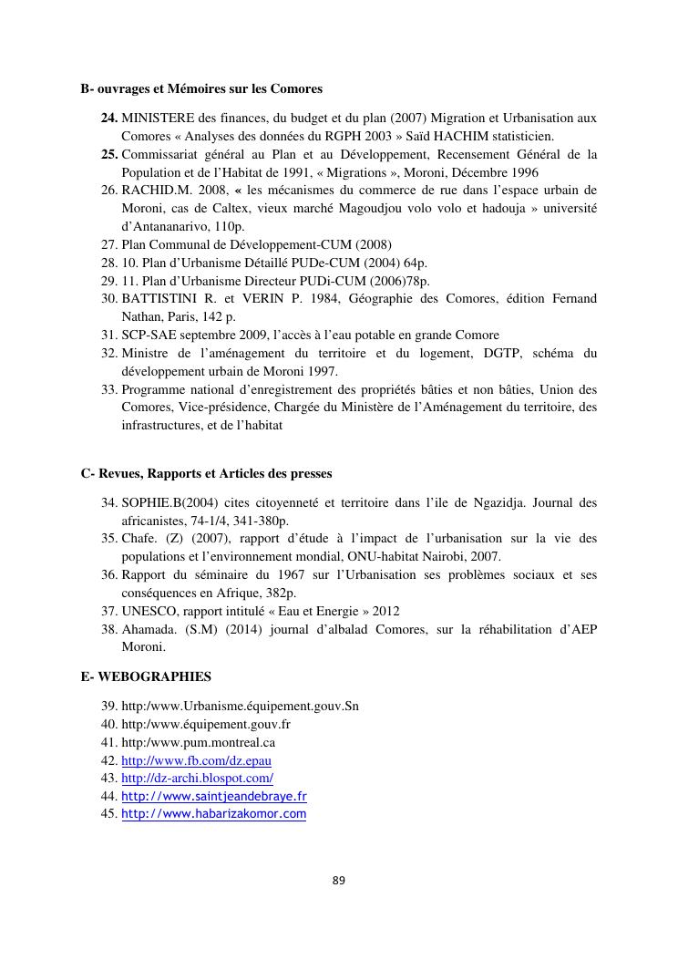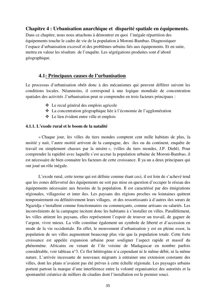 urbanisation et equipement : eau et electricite de la prefecture de moroni-bambao « grande comore »