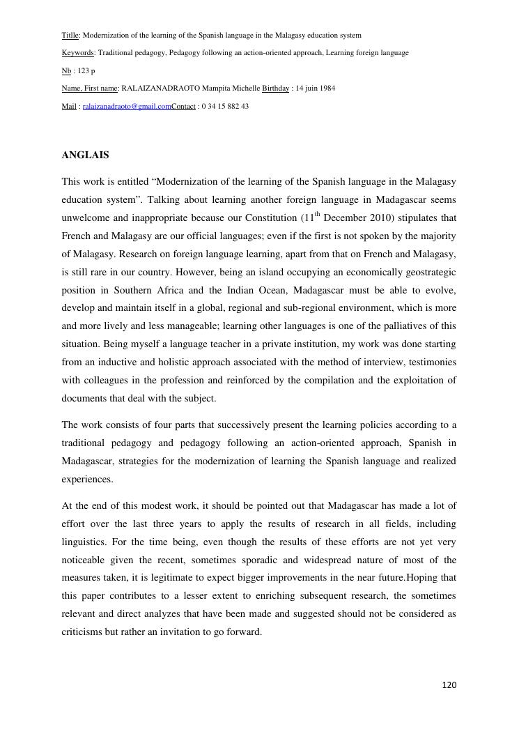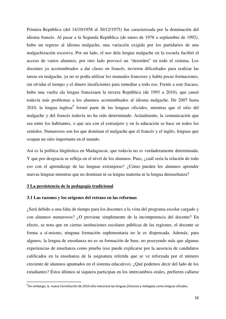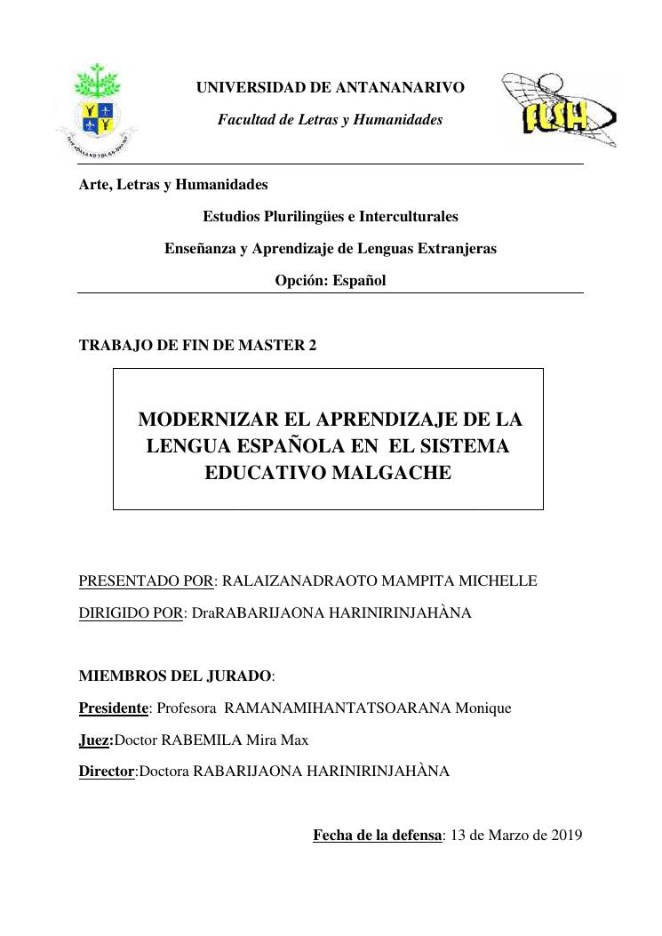 modernizar el aprendizaje de la lengua española en el sistema educativo malgache