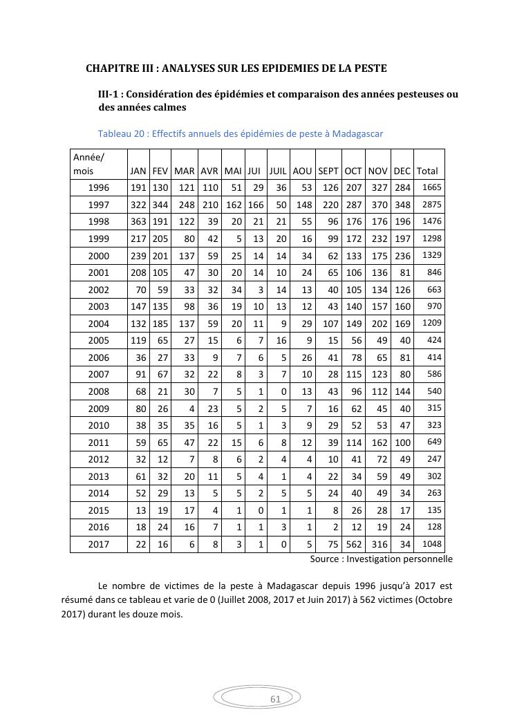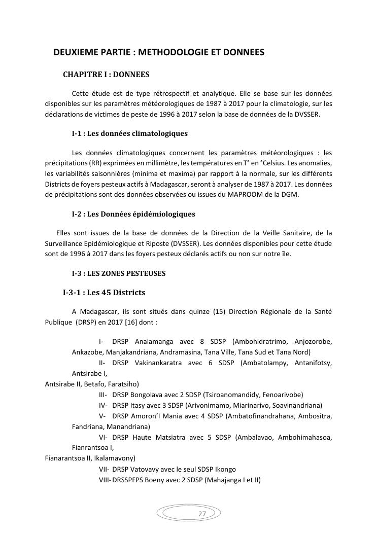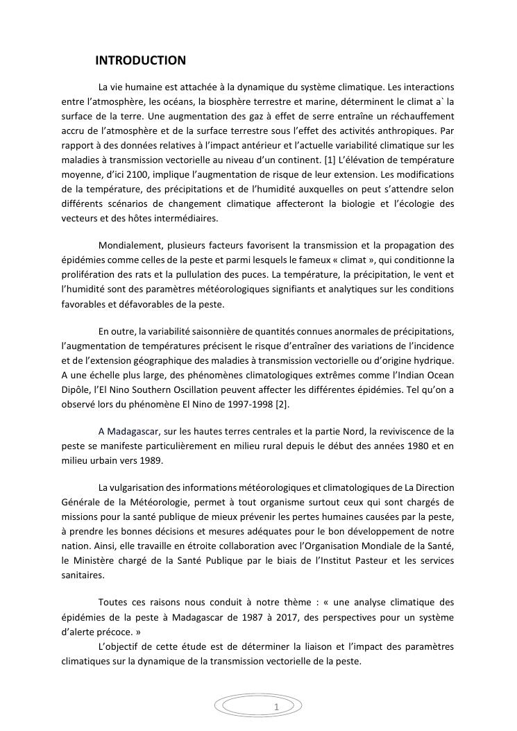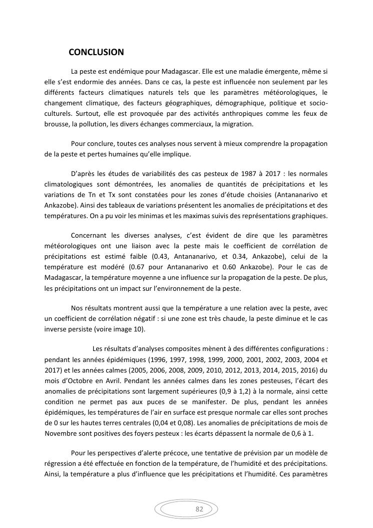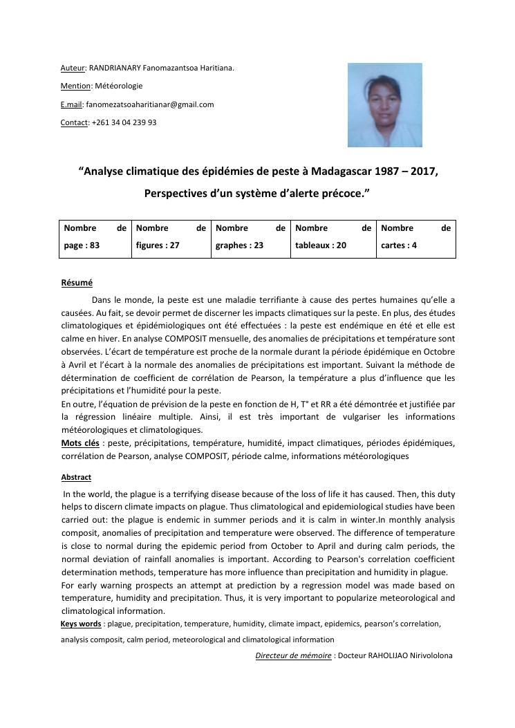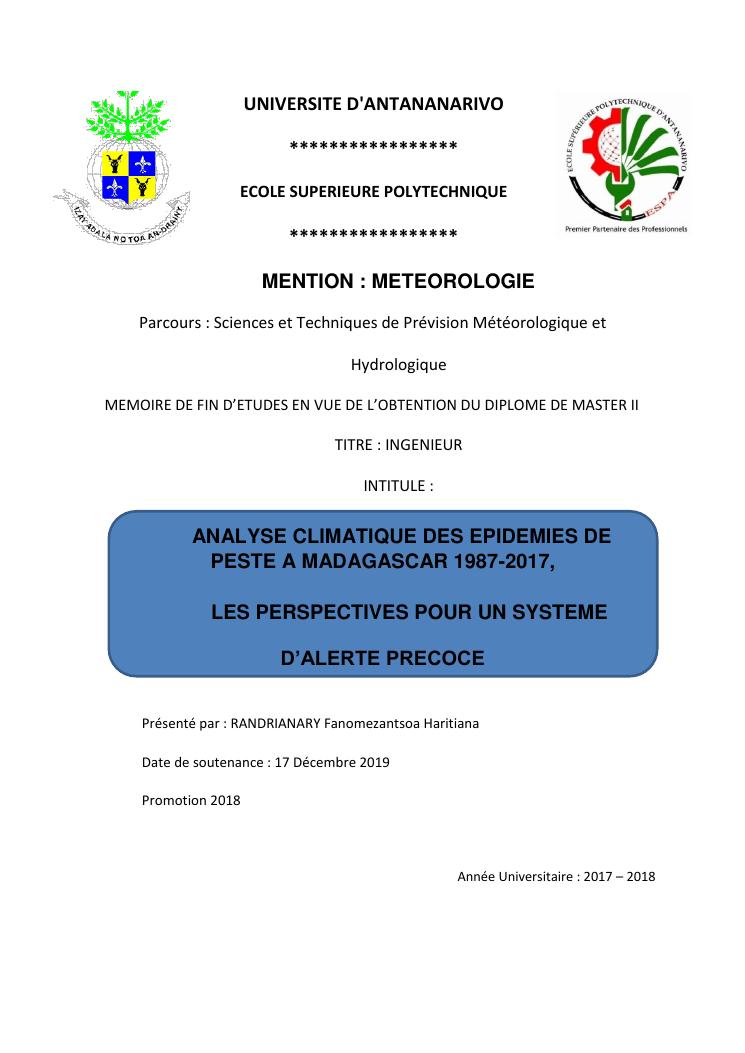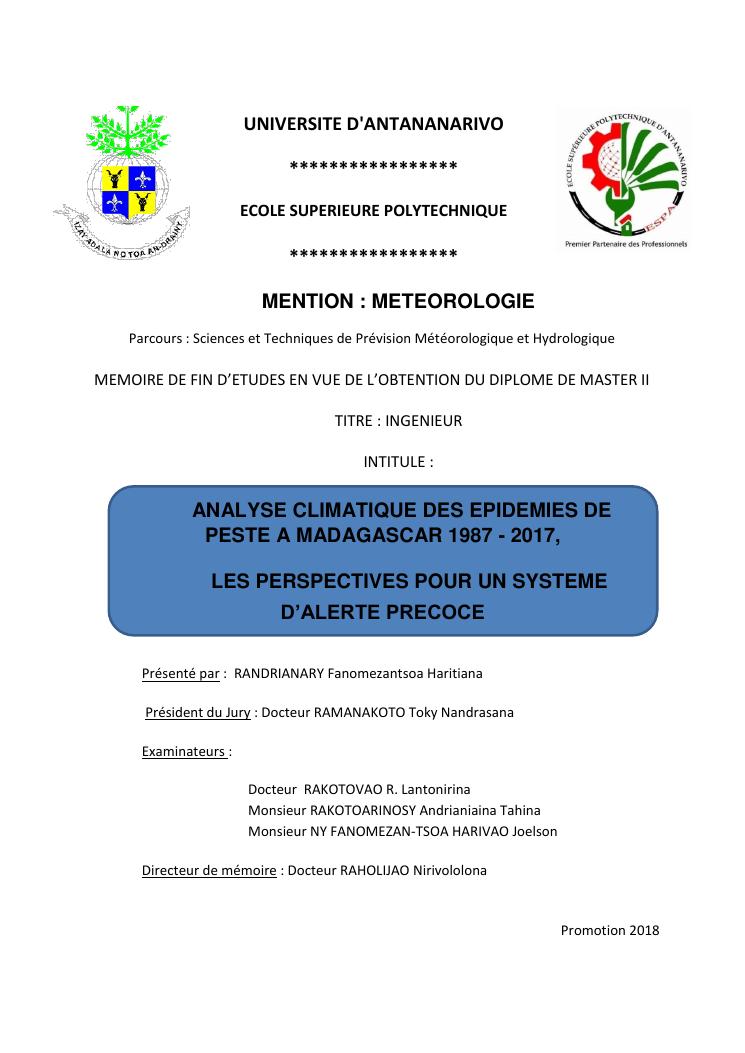 analyse climatique des epidemies de peste a madagascar 1987-2017, les perspectives pour un systeme d'alerte precoce