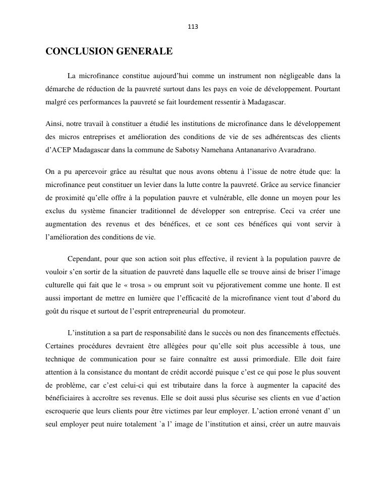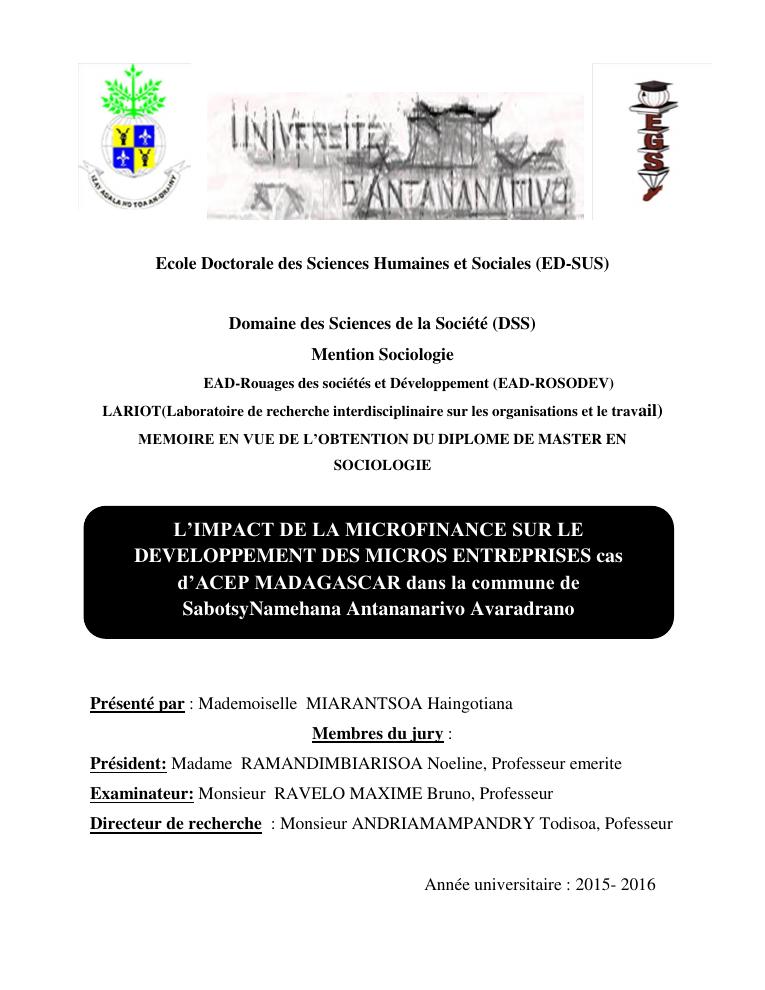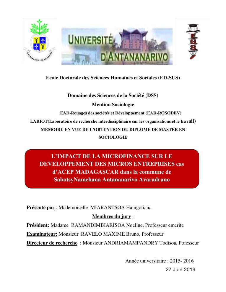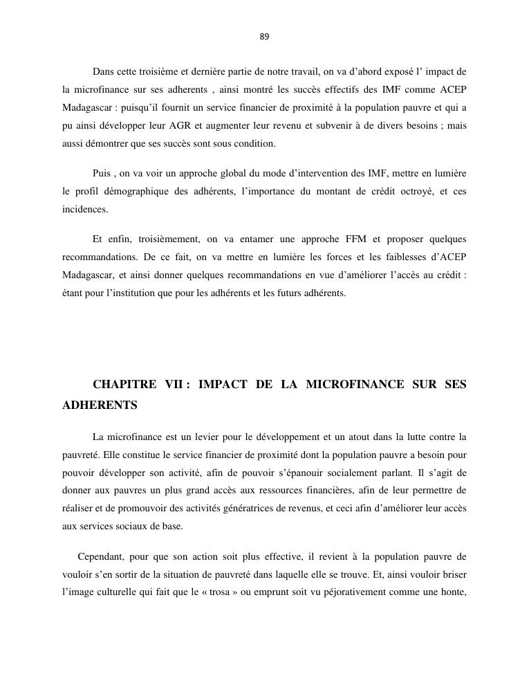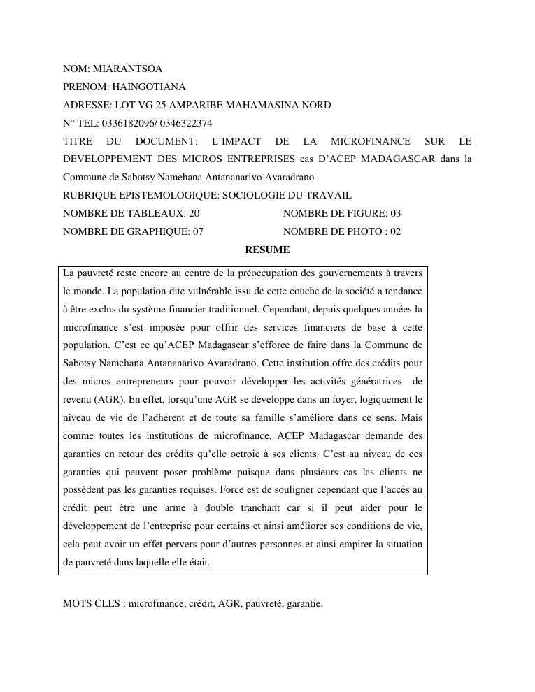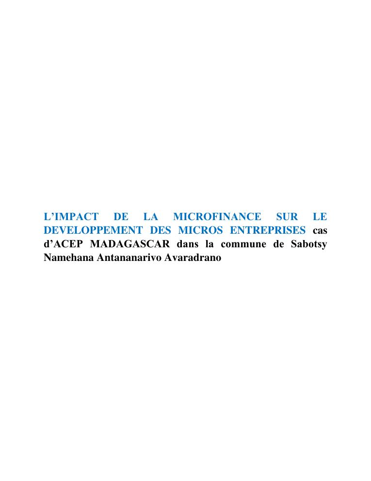 l'impact de la microfinance sur le developpement des micros entreprises cas d'acep madagascar dans la commune de sabotsynamehana antananarivo avaradrano