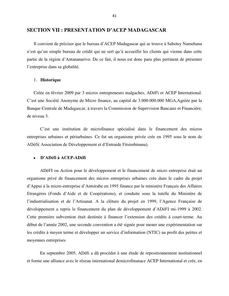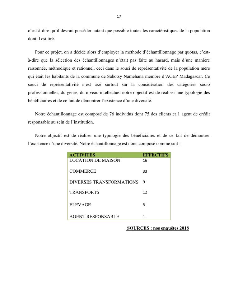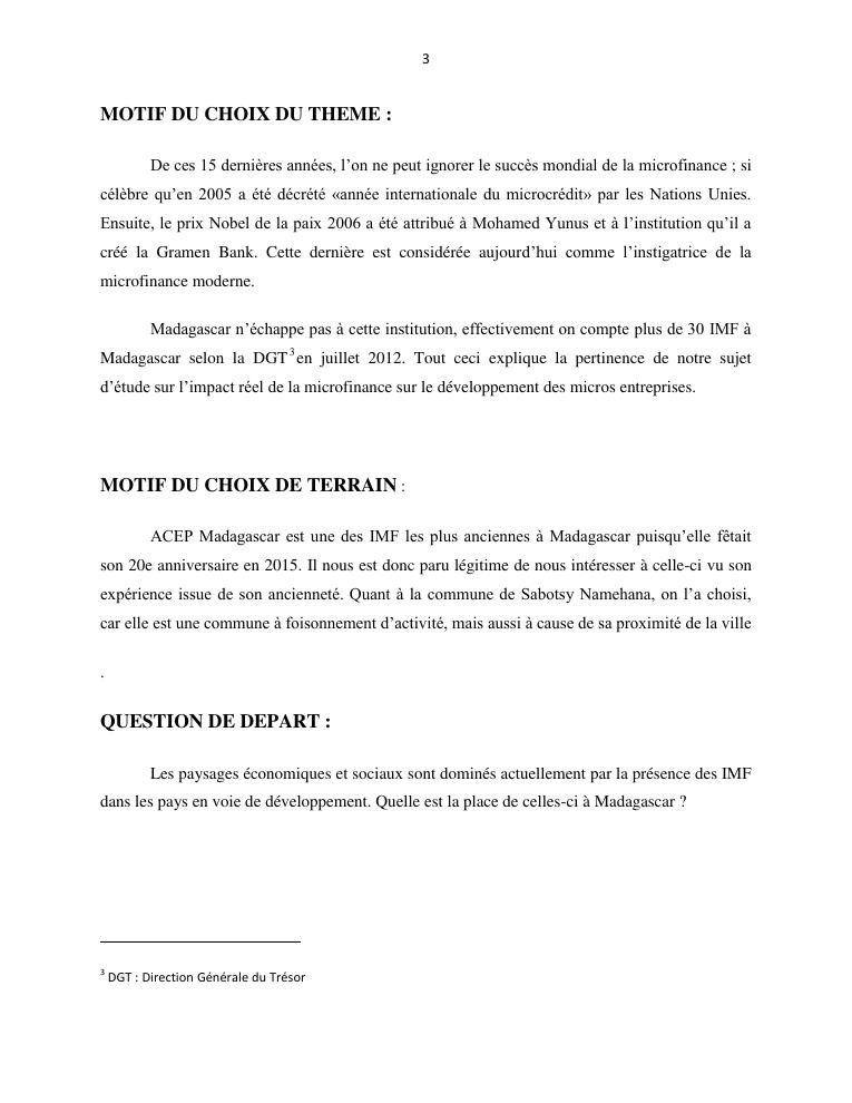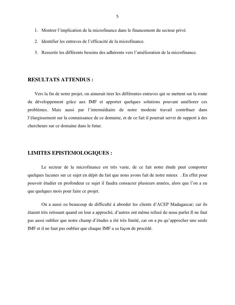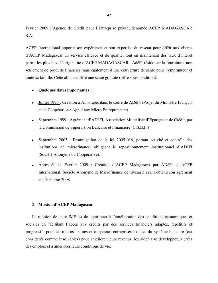 l'impact de la microfinance sur le developpement des micros entreprises cas d'acep madagascar dans la commune de sabotsynamehana antananarivo avaradrano