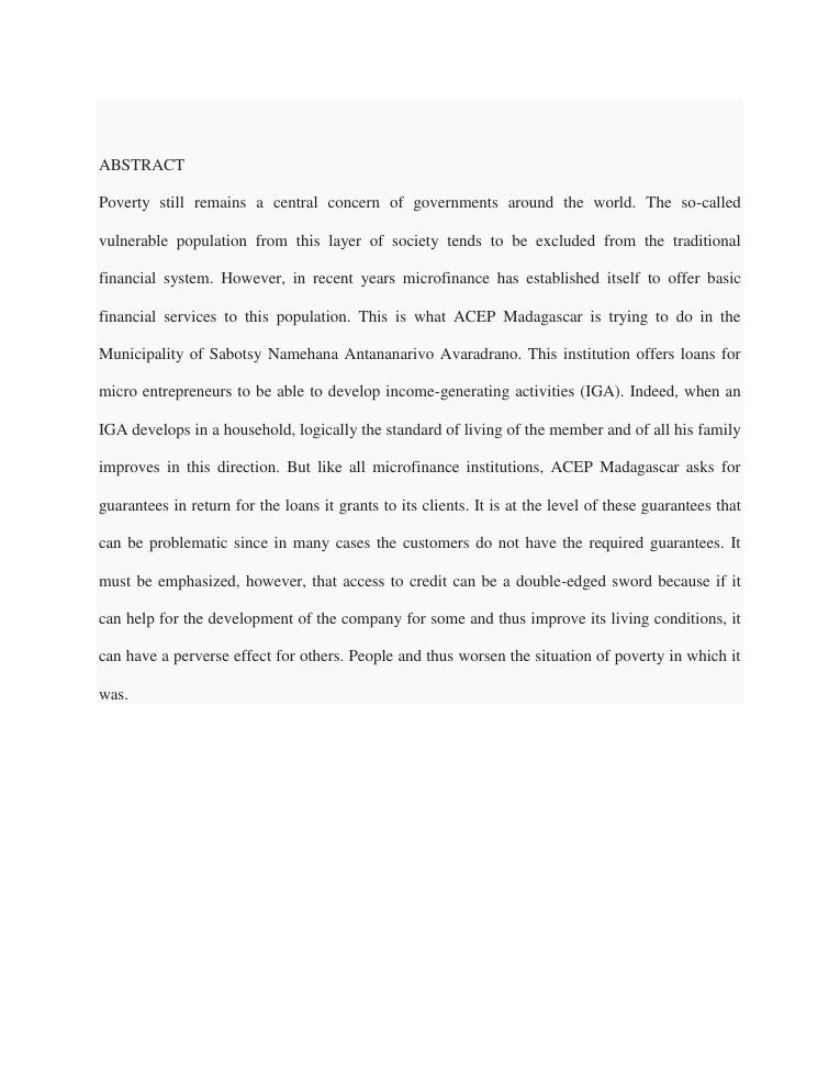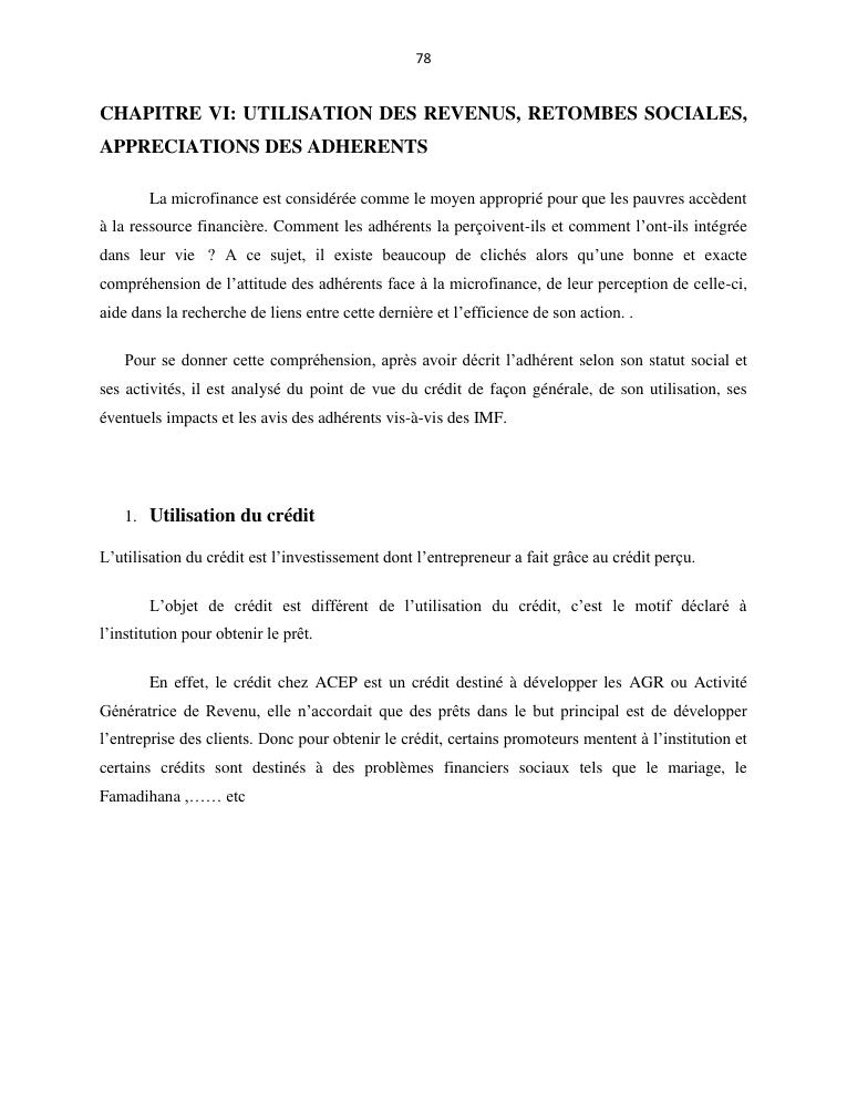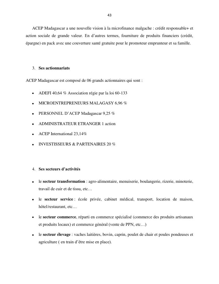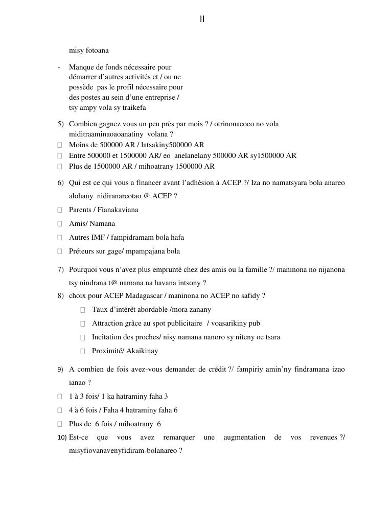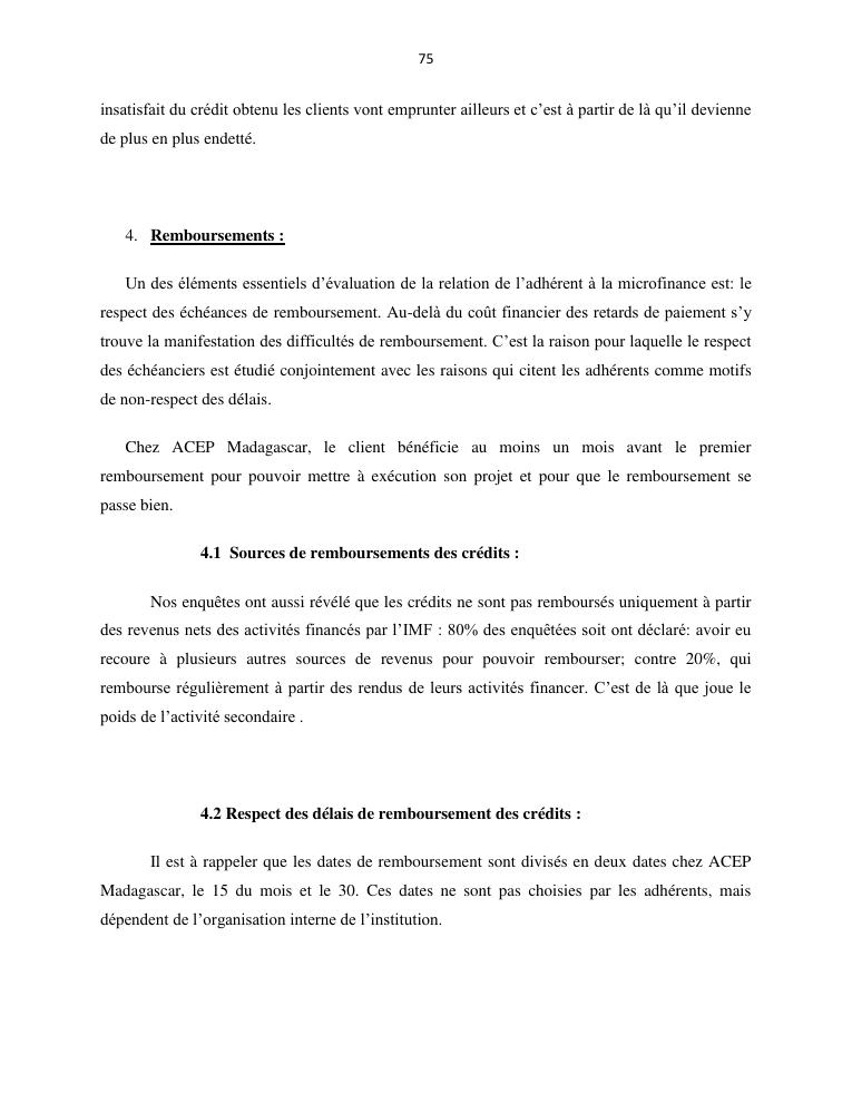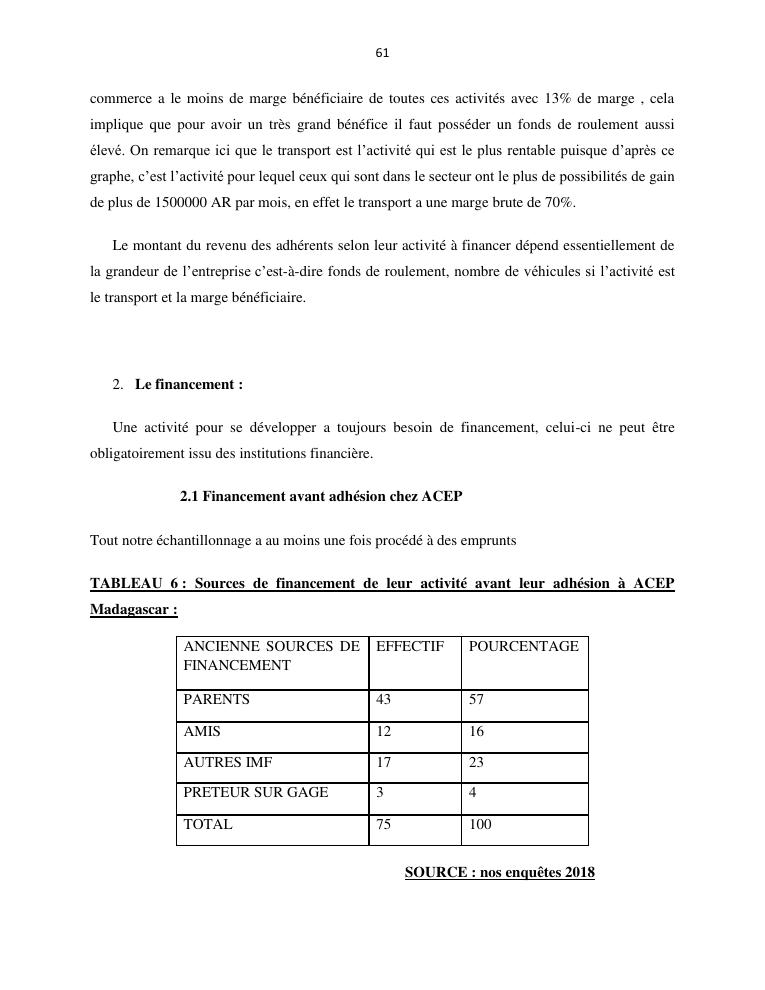 l'impact de la microfinance sur le developpement des micros entreprises cas d'acep madagascar dans la commune de sabotsynamehana antananarivo avaradrano