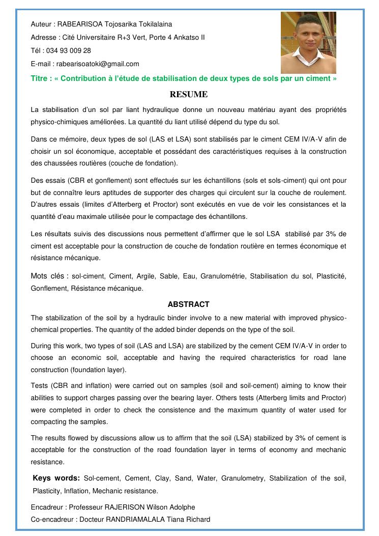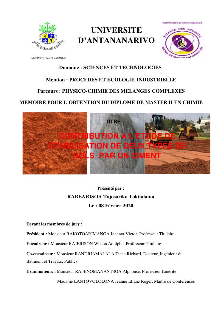 contribution a l'etude de stabilisation de deux types de sols par un ciment
