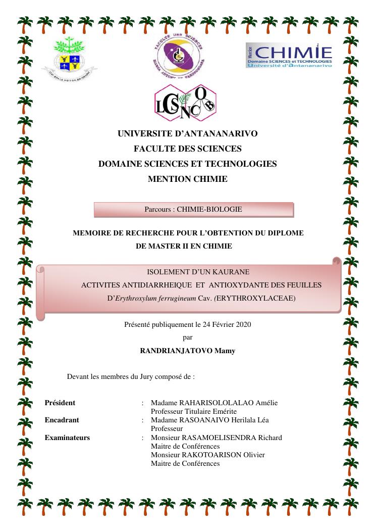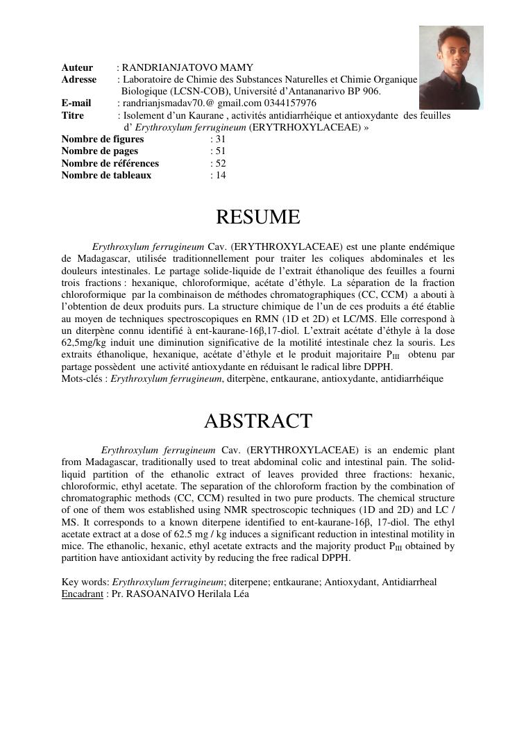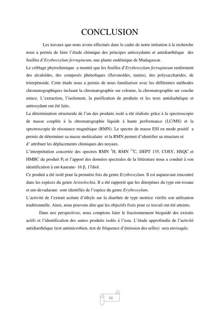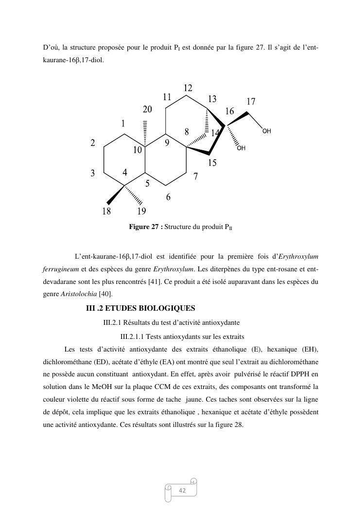 isolement d'un kaurane activites antidiarrheique et antioxydante des feuilles d'erythroxylum ferrugineum cav. (erythroxylaceae)