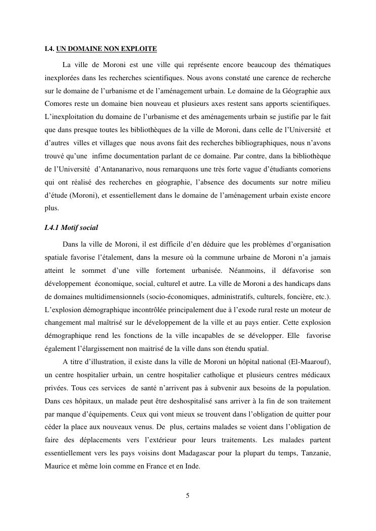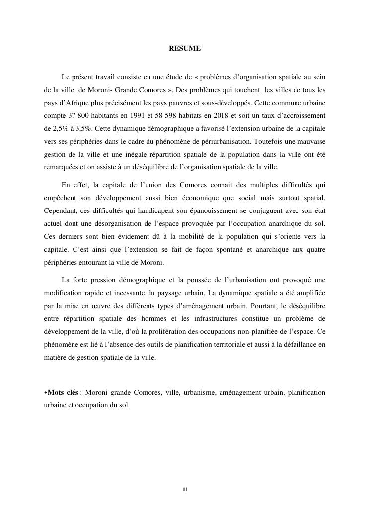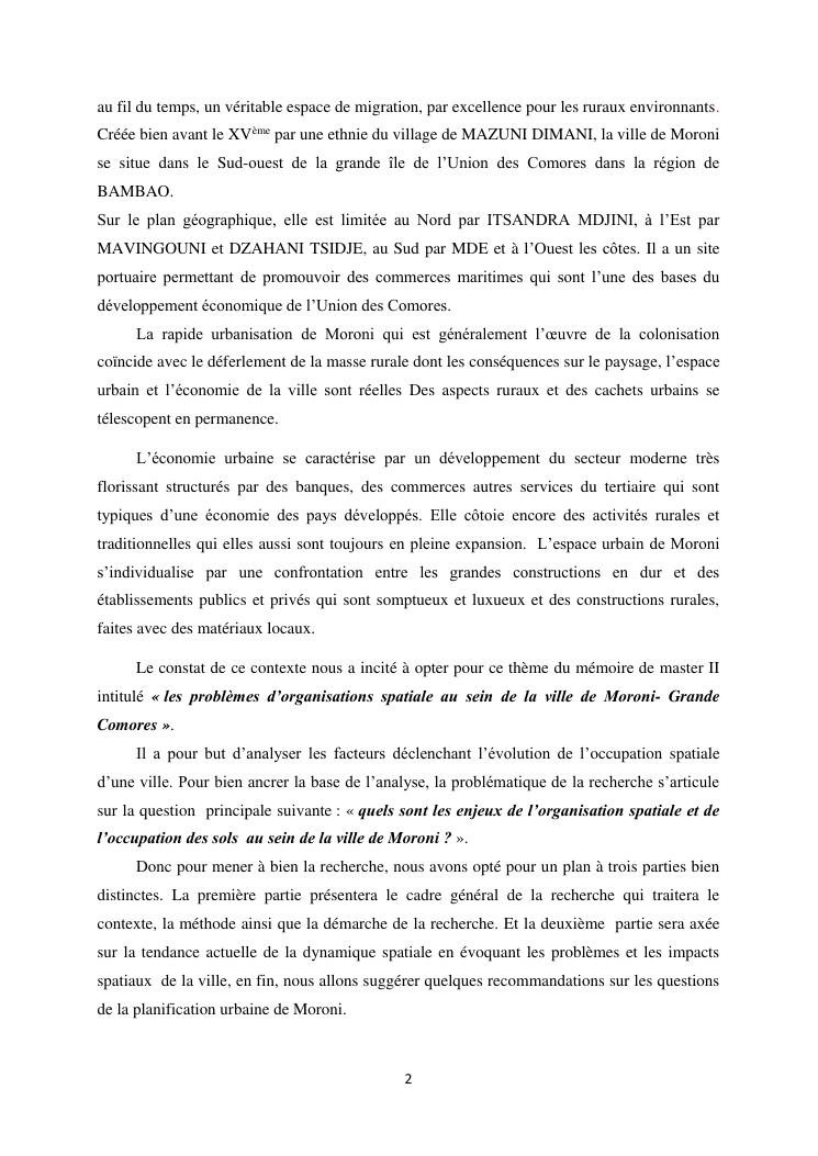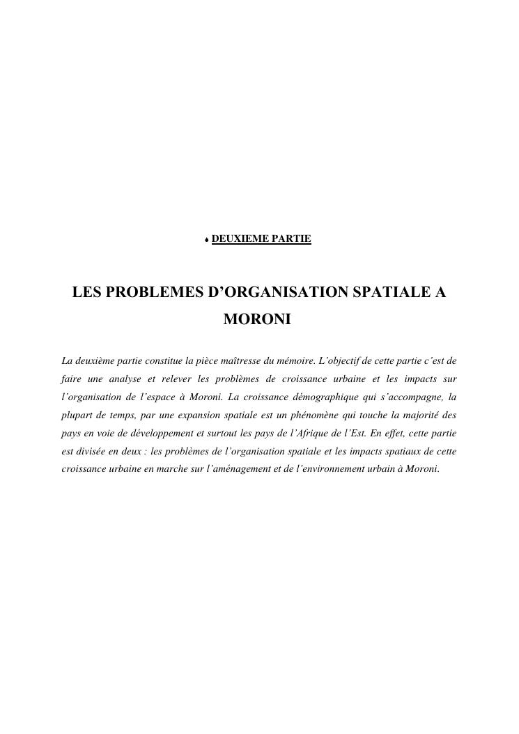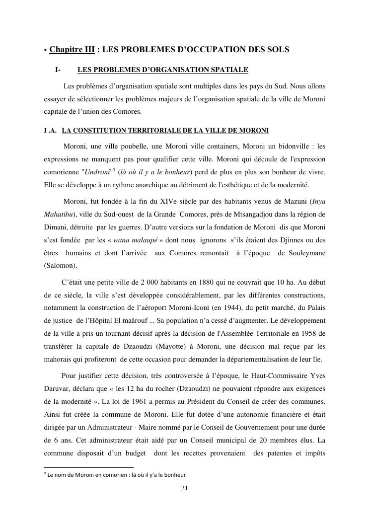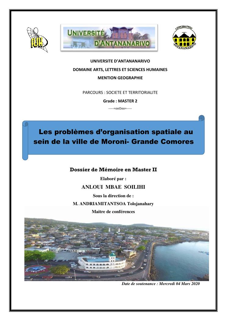 les problèmes d'organisation spatiale au sein de la ville de moroni- grande comores
