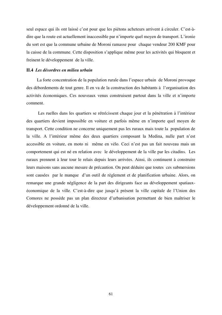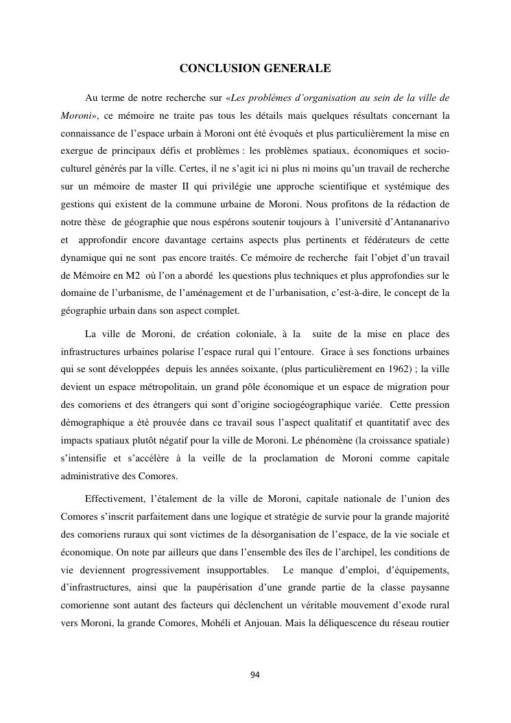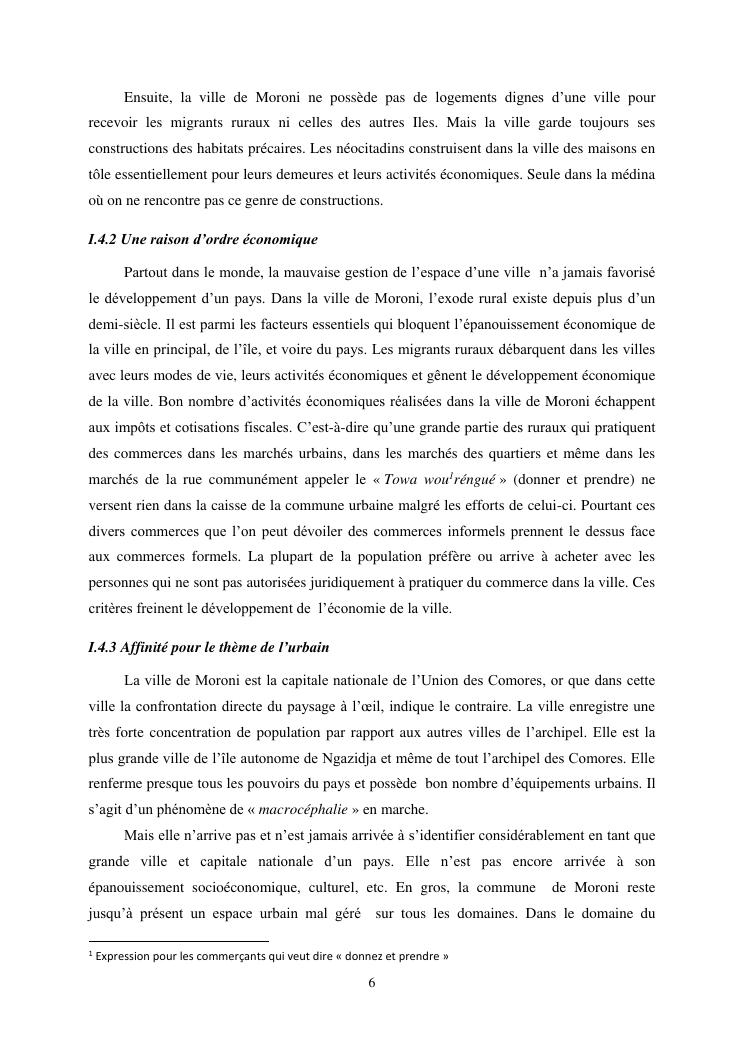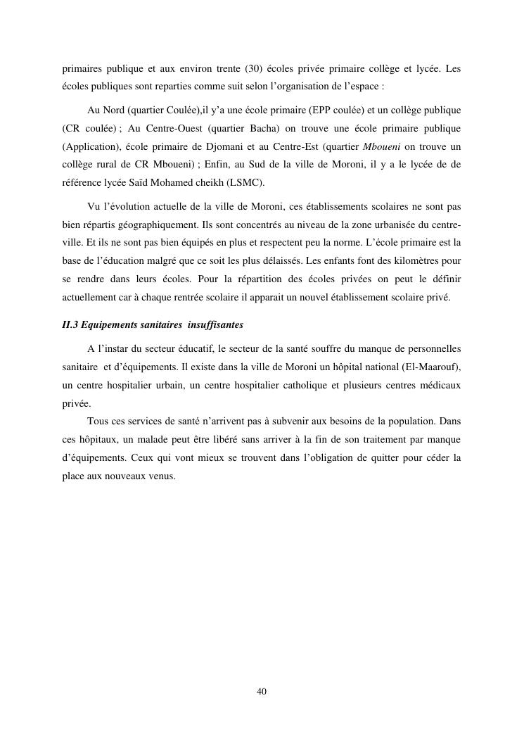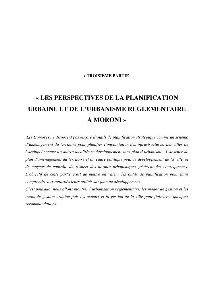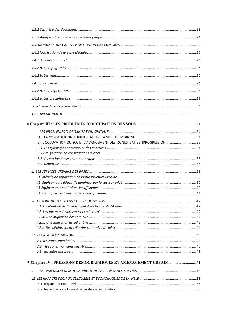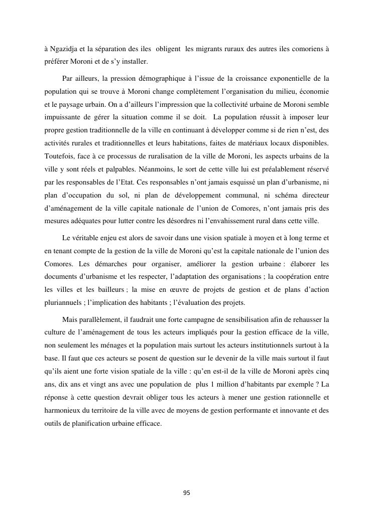 les problèmes d'organisation spatiale au sein de la ville de moroni- grande comores