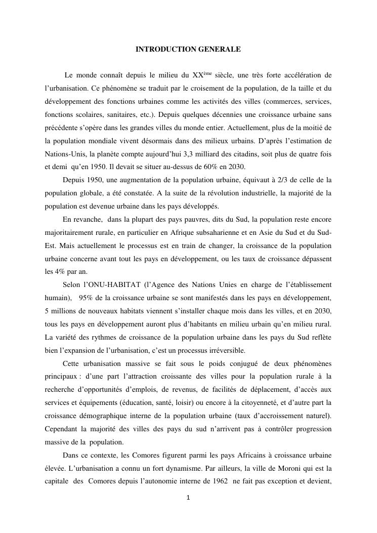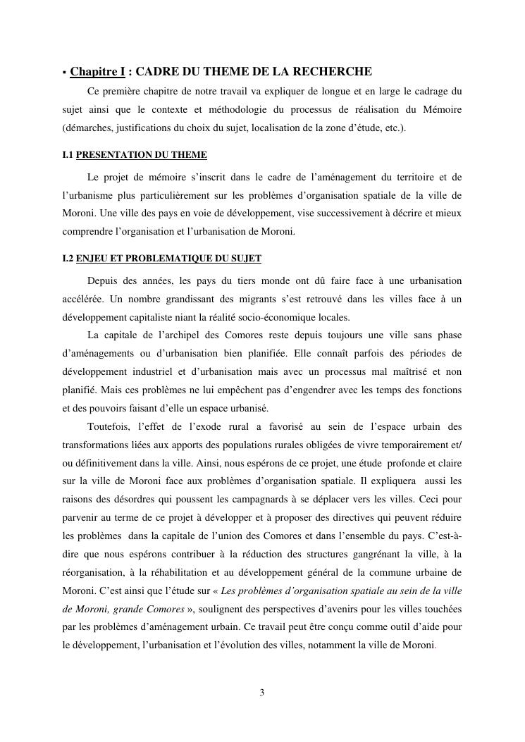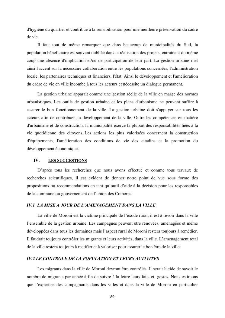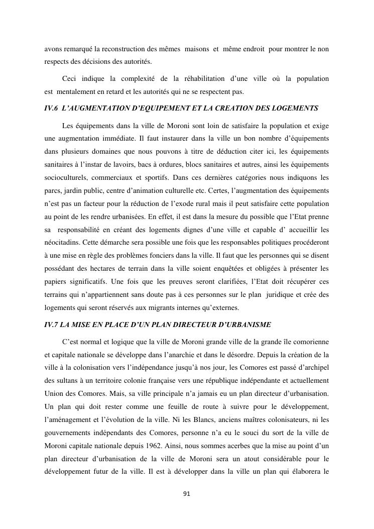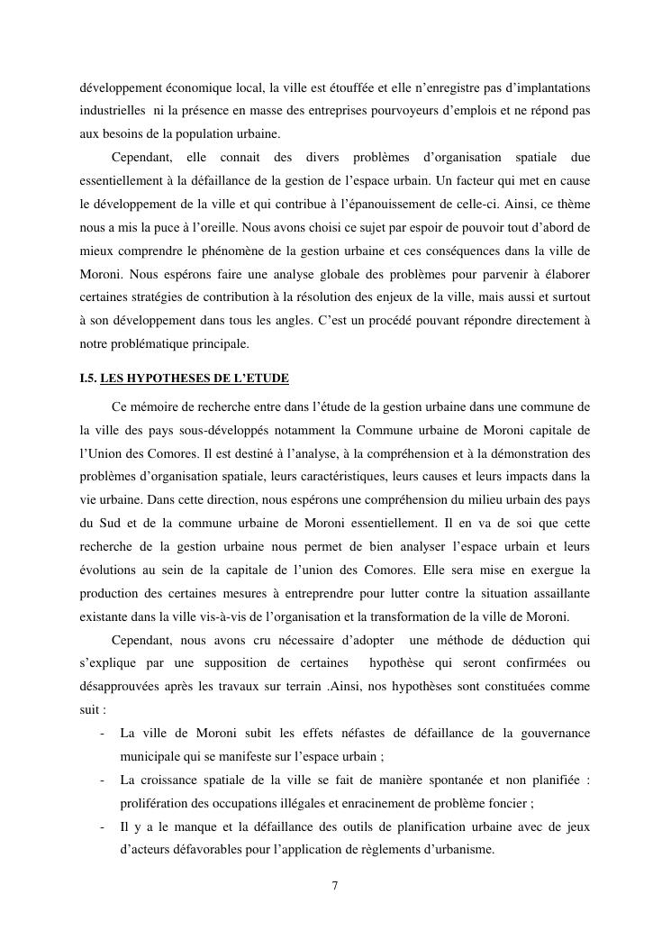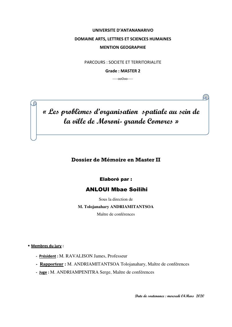 les problèmes d'organisation spatiale au sein de la ville de moroni- grande comores
