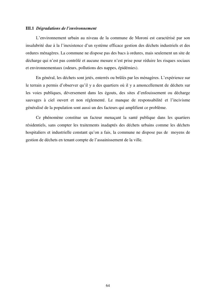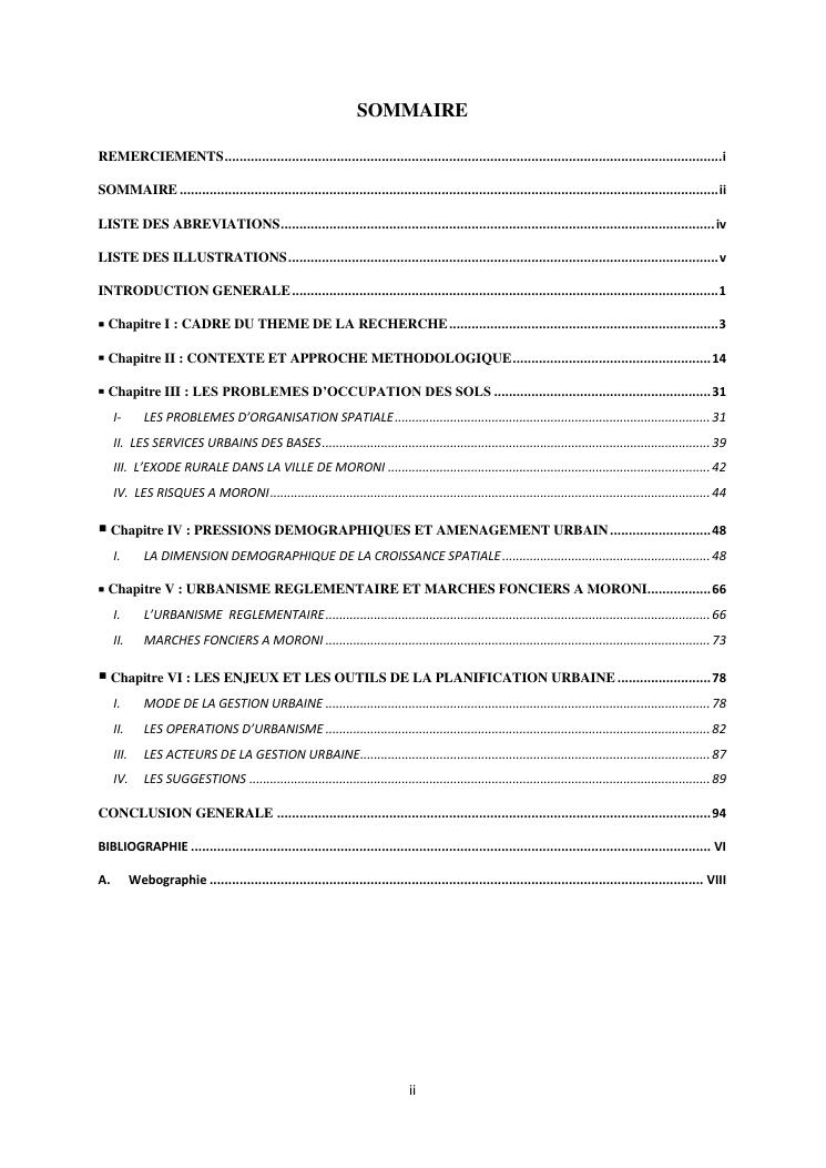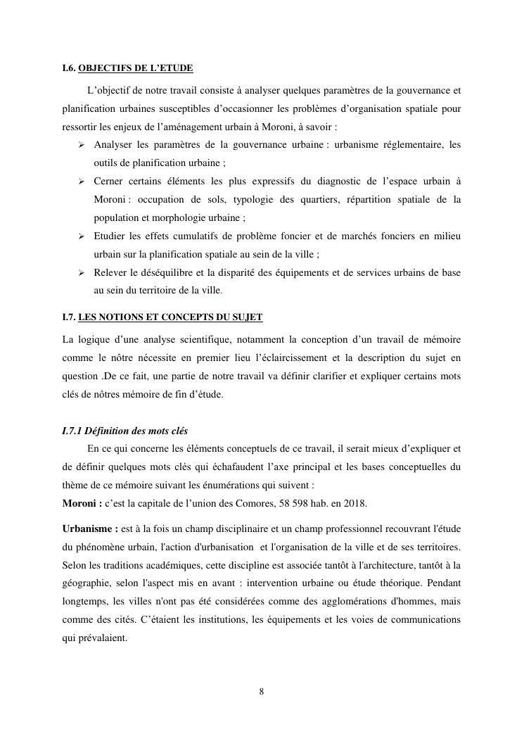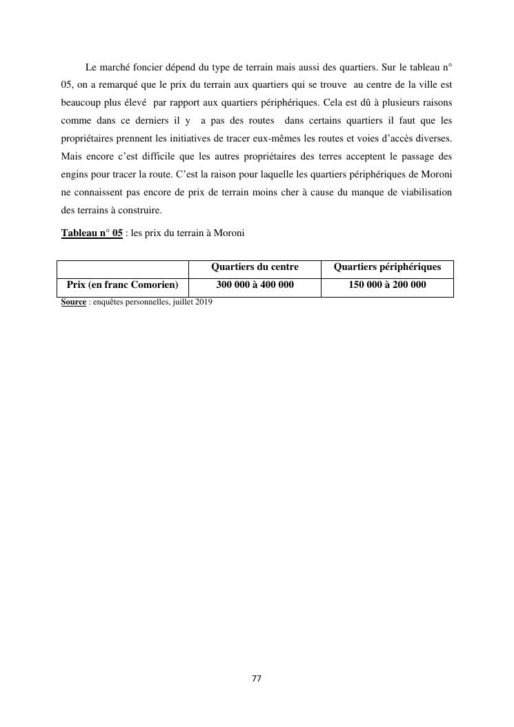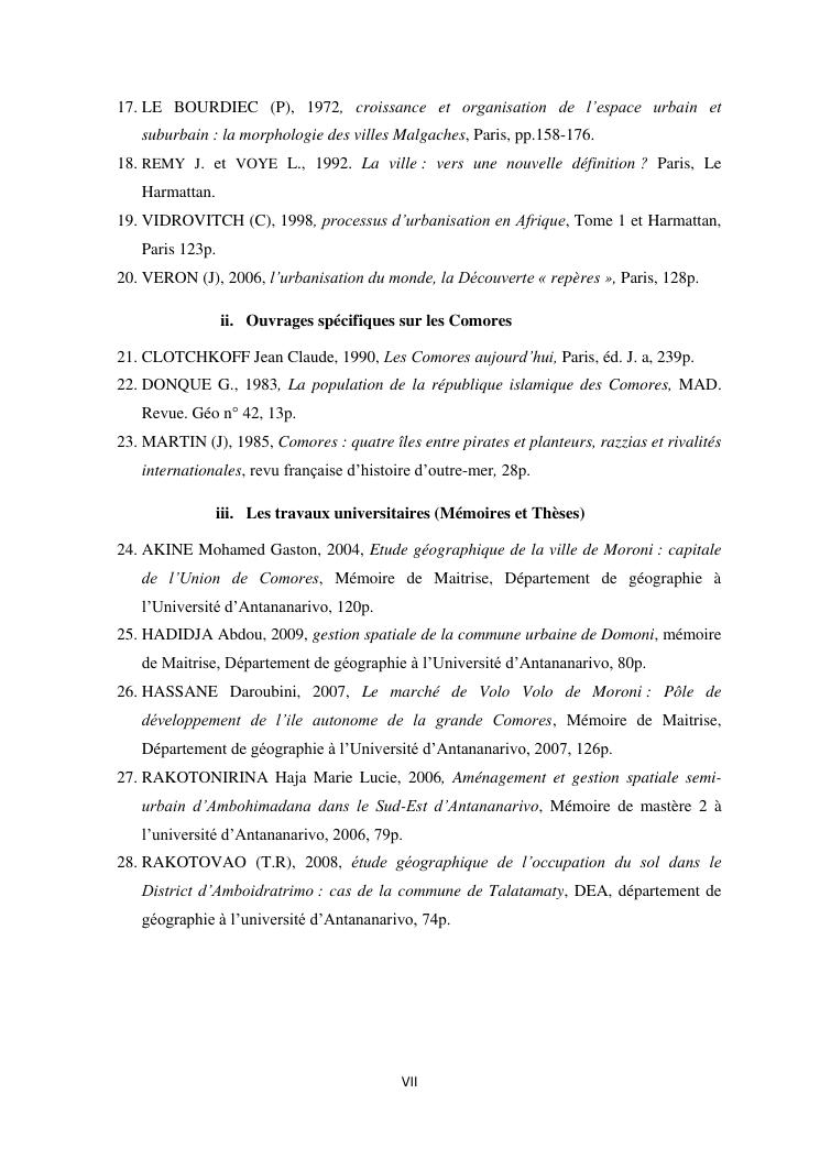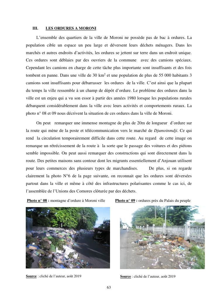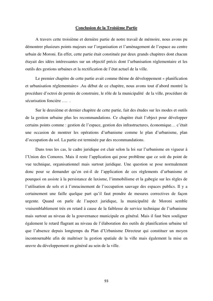 les problèmes d'organisation spatiale au sein de la ville de moroni- grande comores