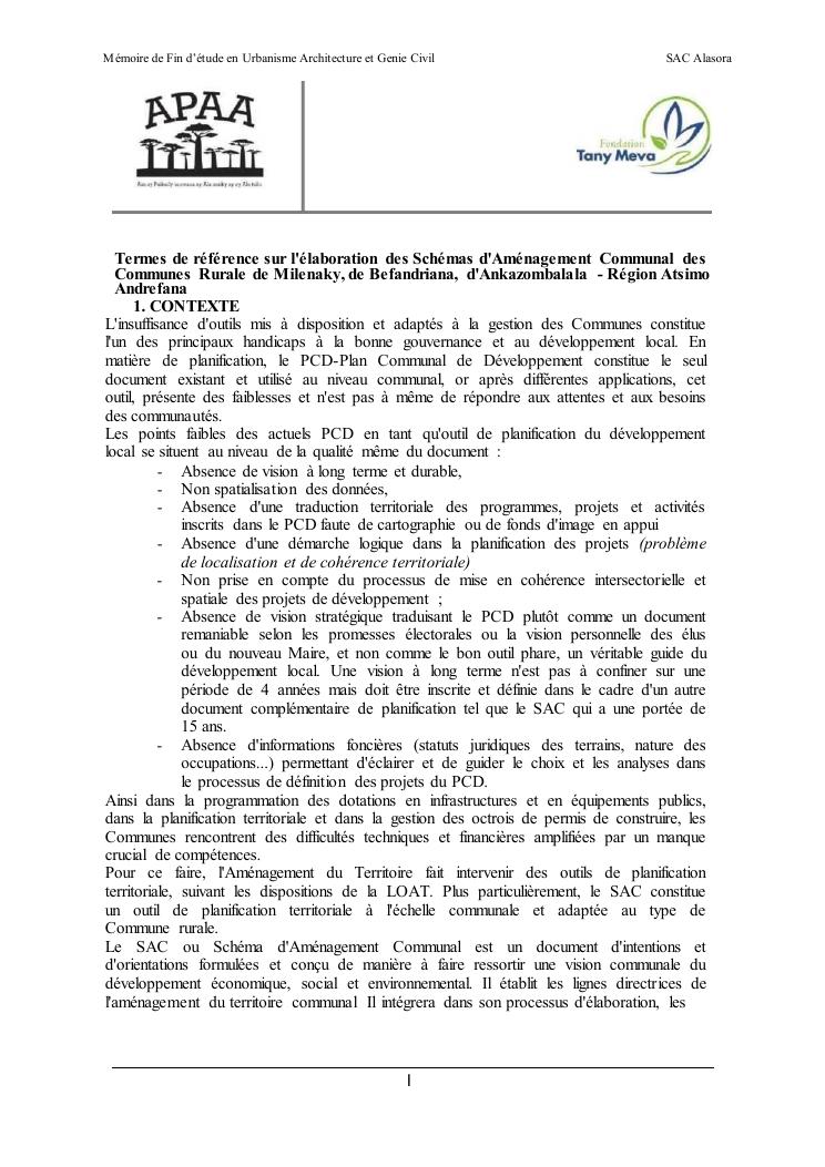 schema d'amenagement communal d'alasora