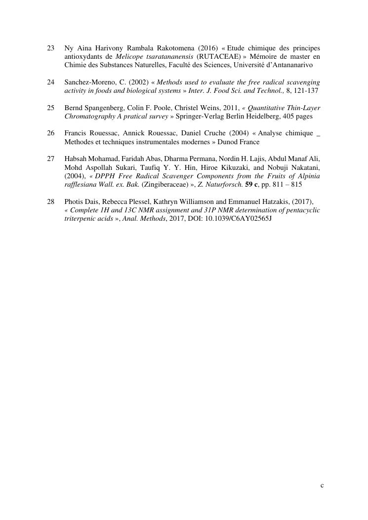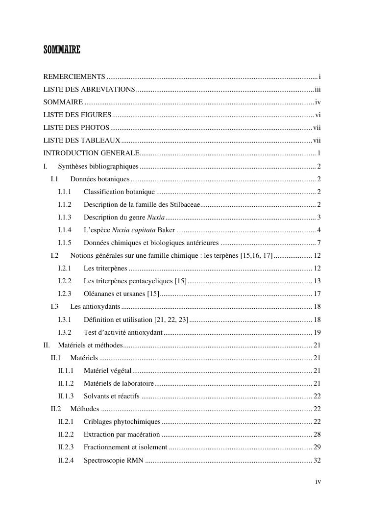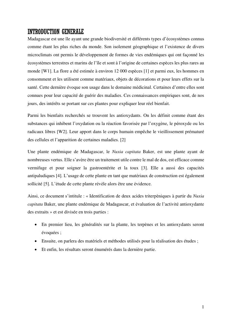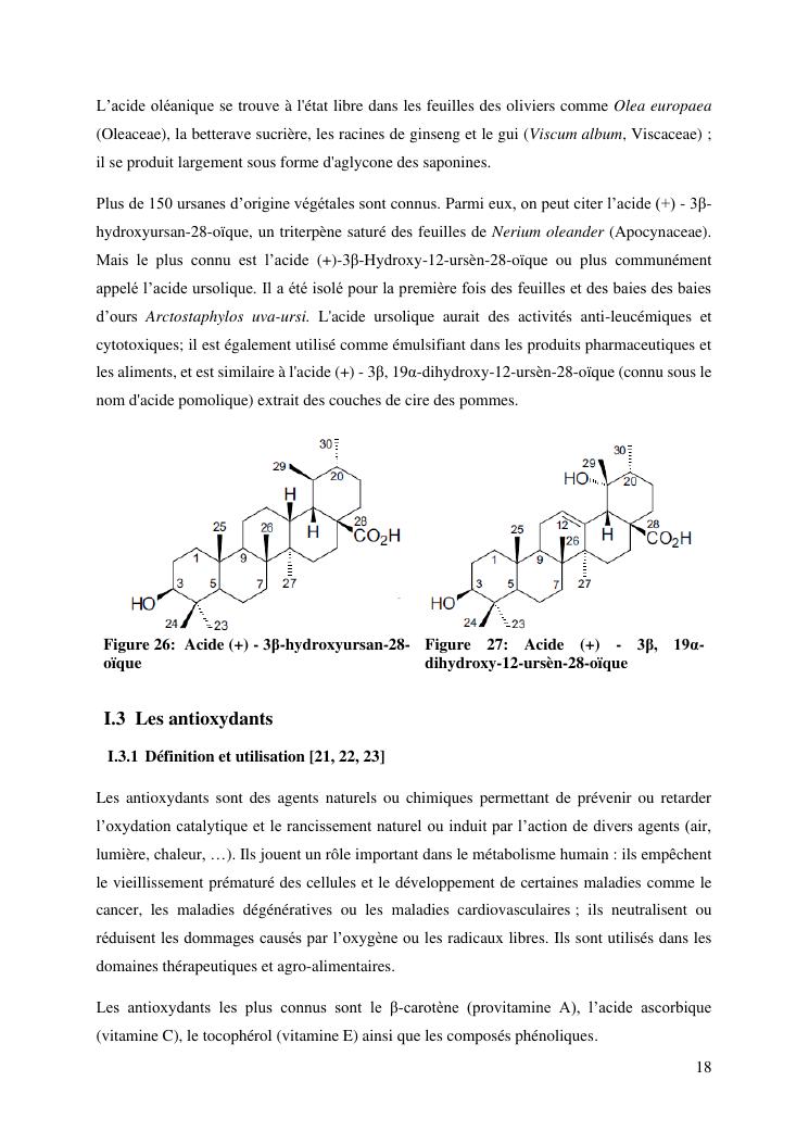 identification de deux acides triterpèniques à partir du nuxia capitata baker, une plante endémique de madagascar, et évaluation de l'activité antioxydante des extraits