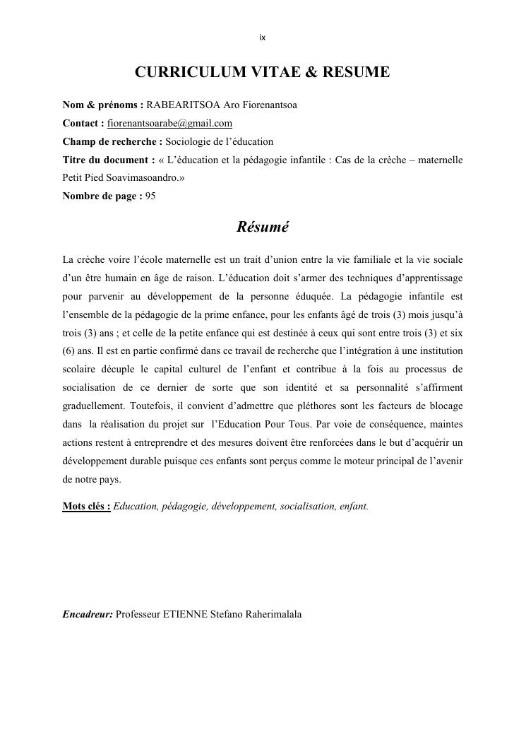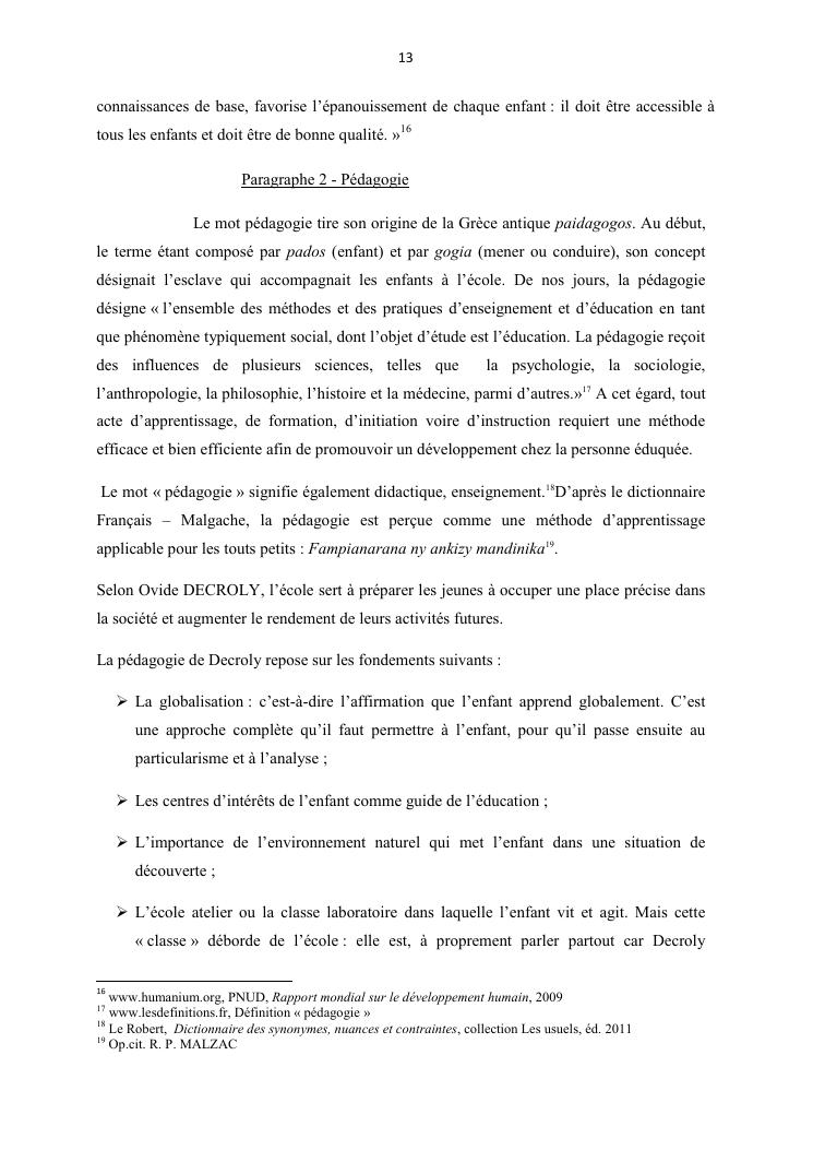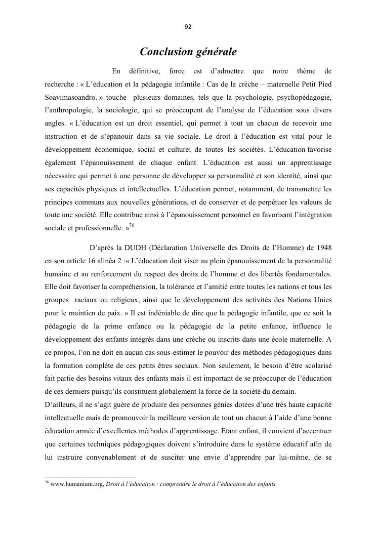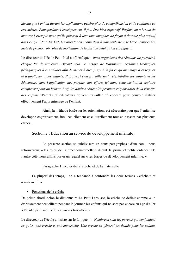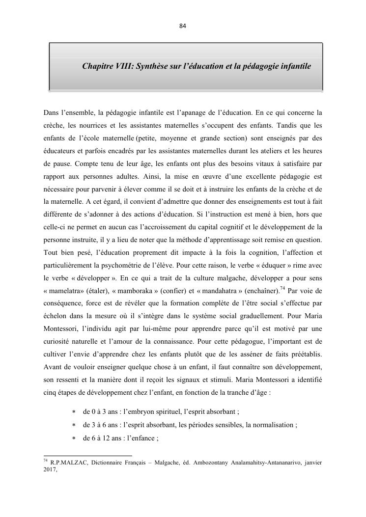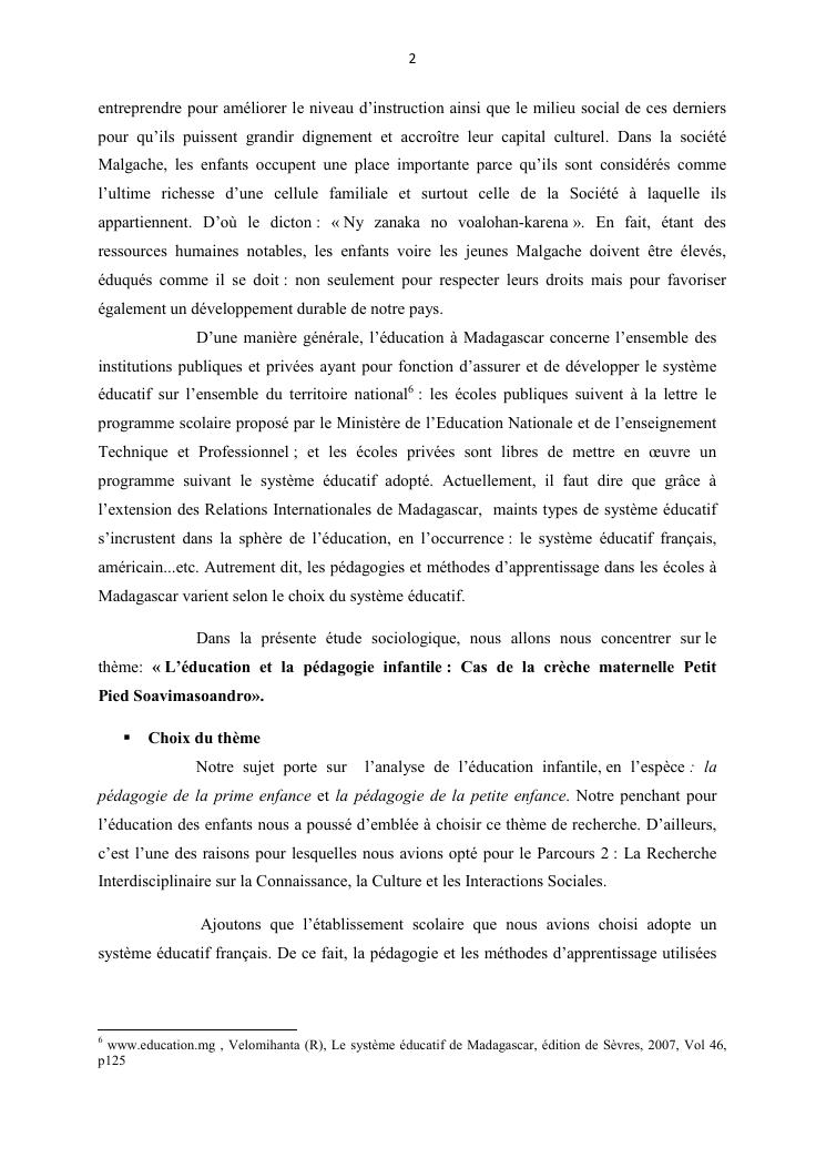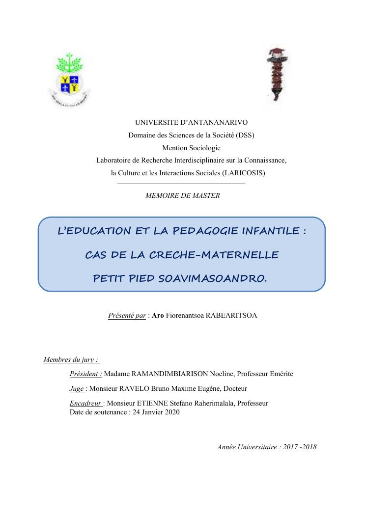 l'education et la pedagogie infantile : cas de la creche-maternelle petit pied soavimasoandro.