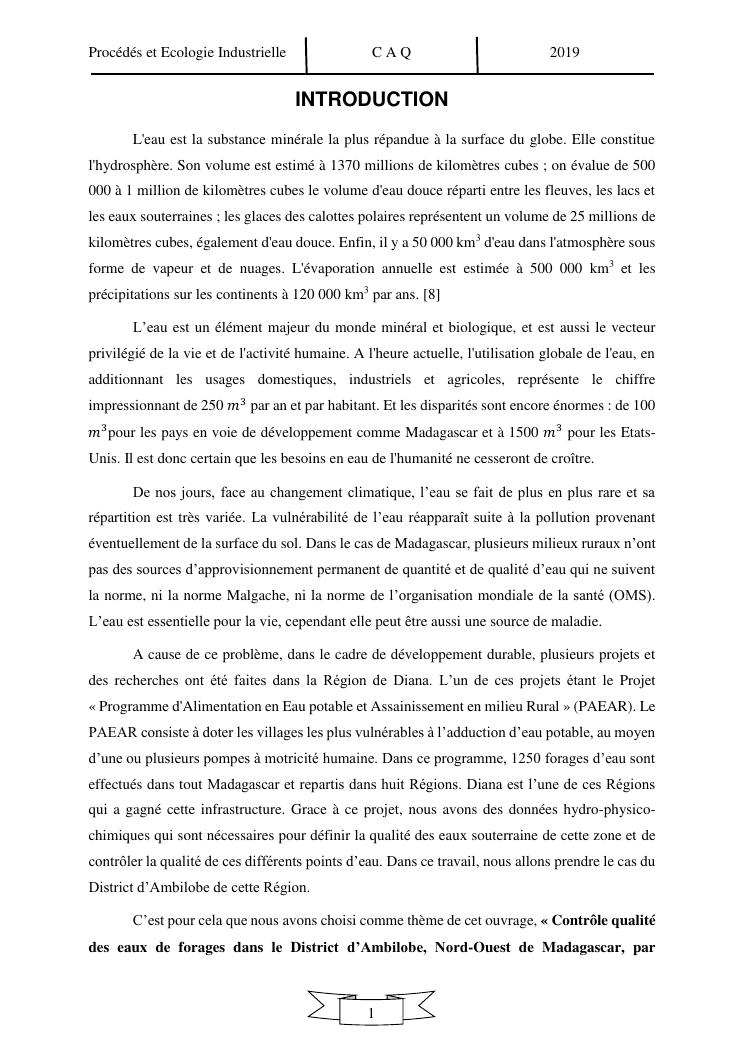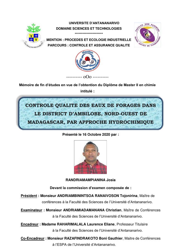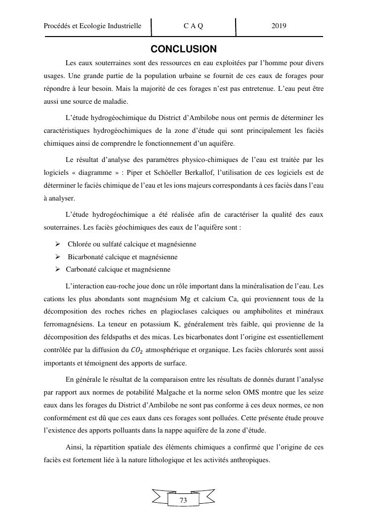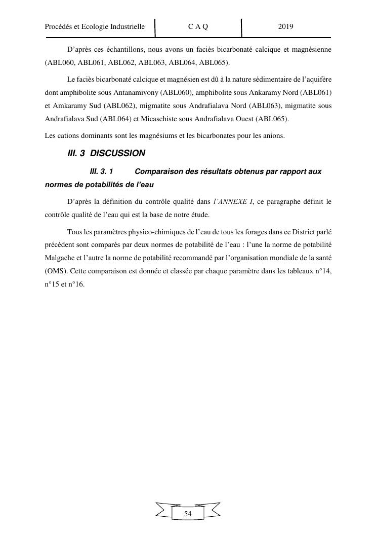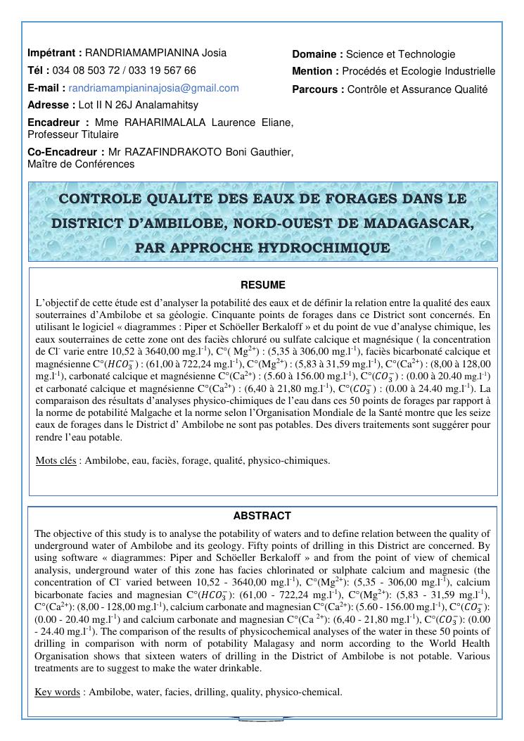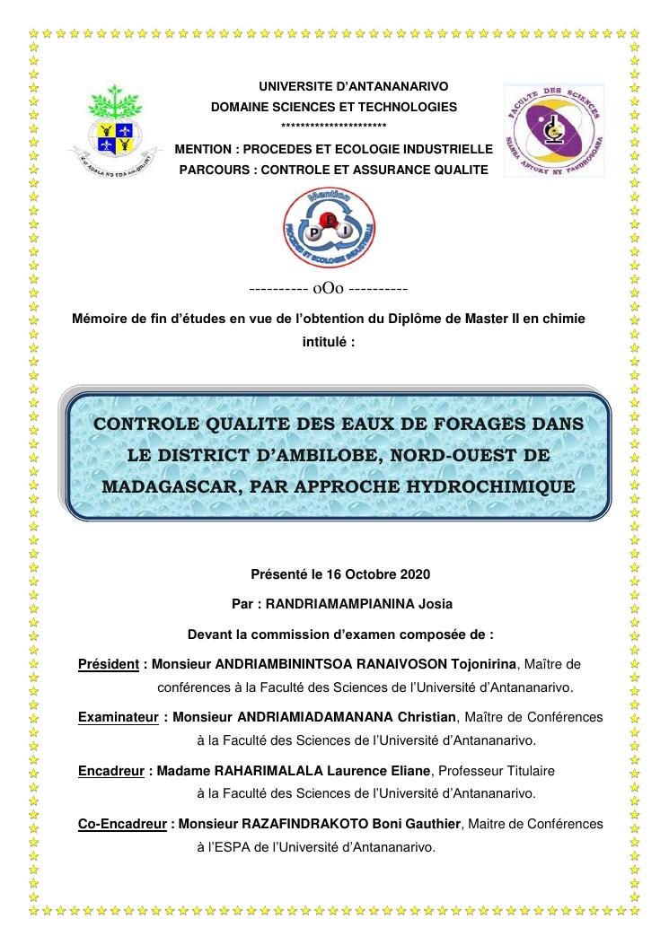controle qualite des eaux de forages dans le district d'ambilobe, nord-ouest de madagascar, par approche hydrochimique