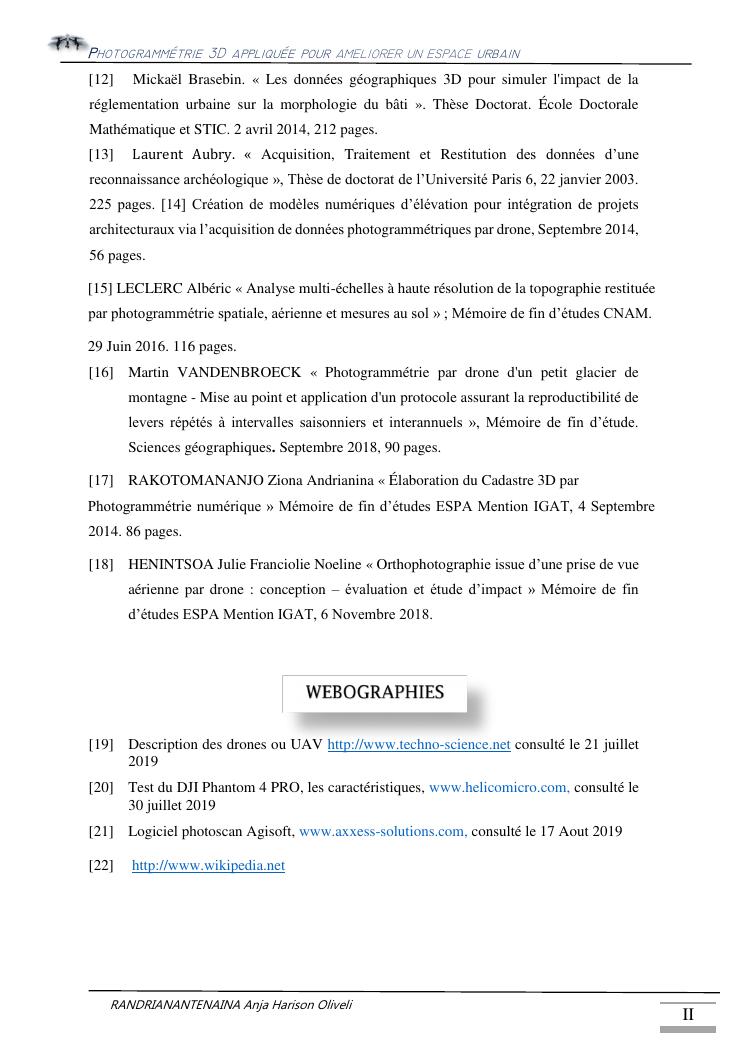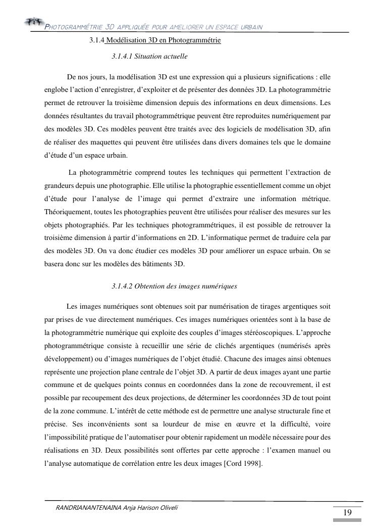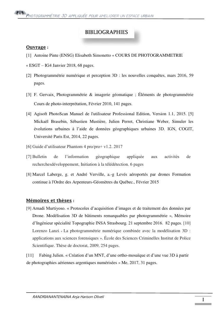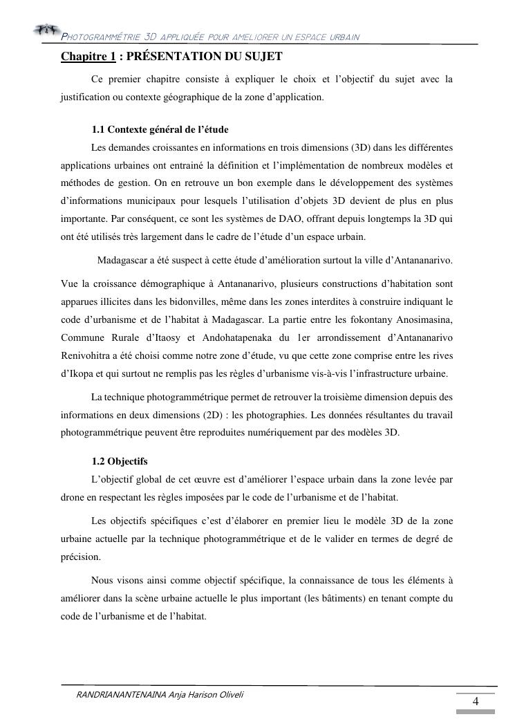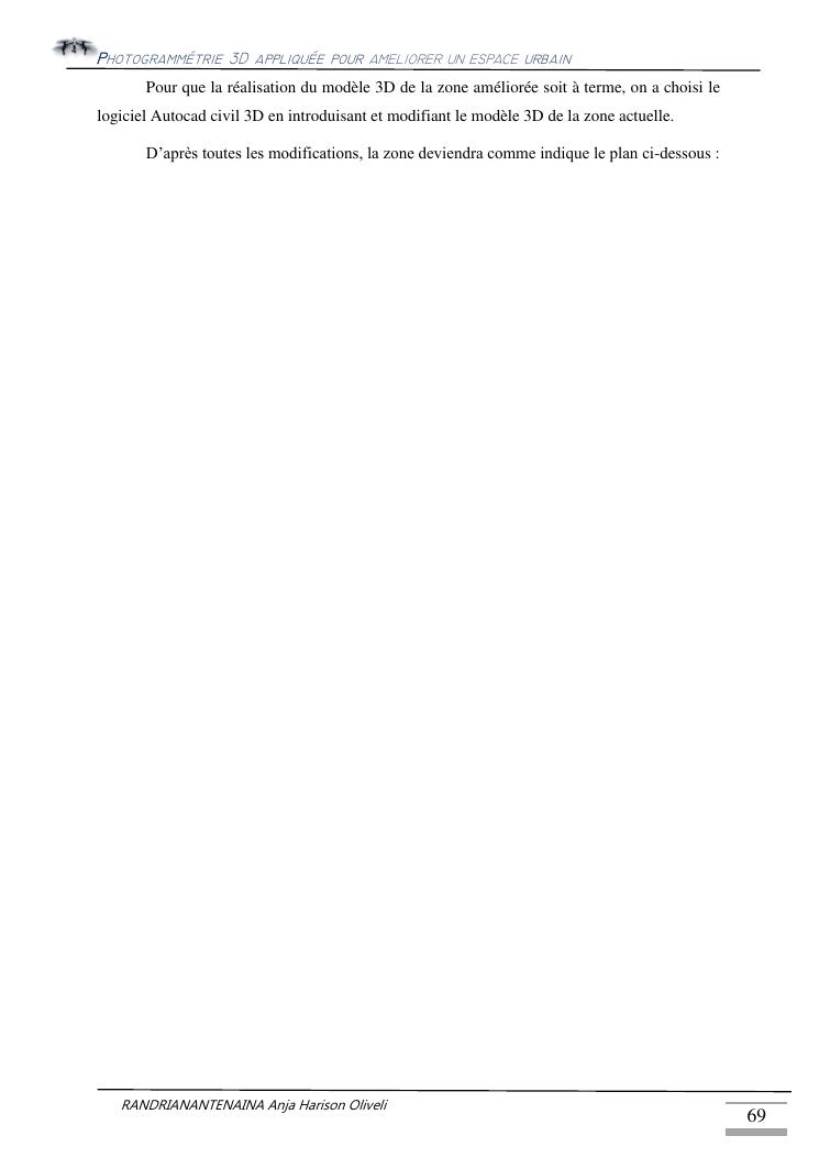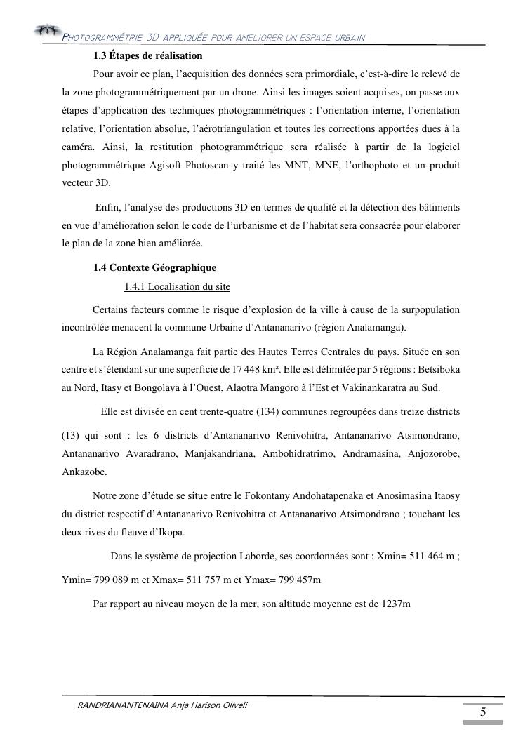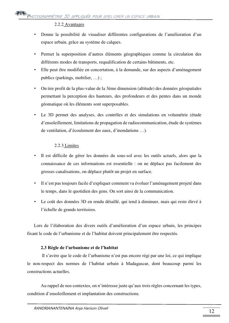 utilisation de la technique photogrammétrie numerique combinee a la methode 3d pour l'amélioration d'un espace urbain : cas d'ampasika, région analamanga