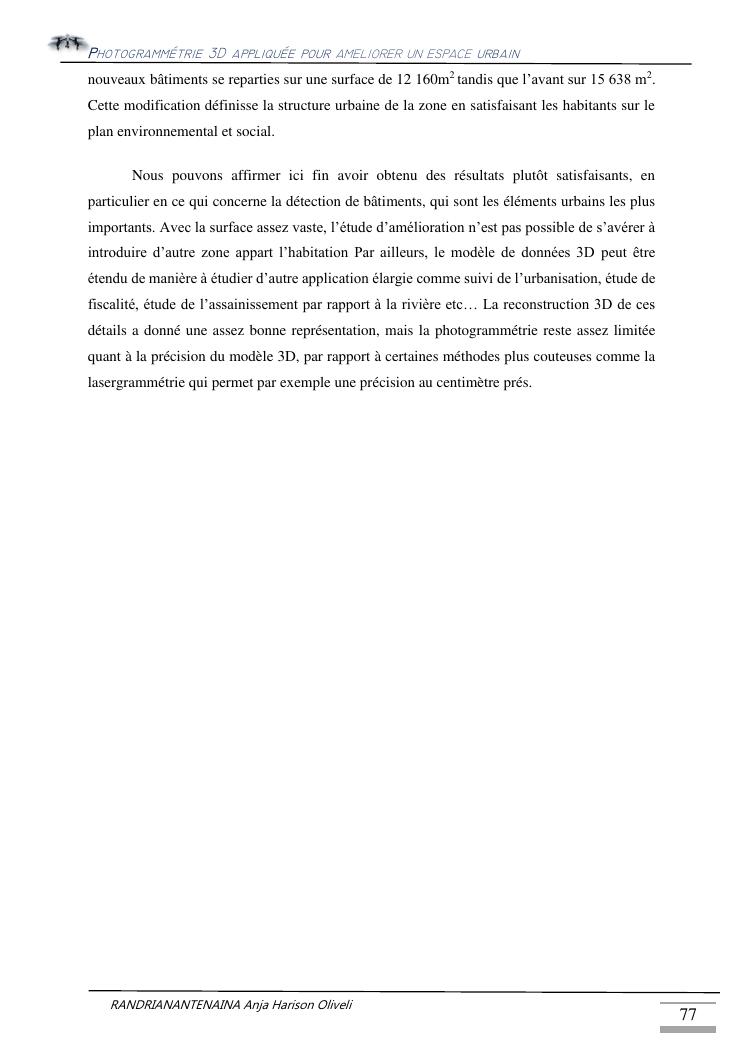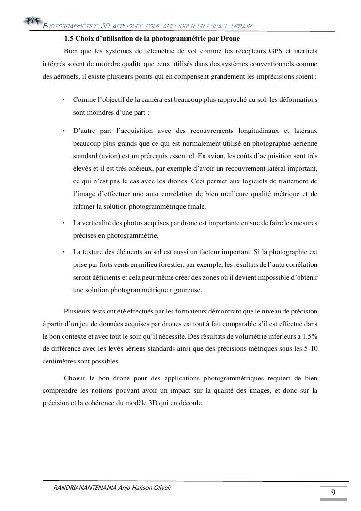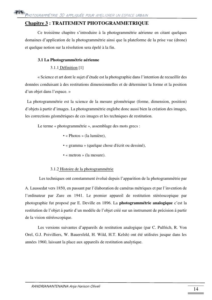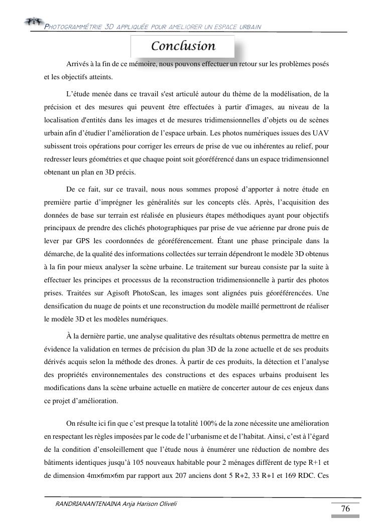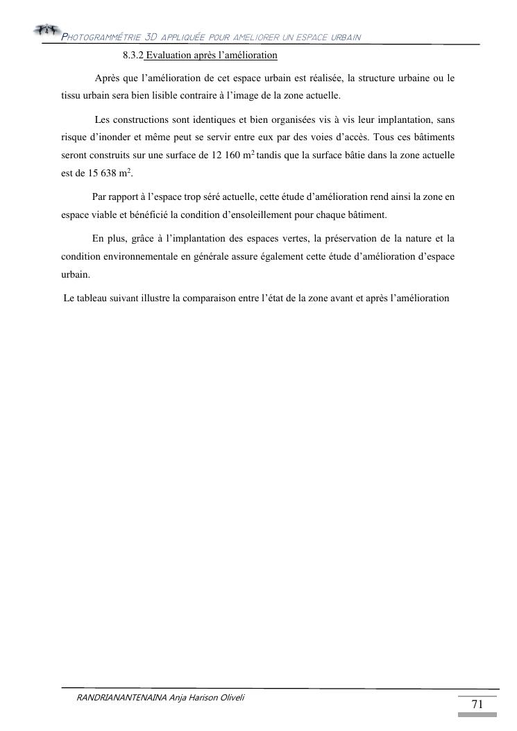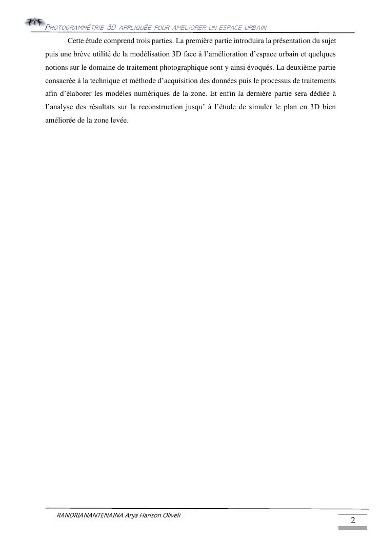 utilisation de la technique photogrammétrie numerique combinee a la methode 3d pour l'amélioration d'un espace urbain : cas d'ampasika, région analamanga