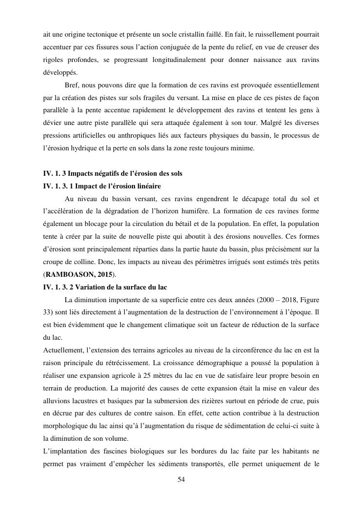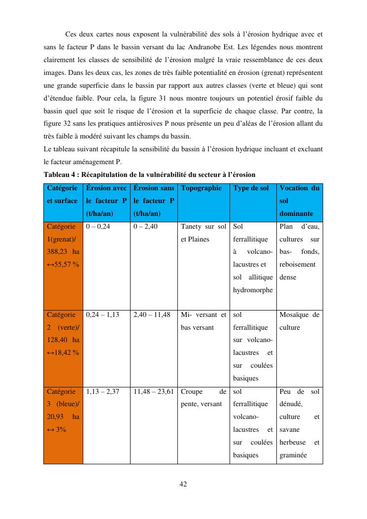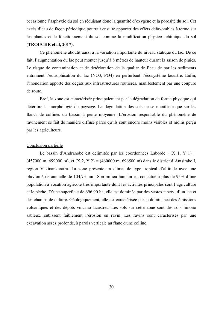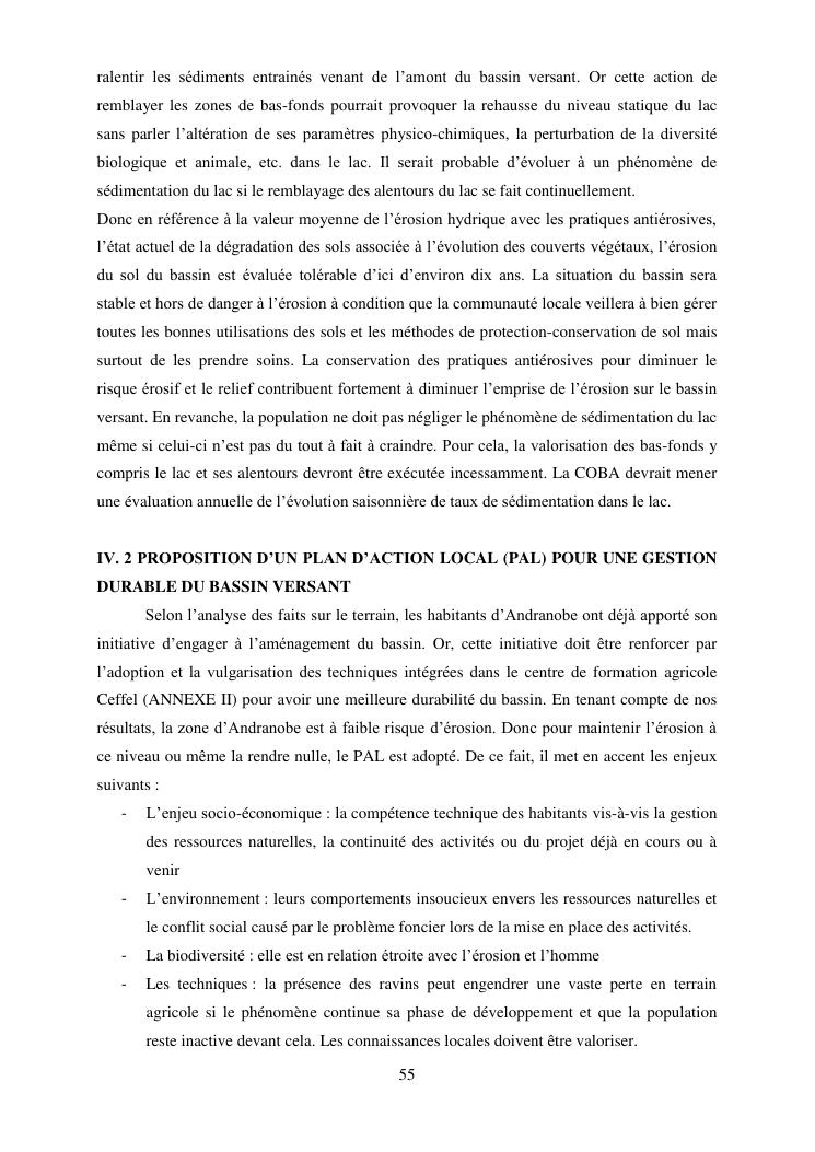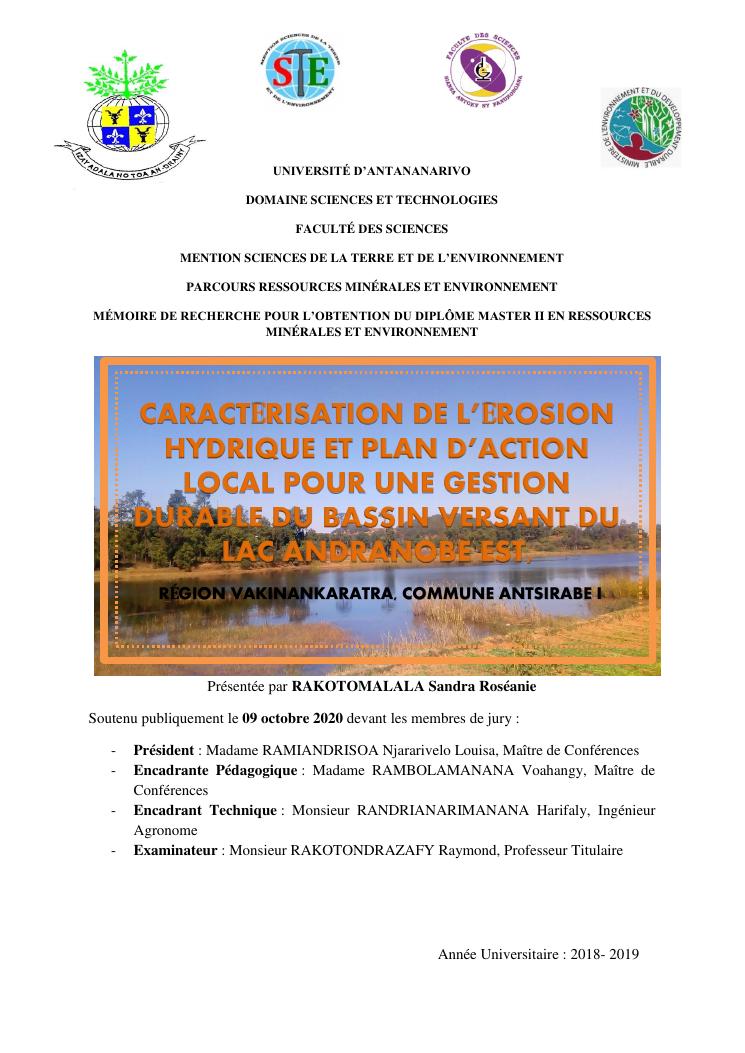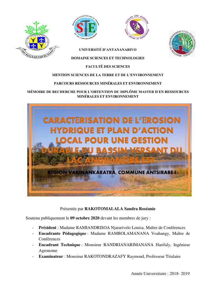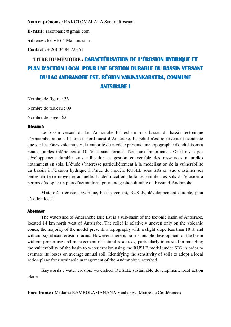 caractérisation de l'érosion hydrique et plan d'action local pour une gestion durable du bassin versant du lac andranobe est, région vakinankaratra, commune antsirabe i