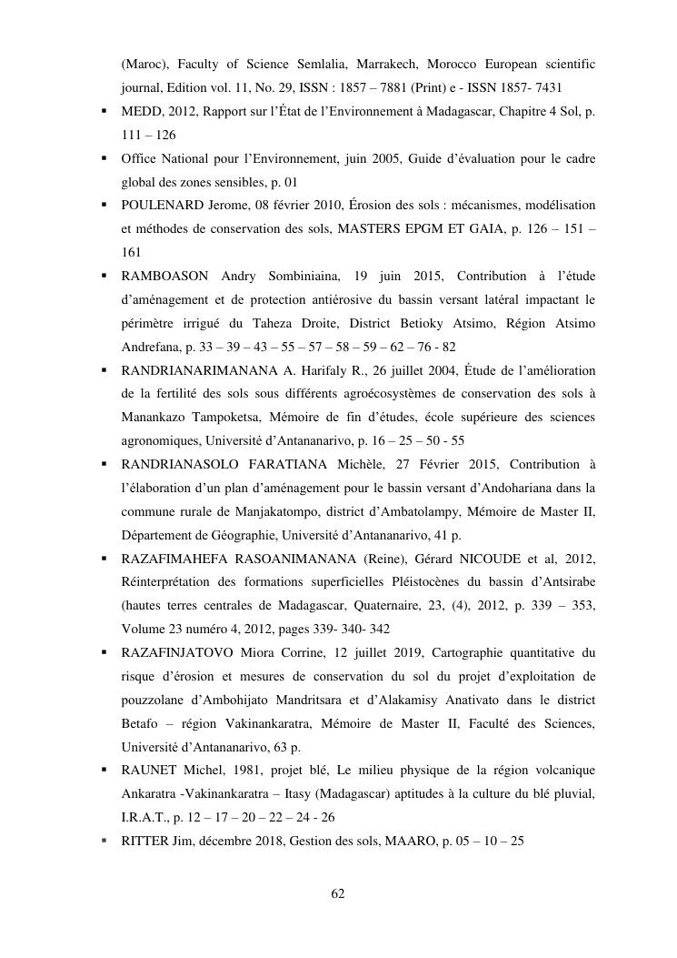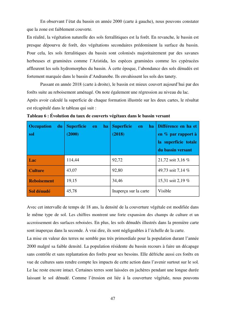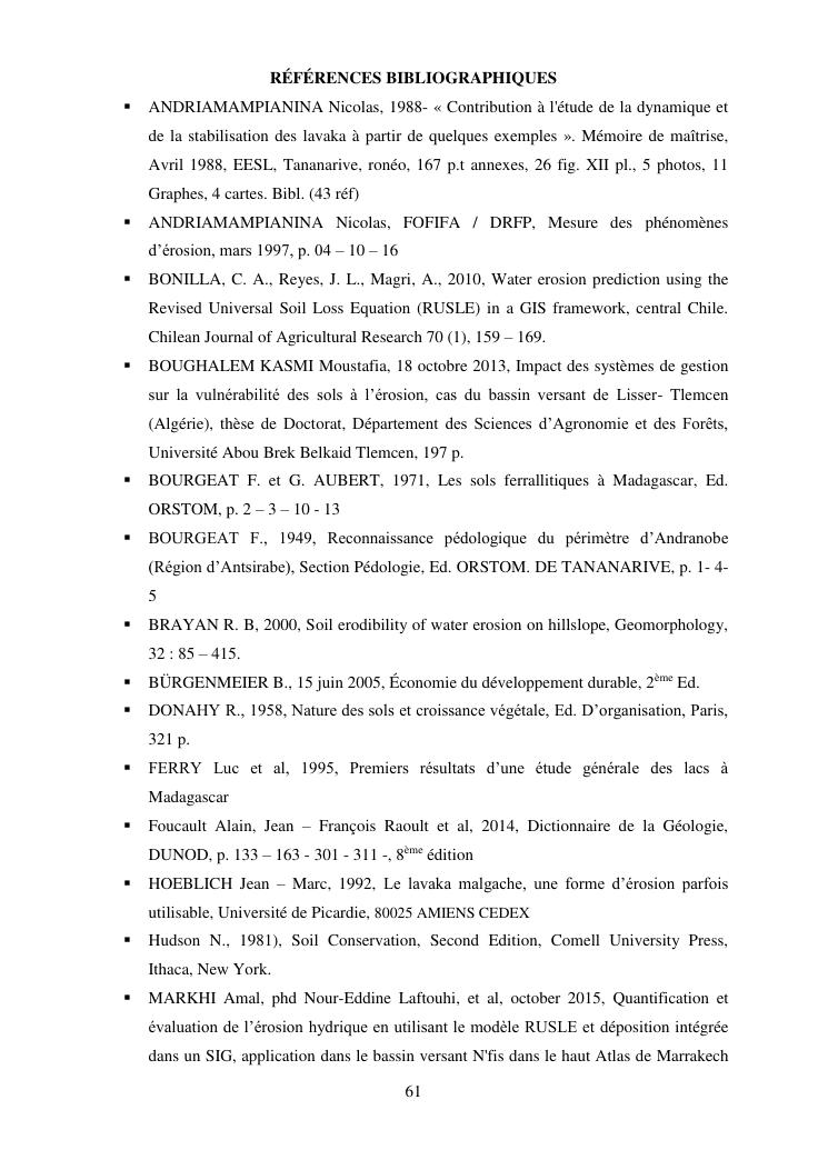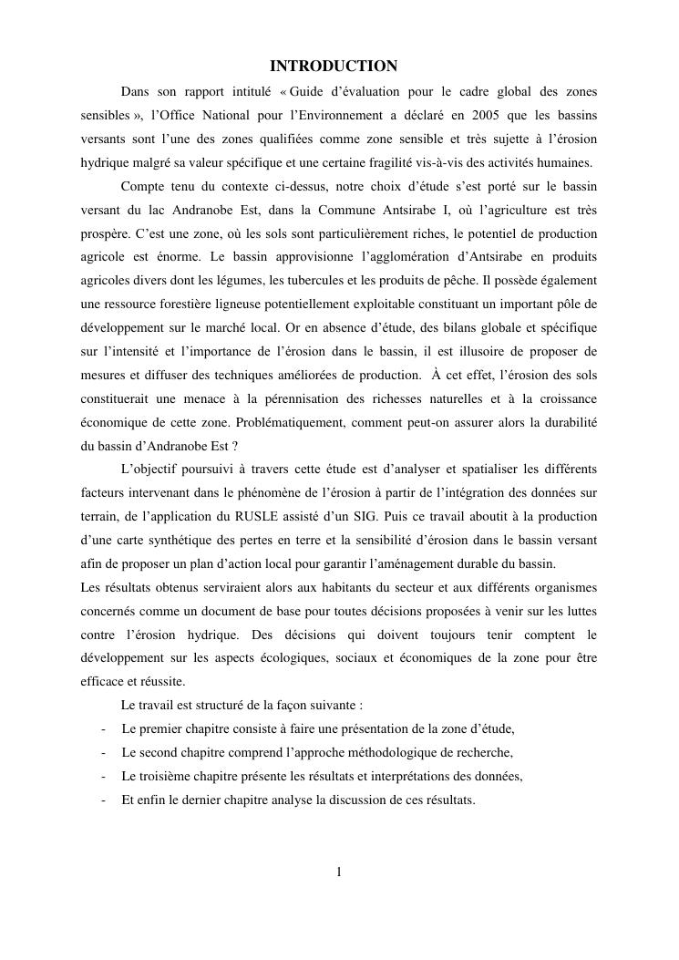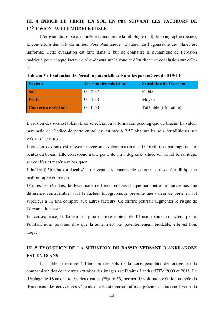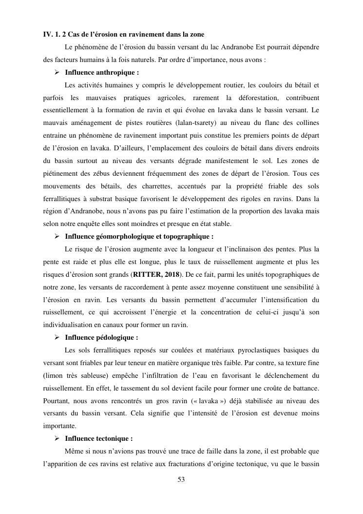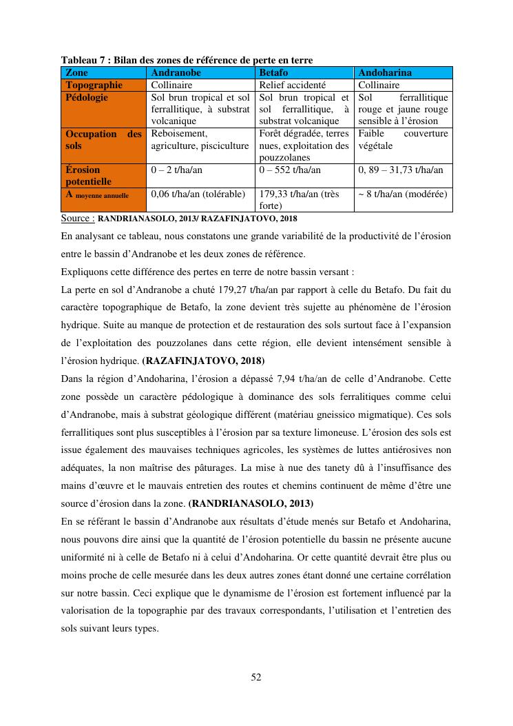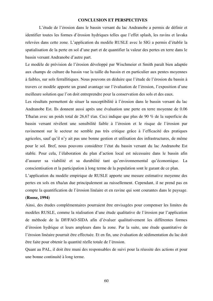 caractérisation de l'érosion hydrique et plan d'action local pour une gestion durable du bassin versant du lac andranobe est, région vakinankaratra, commune antsirabe i