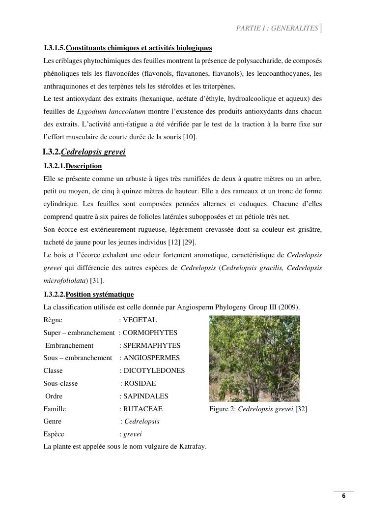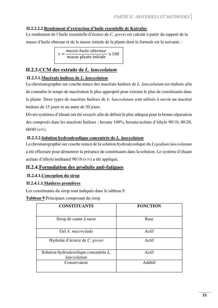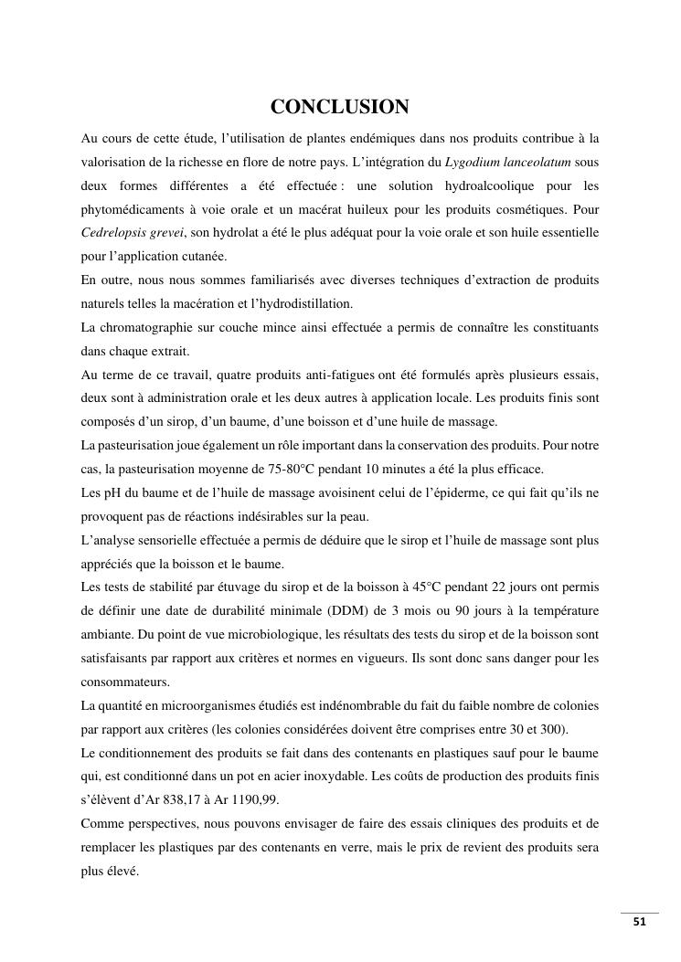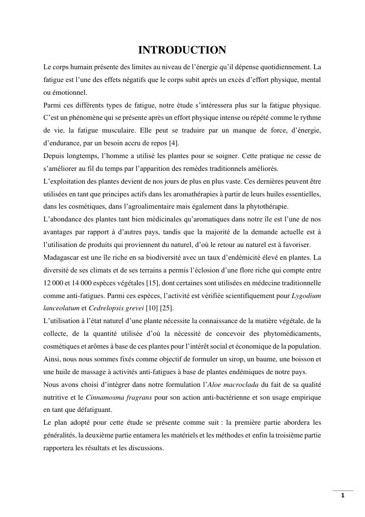 conception de produits anti-fatigues à base de lygodium lanceolatum, cedrelopsis grevei, aloe macroclada et cinnamosma fragrans