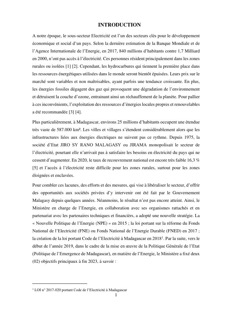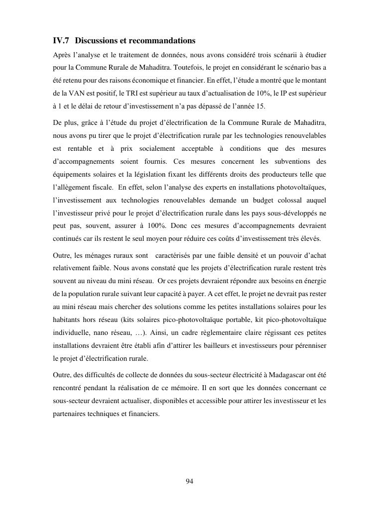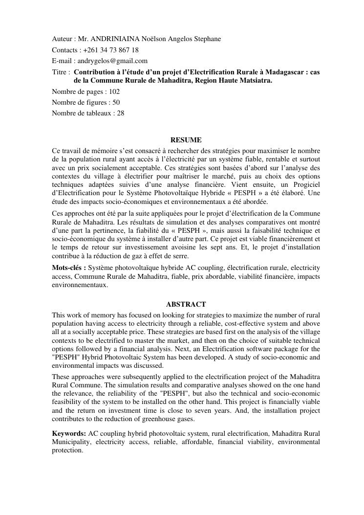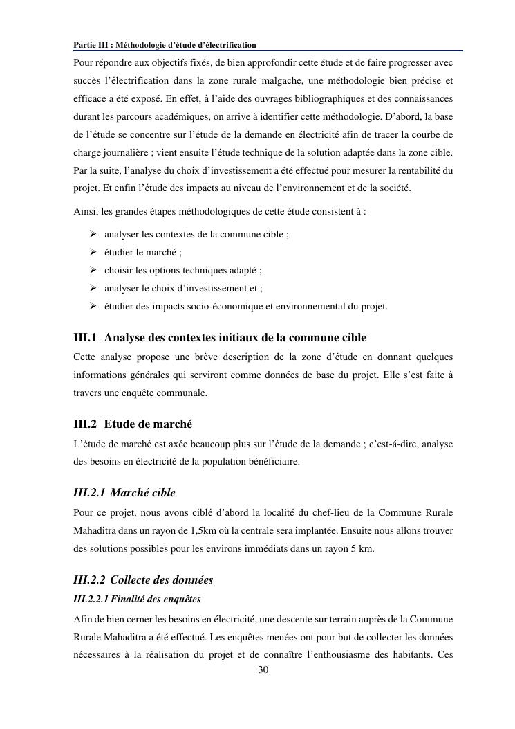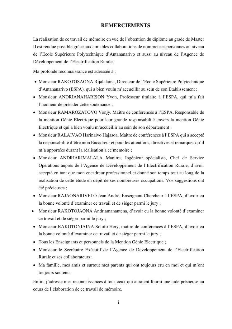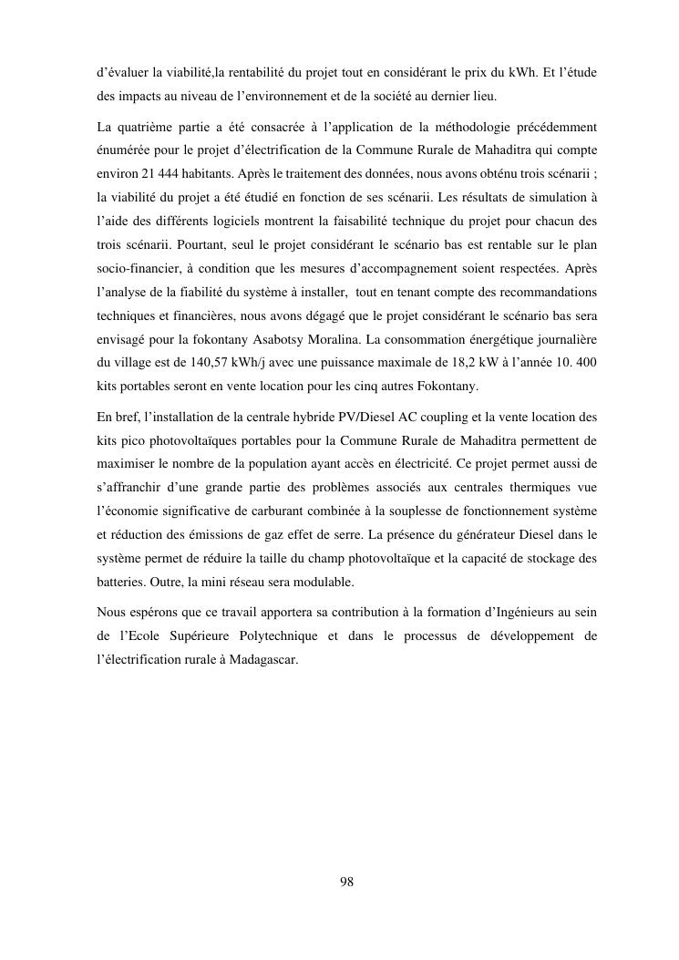 contribution à l'étude d'un projet d'electrification rurale à madagascar : cas de la commune rurale de mahaditra, region haute matsiatra