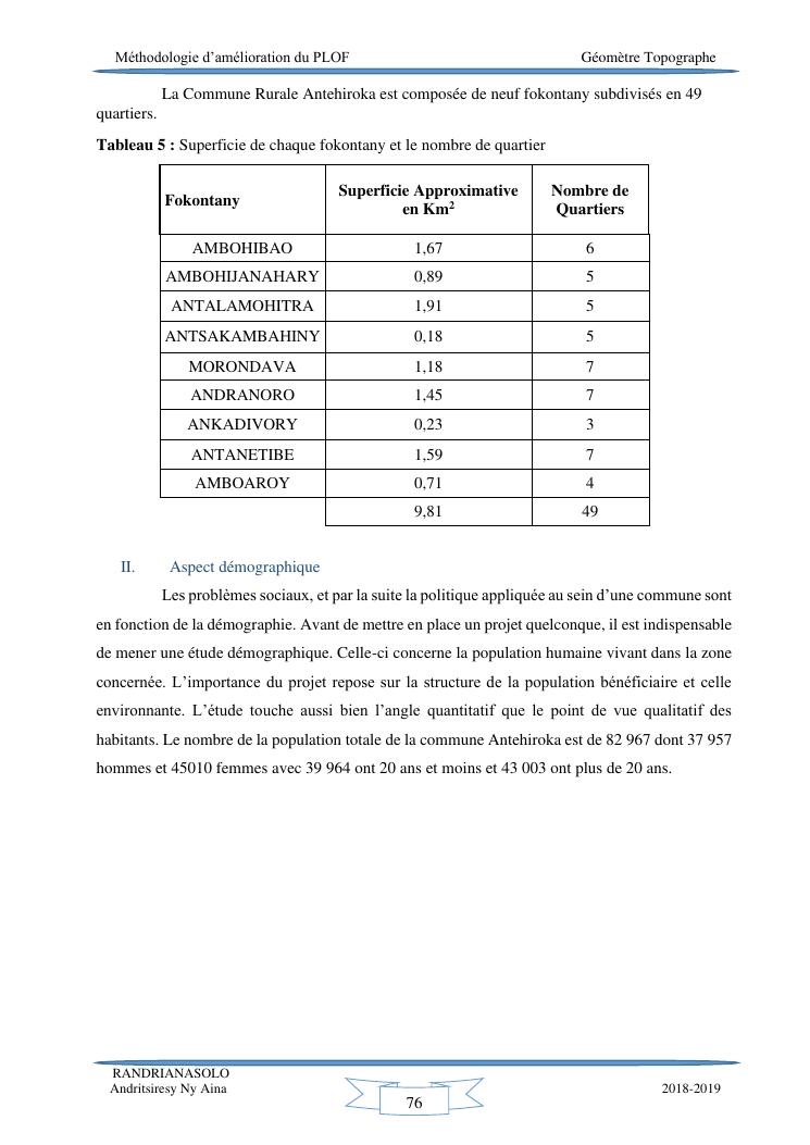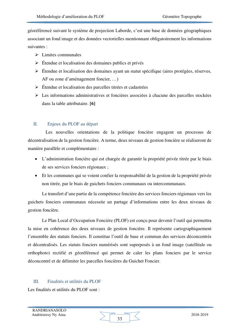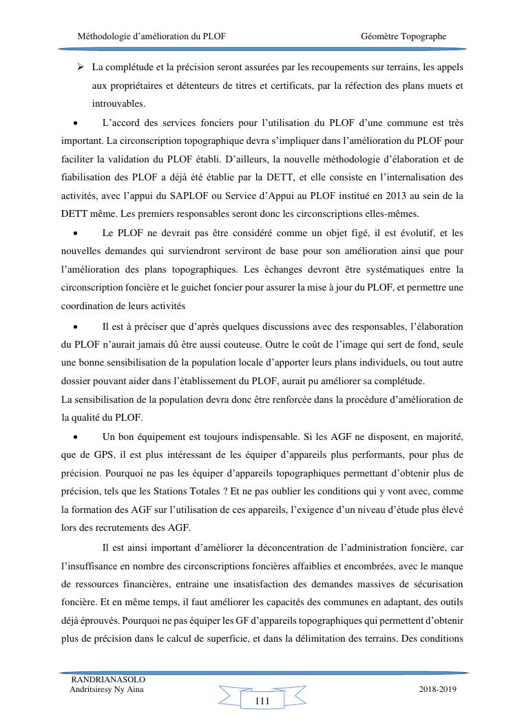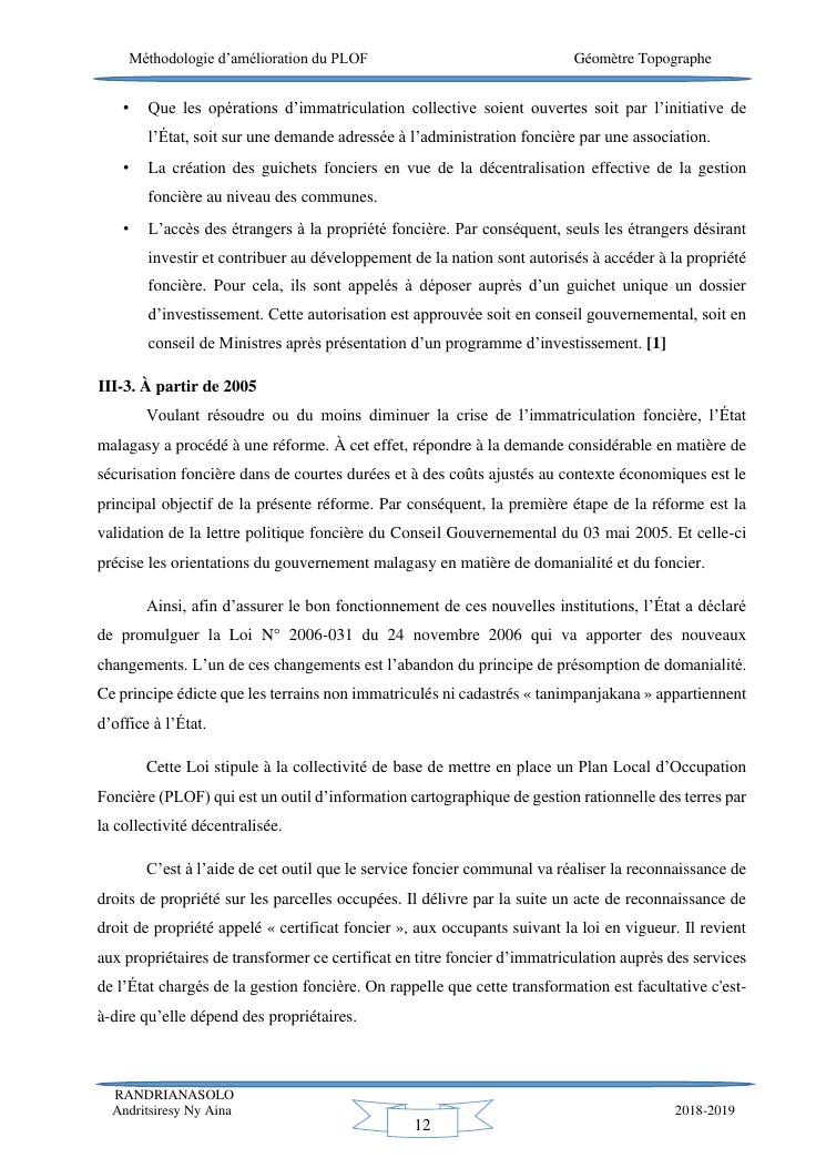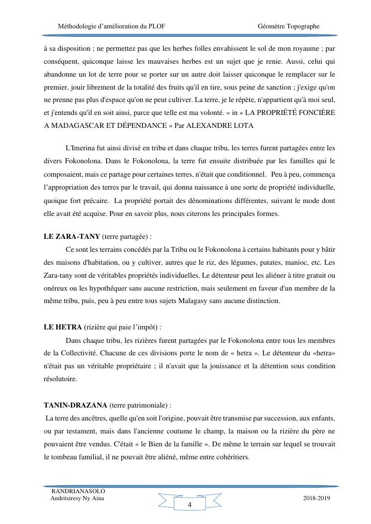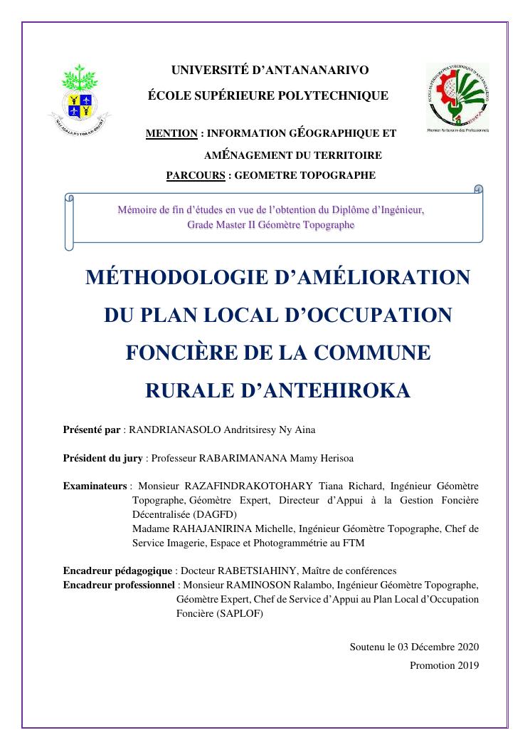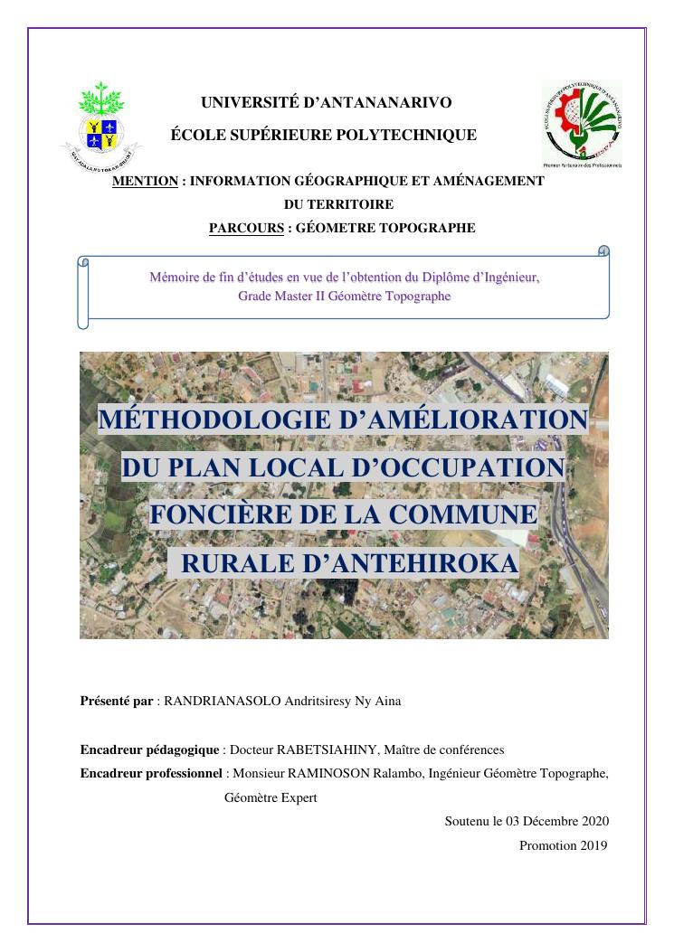 méthodologie d'amélioration du plan local d'occupation foncière de la commune rurale d'antehiroka